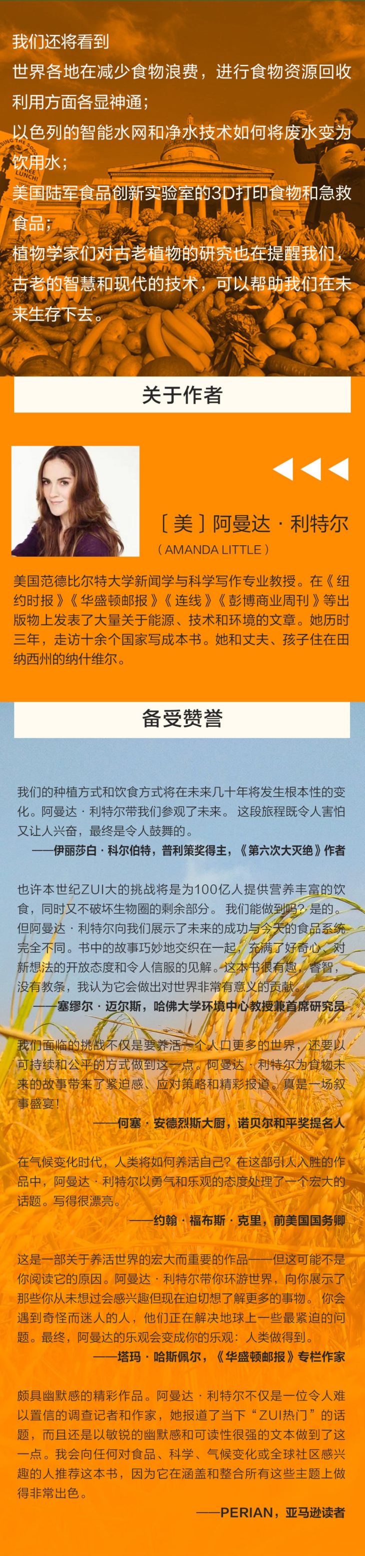 ★ 教授兼记者阿曼达·利特尔,历时3年,深入11个国家,生动讲述全球食品供应系统正在发生的惊人变化。食物的未来是暗淡无光的,还是比以往更好?