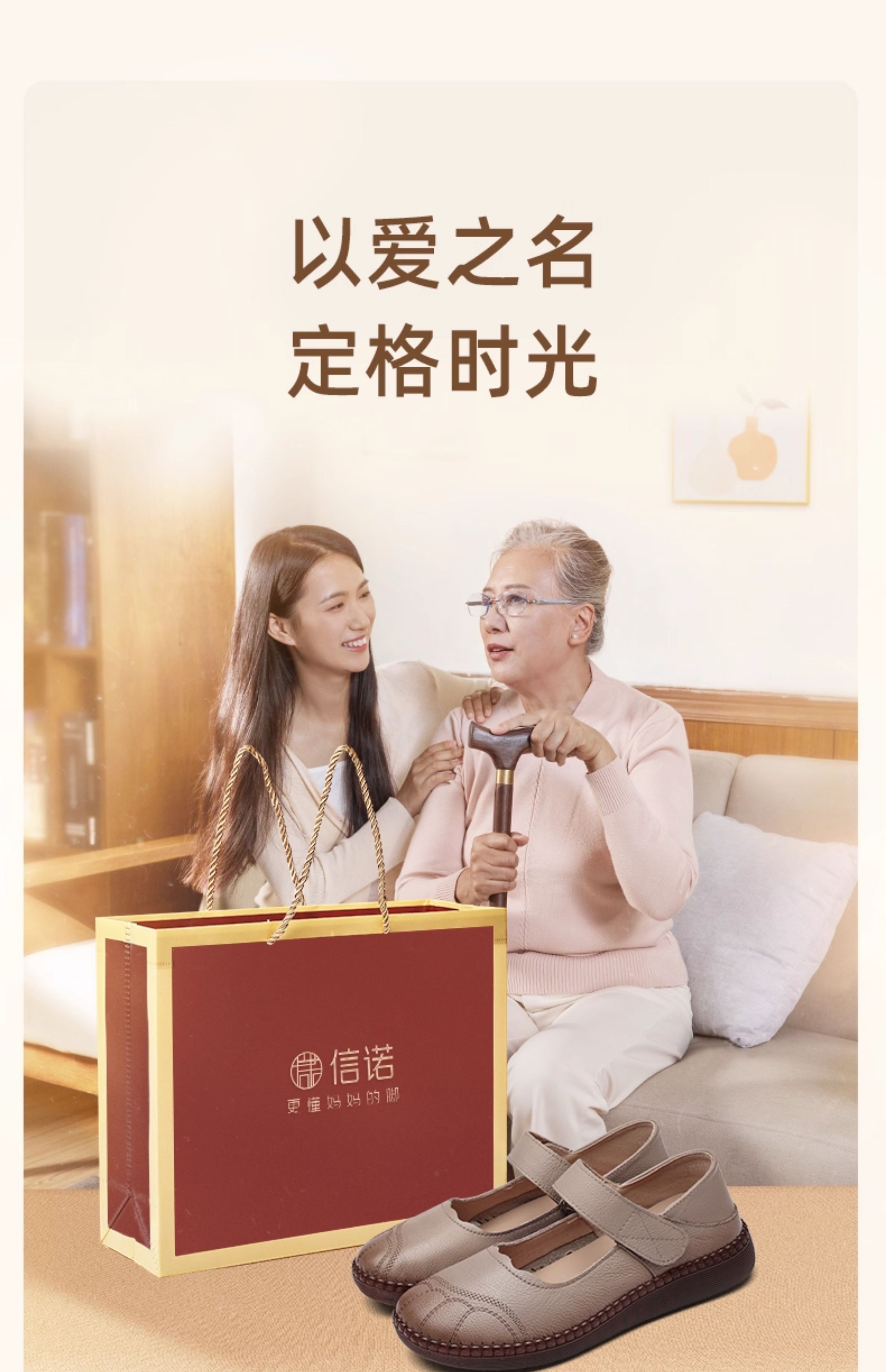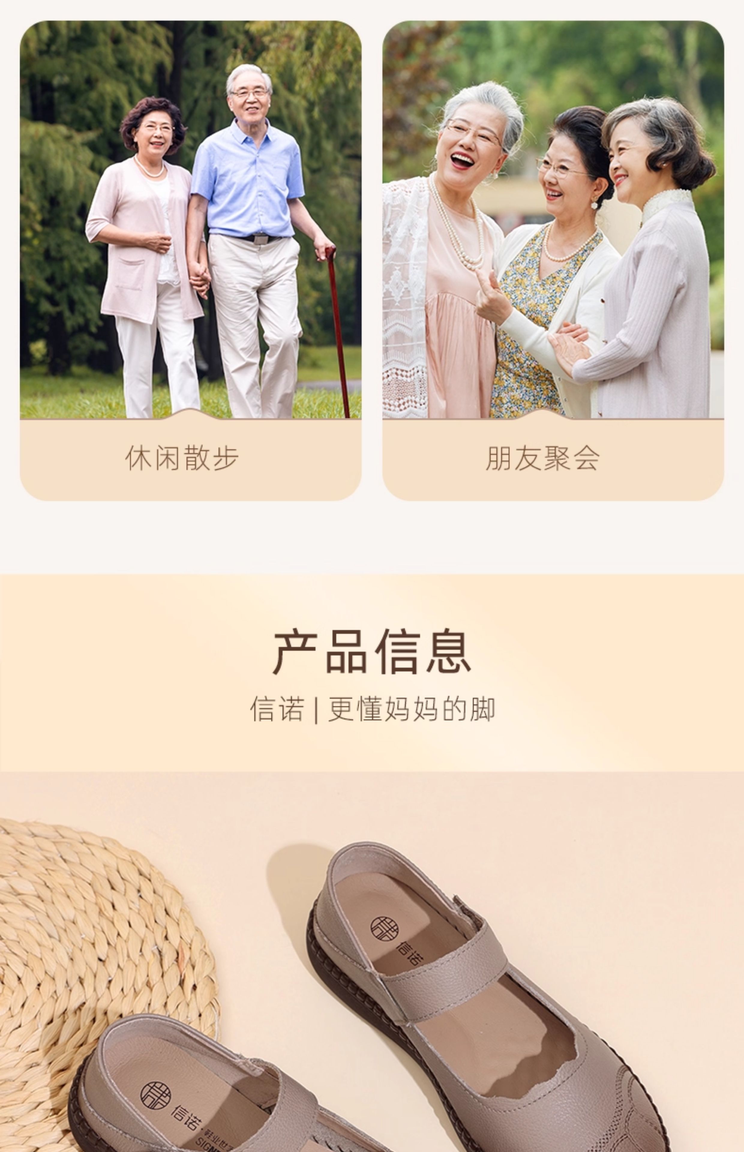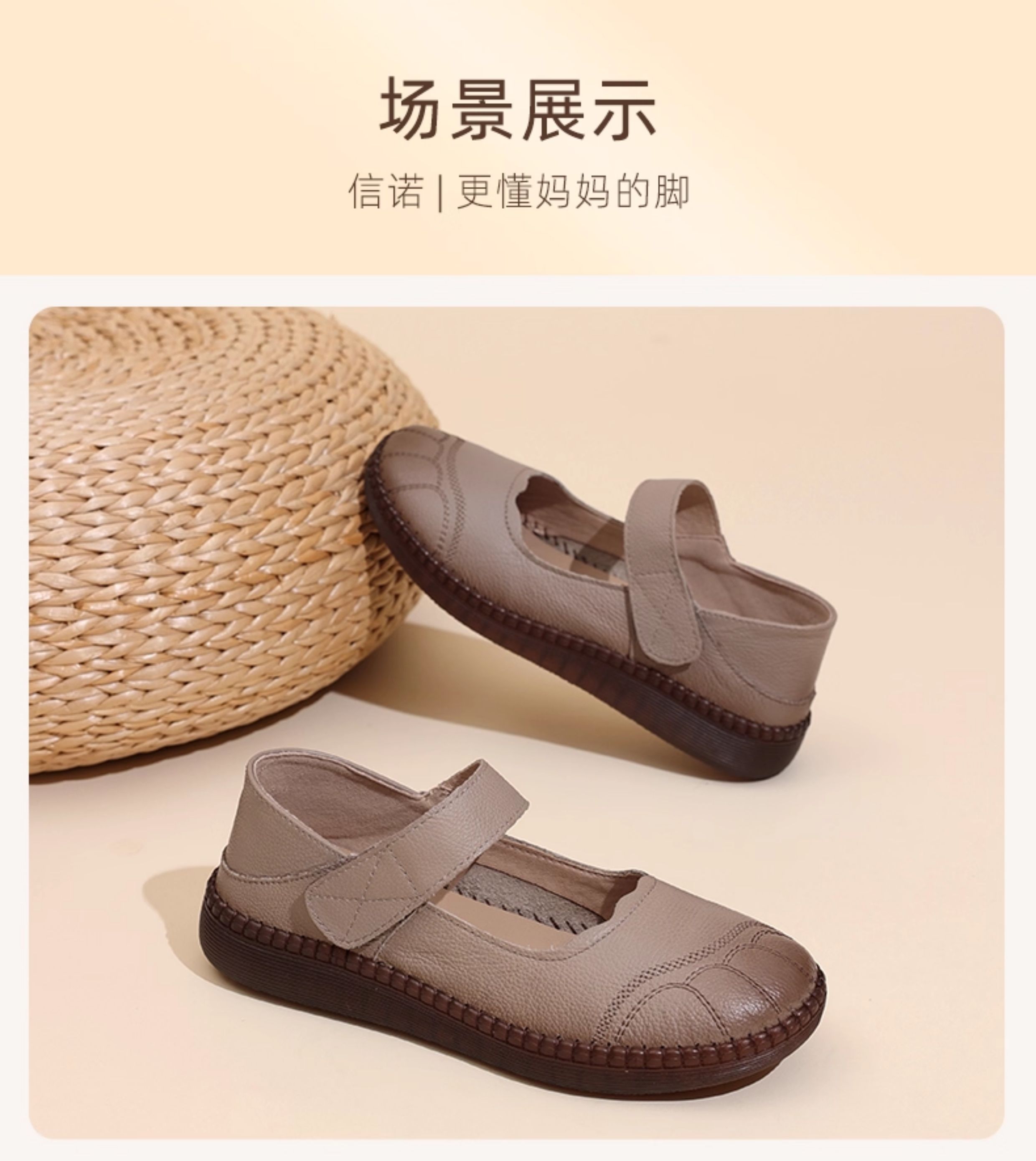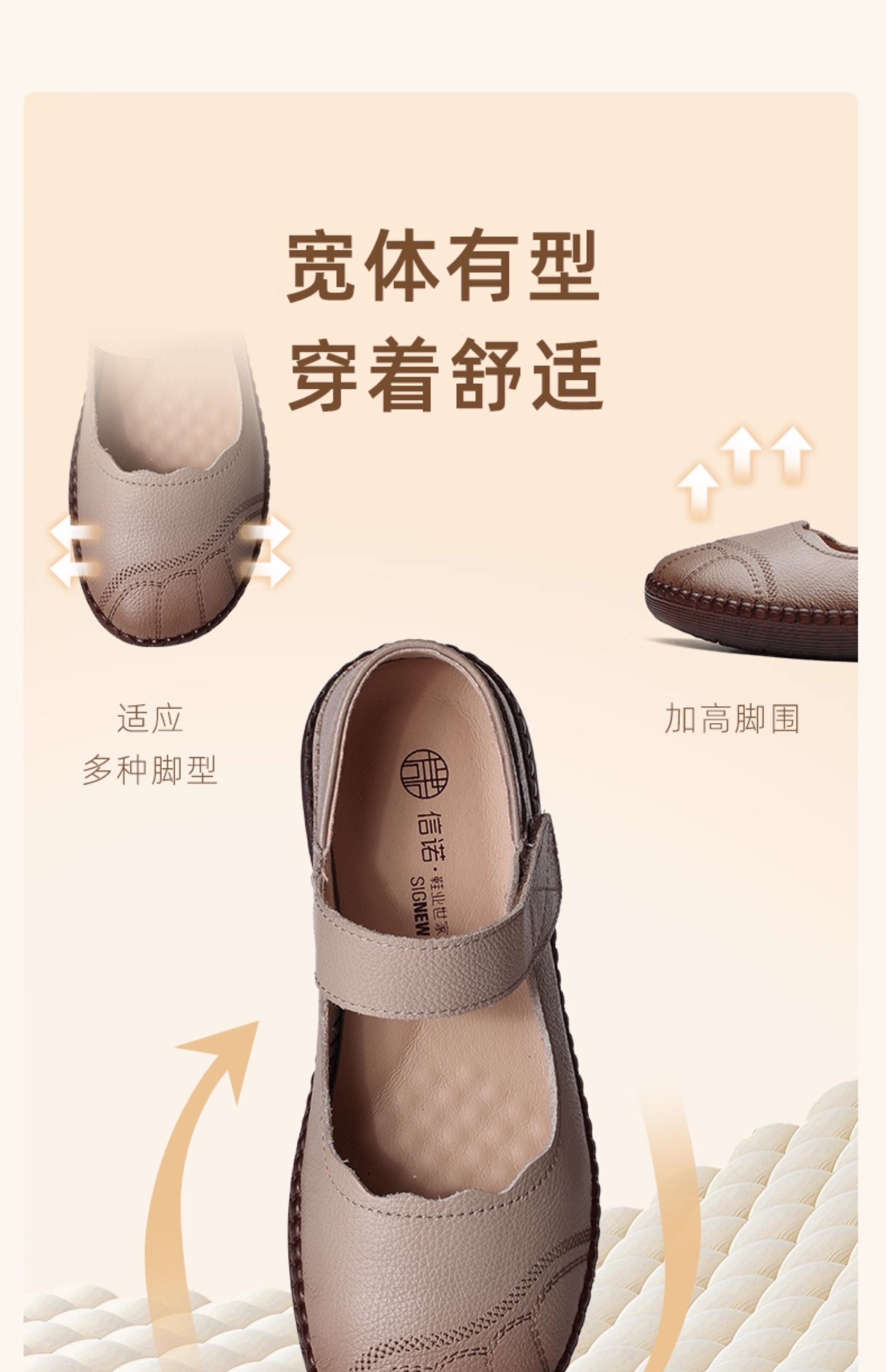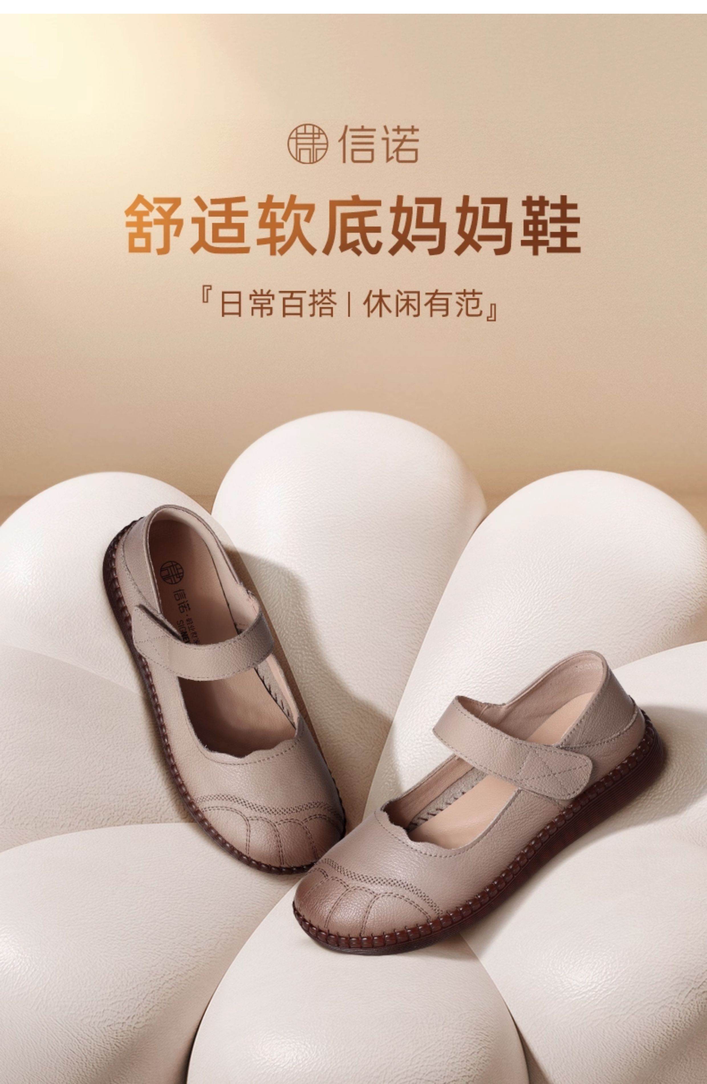 信诺超软底妈妈鞋女真皮舒适单鞋中老年平底休闲皮鞋2025新款秋季X5Q131-171