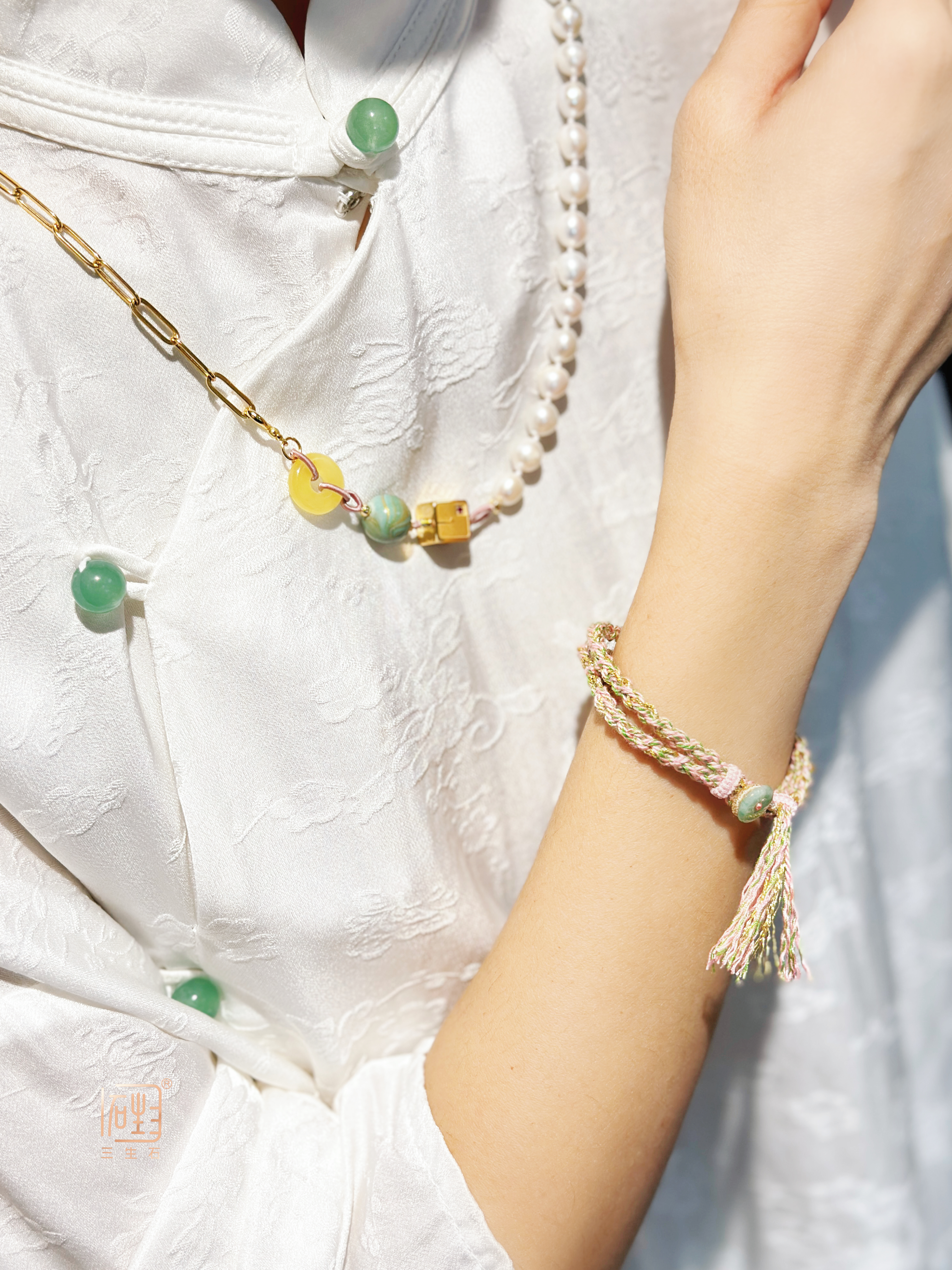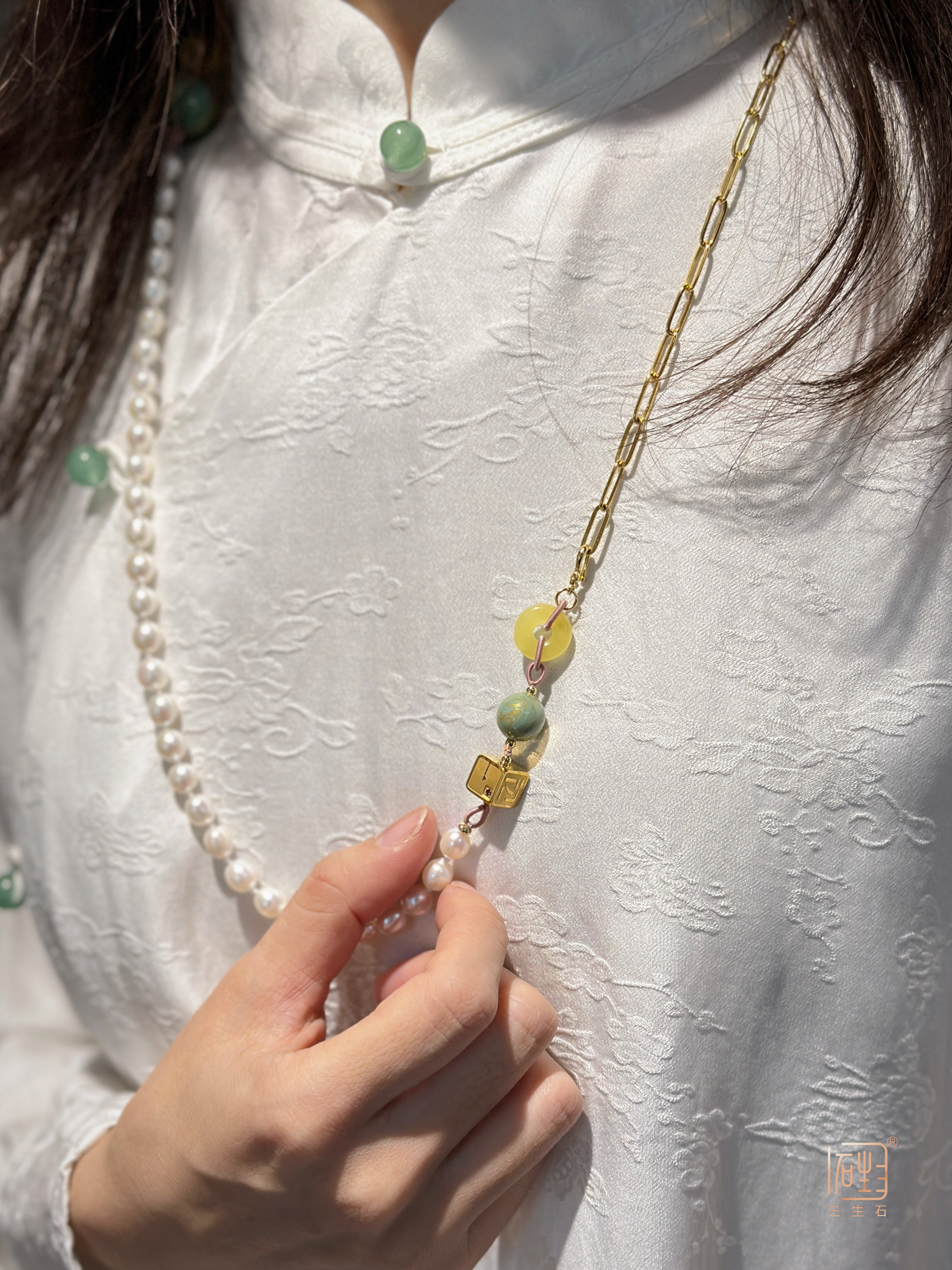 加入蜜蜡~翡翠~红宝石能量块和非遗大漆珠的设计~