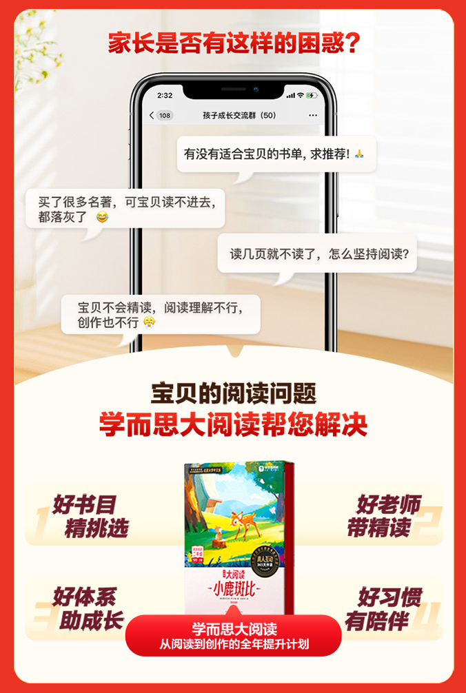 【学而思大阅读】学而思大阅读 阅读创作 能力养成引导学习运用 累积素材;选书难适配?AI 测评定制书单,3-15 岁全覆盖!清北老师带精读,读懂考高分不难!