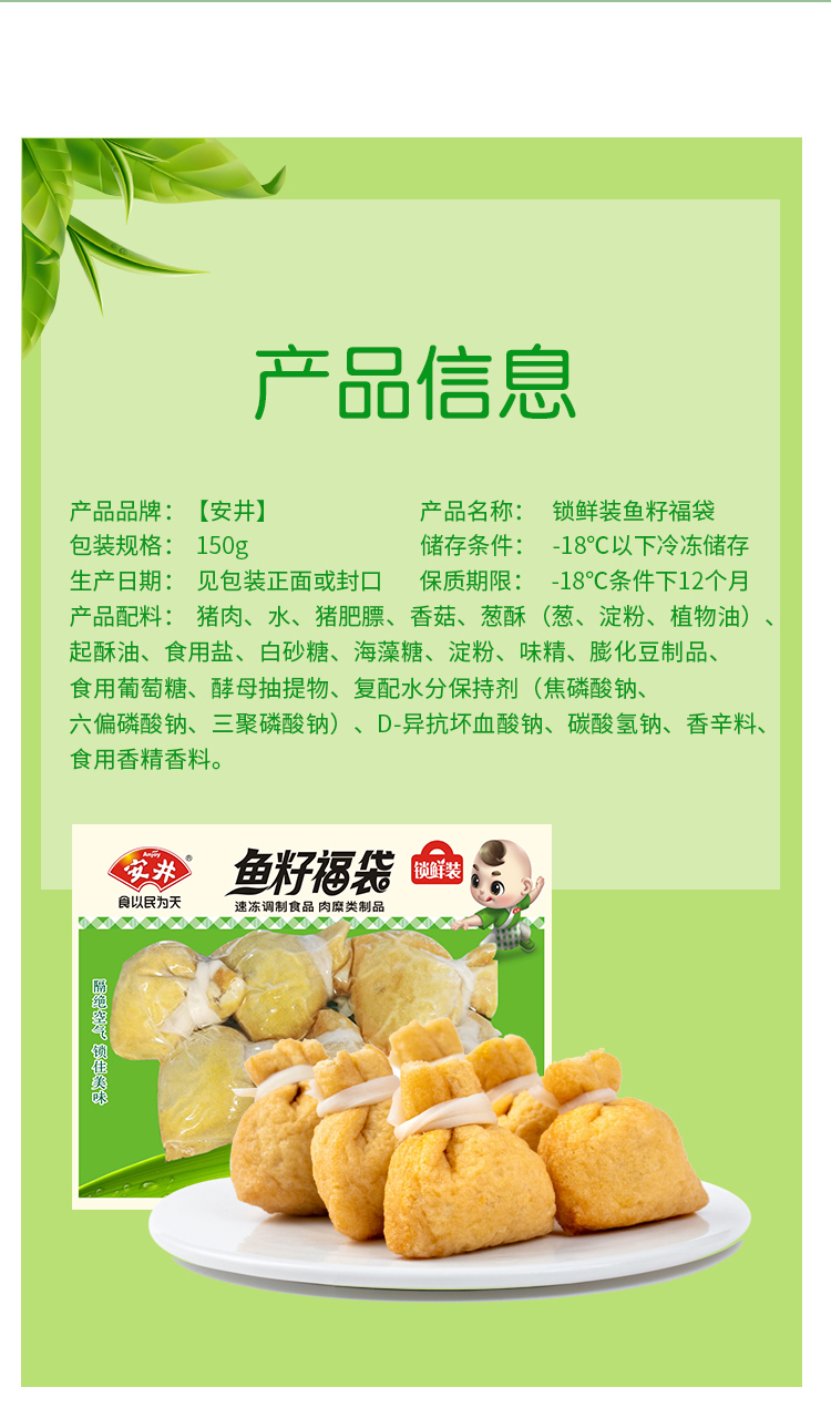 150g 安井 鱼籽福袋 锁鲜装 鱼籽福袋6个 冷冻火锅食材关东煮
