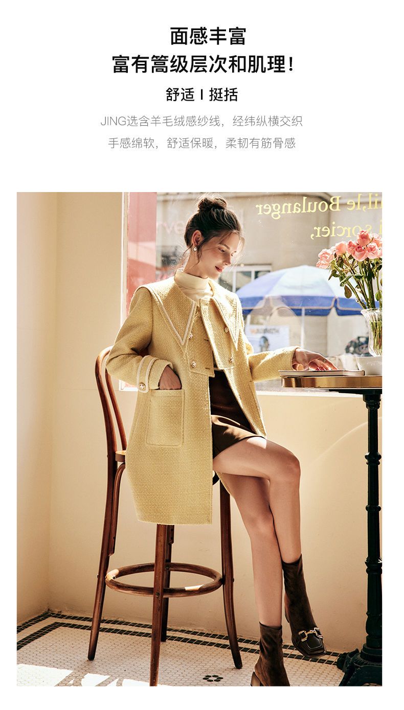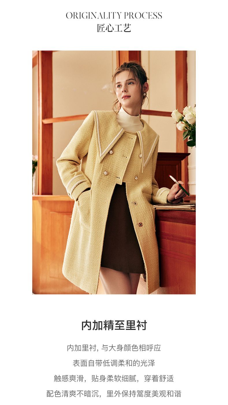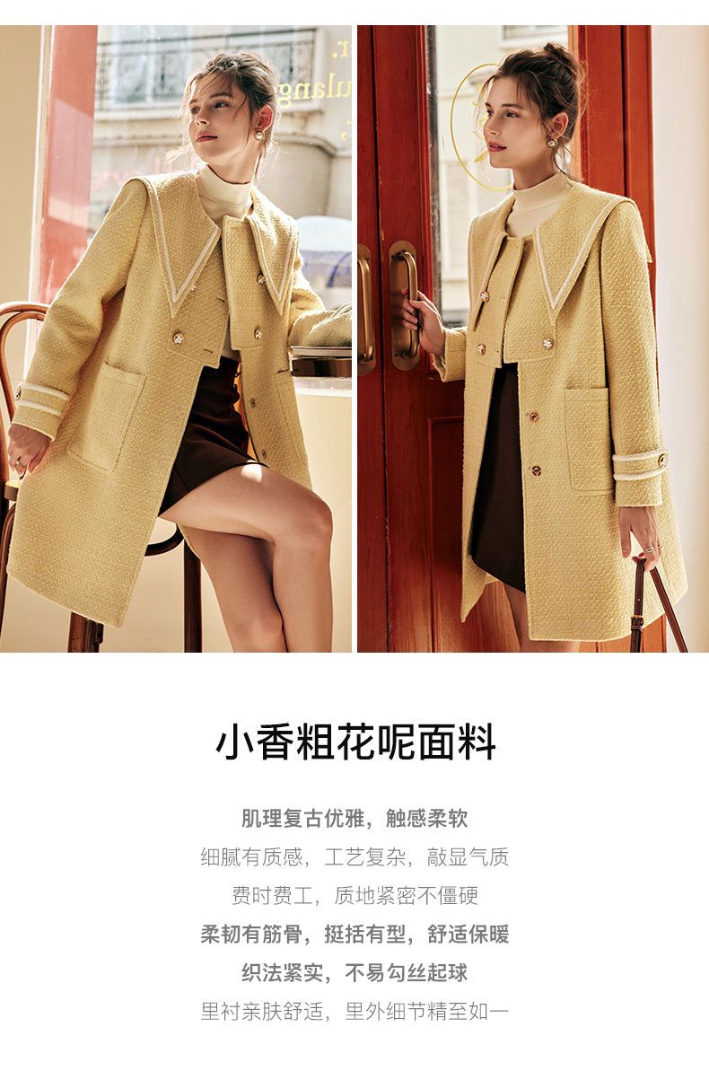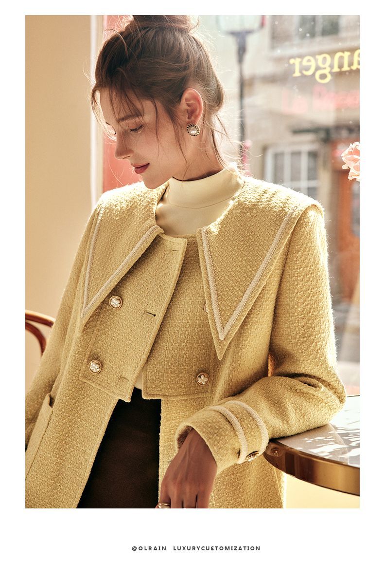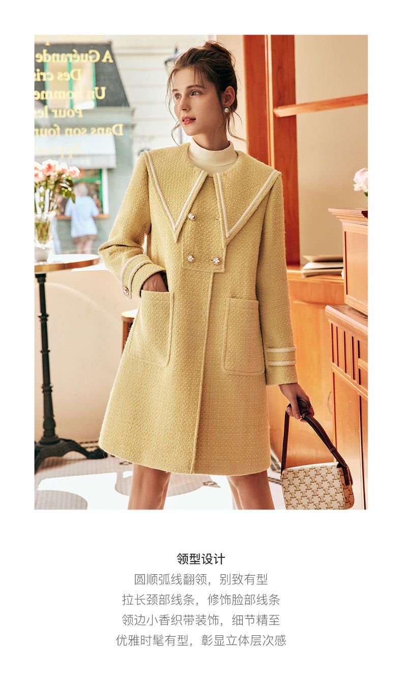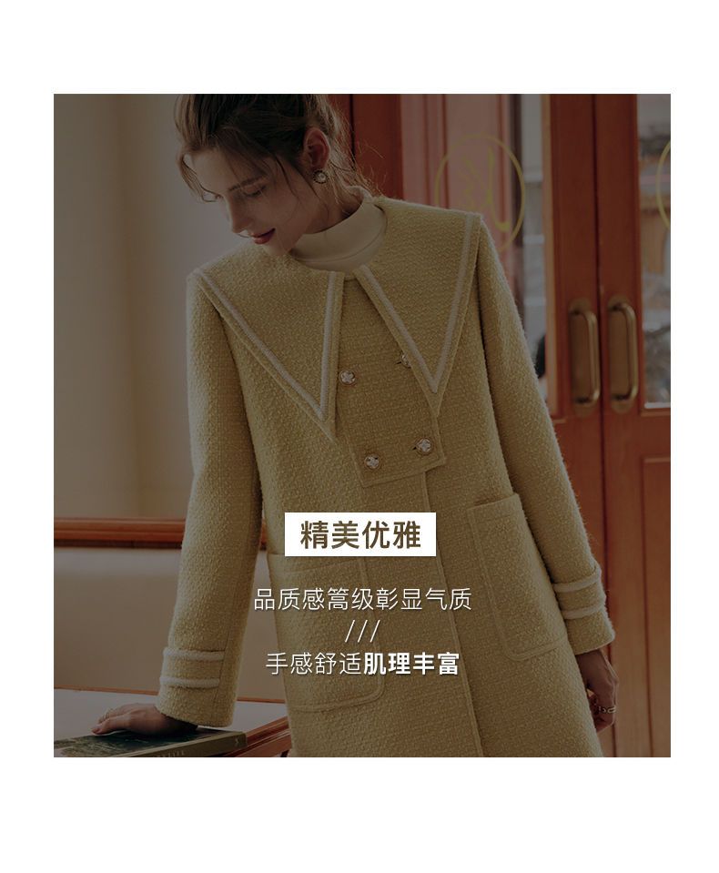 OLrain欧芮儿法式小香风毛呢外套女秋冬2022新款大翻领中长款大衣