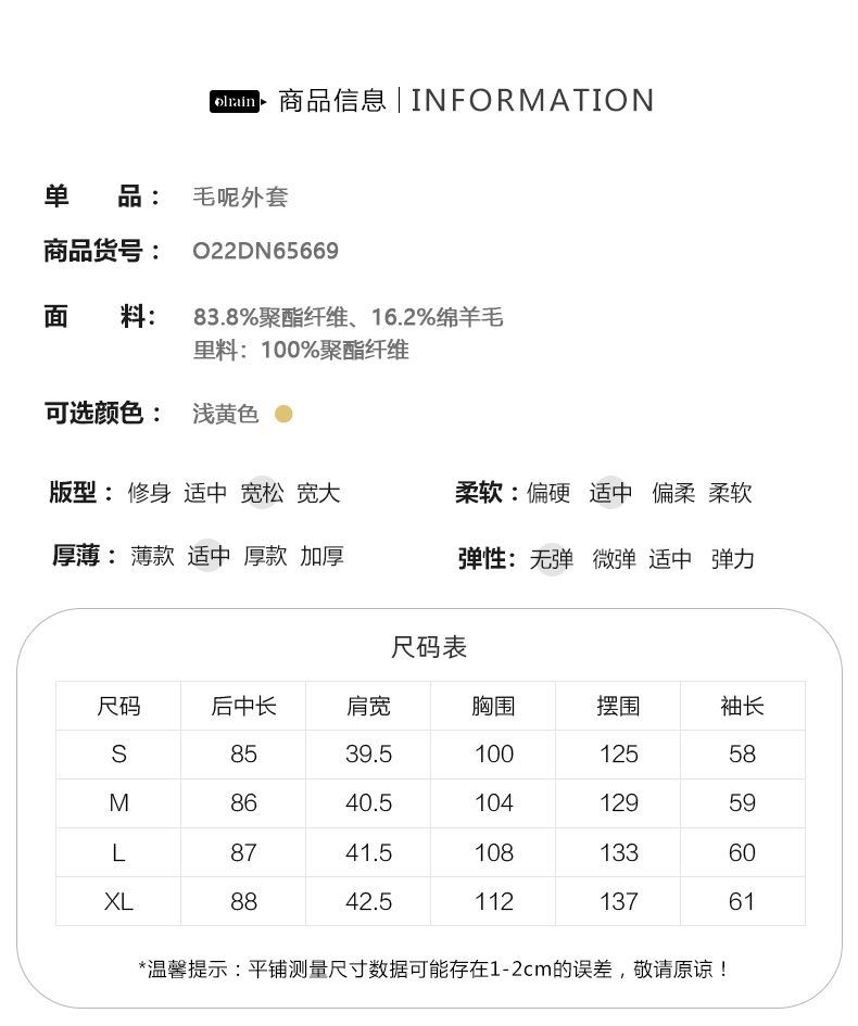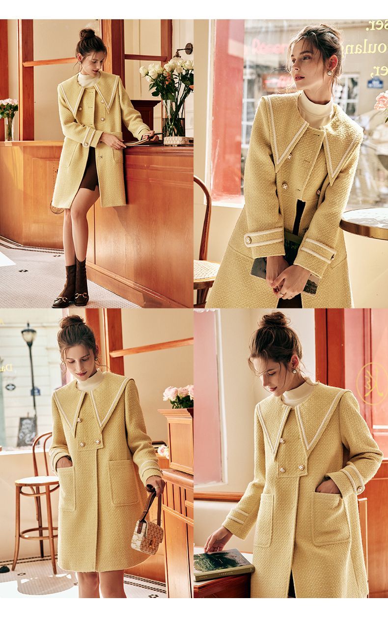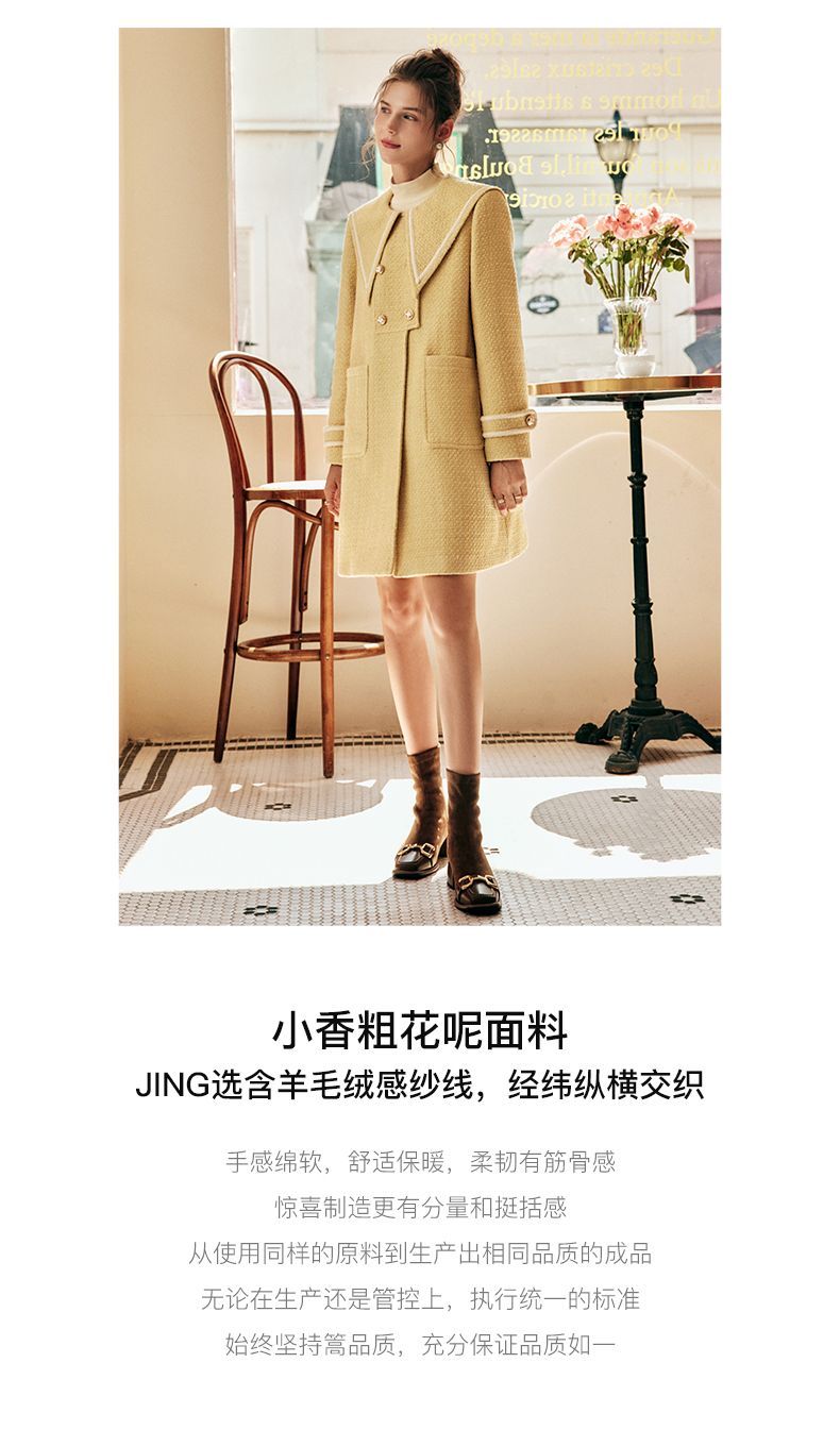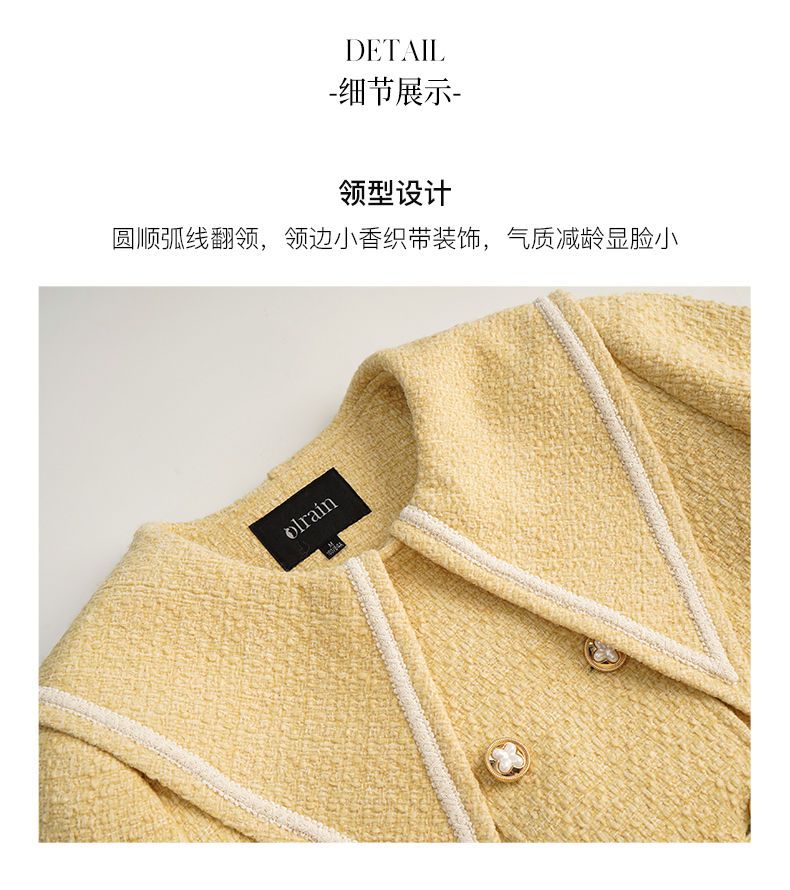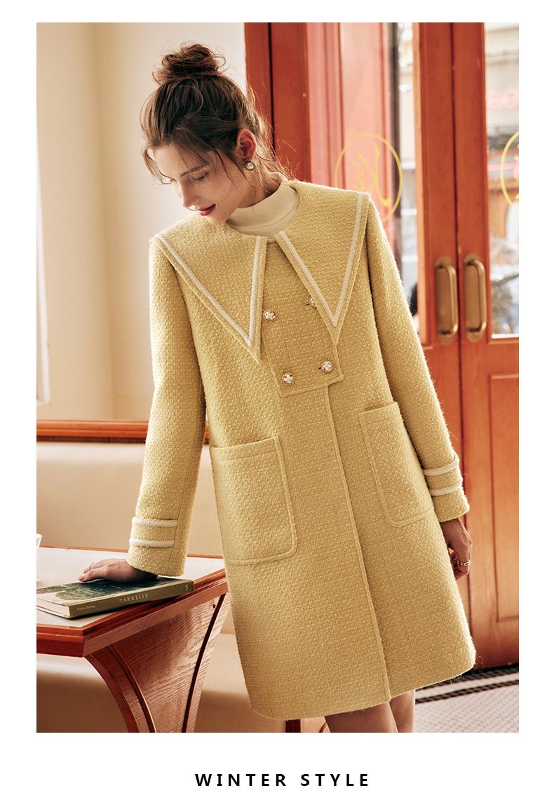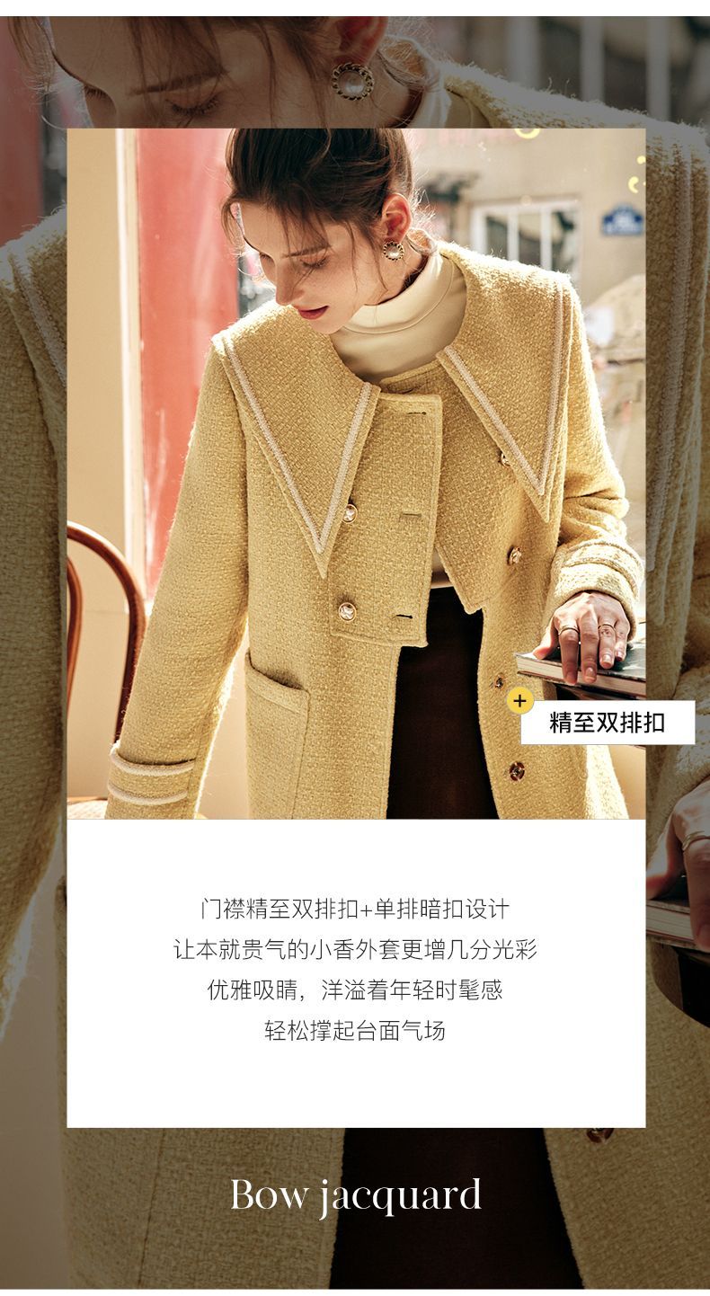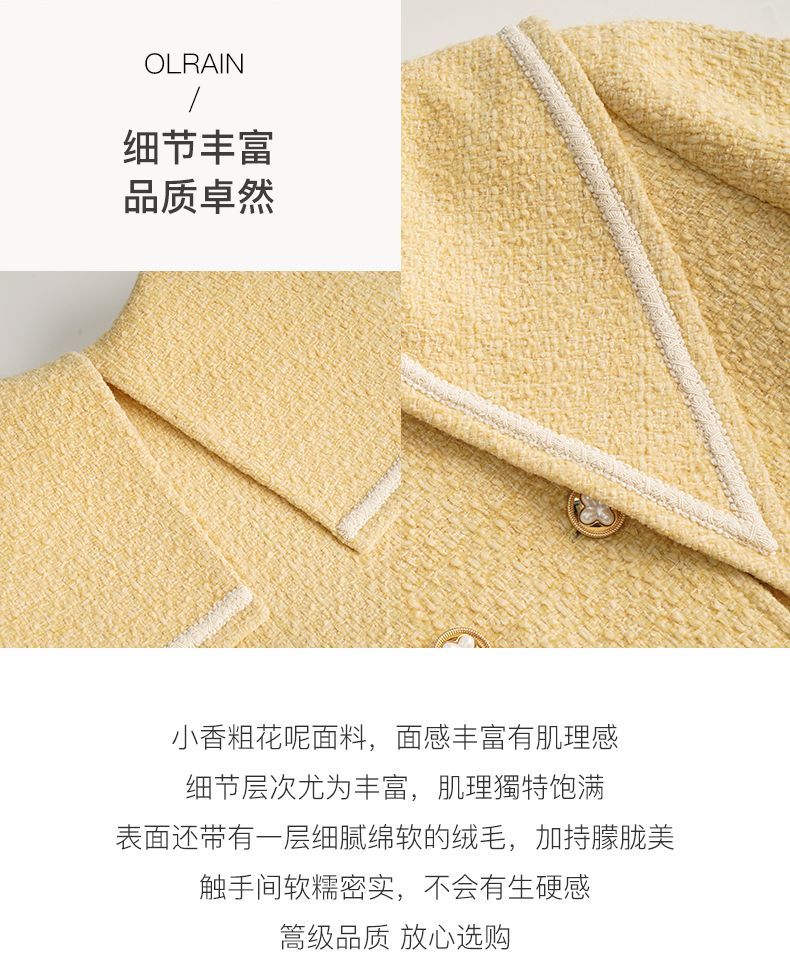 OLrain欧芮儿法式小香风毛呢外套女秋冬2022新款大翻领中长款大衣