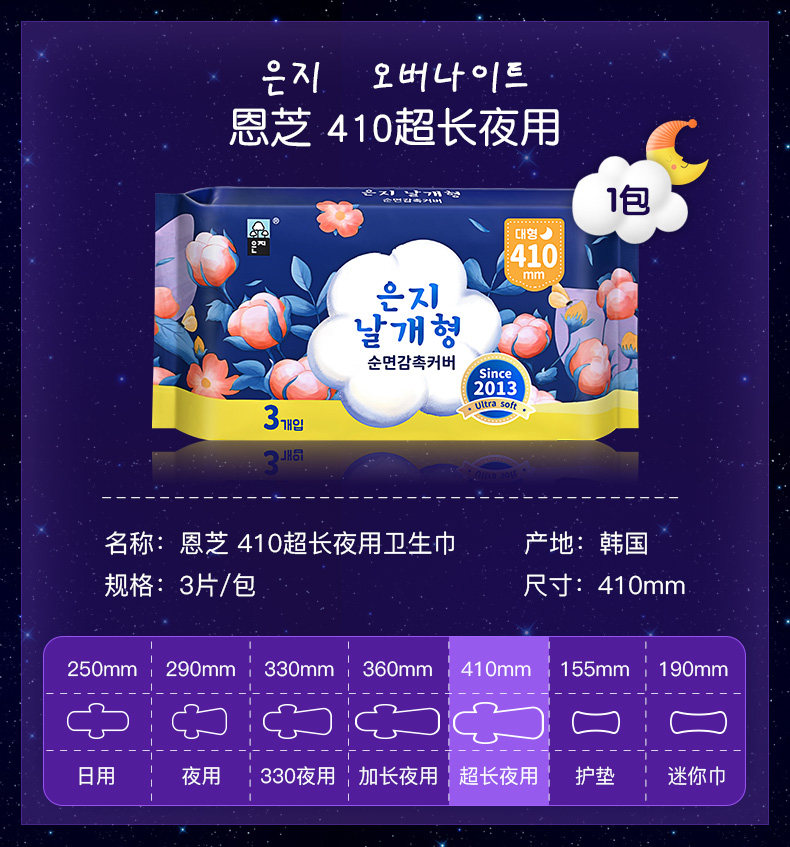 EUNJEE恩芝 超长夜用卫生巾410mm*3p