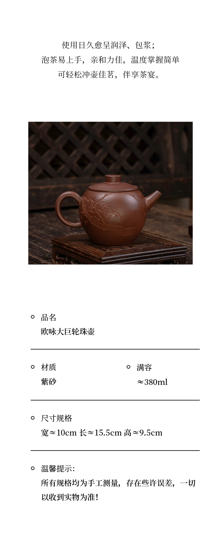欧咏 大巨轮珠壶 宜兴紫砂原矿茶壶紫砂壶功夫茶泡茶壶茶具仿古