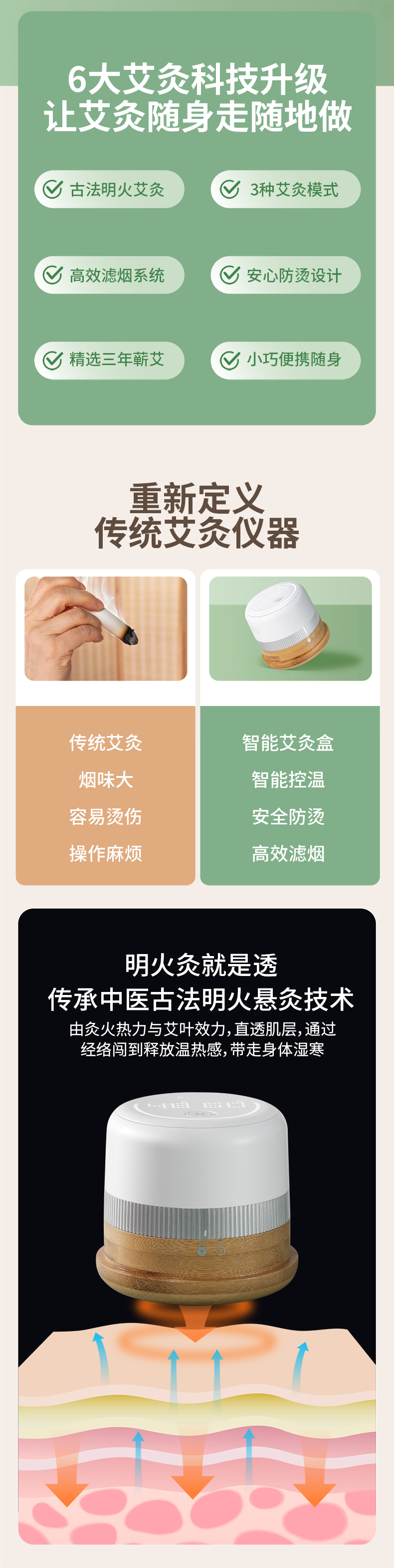 九宫艾智能艾灸盒M1 家用养生热敷温灸 明火电子便携艾灸盒