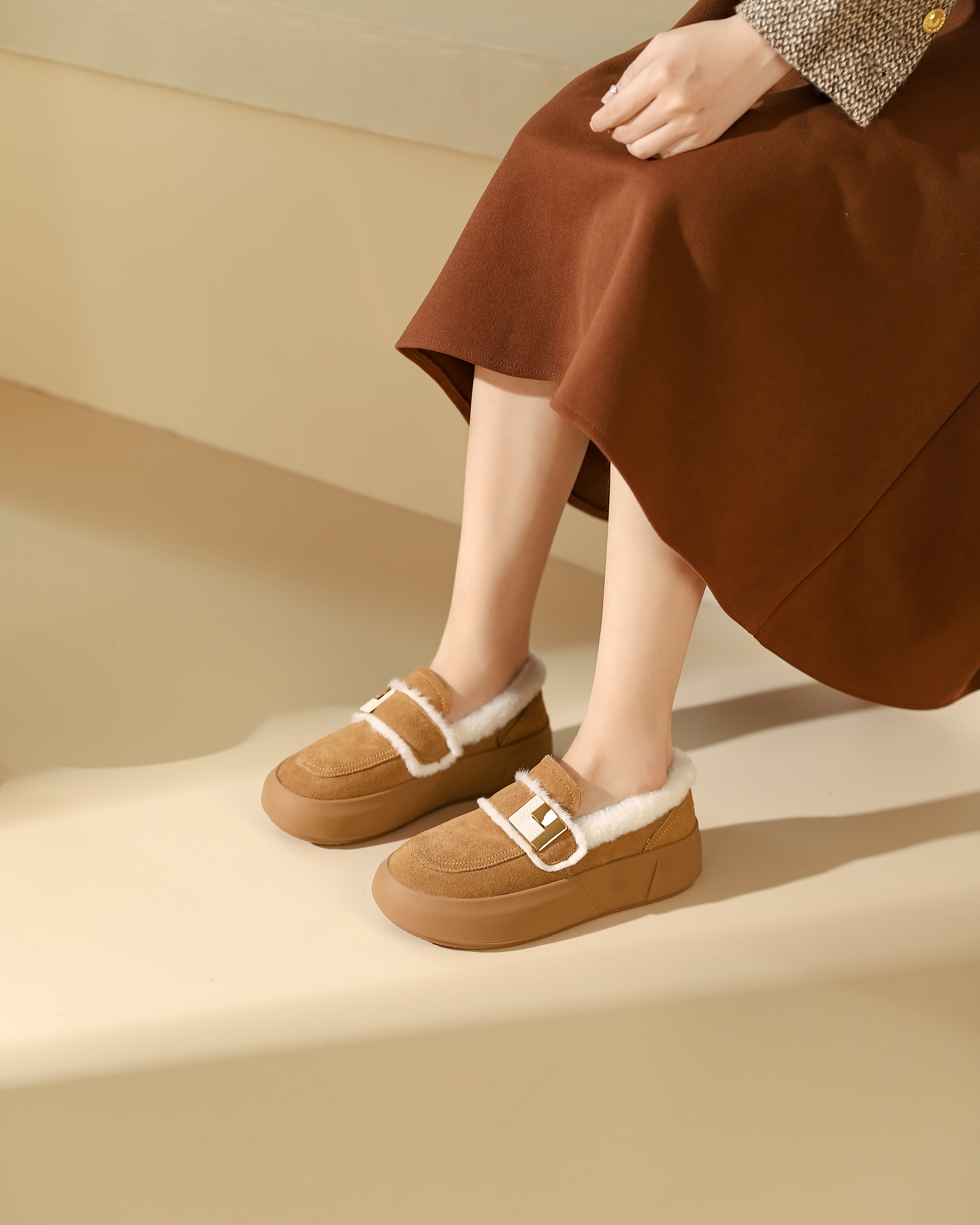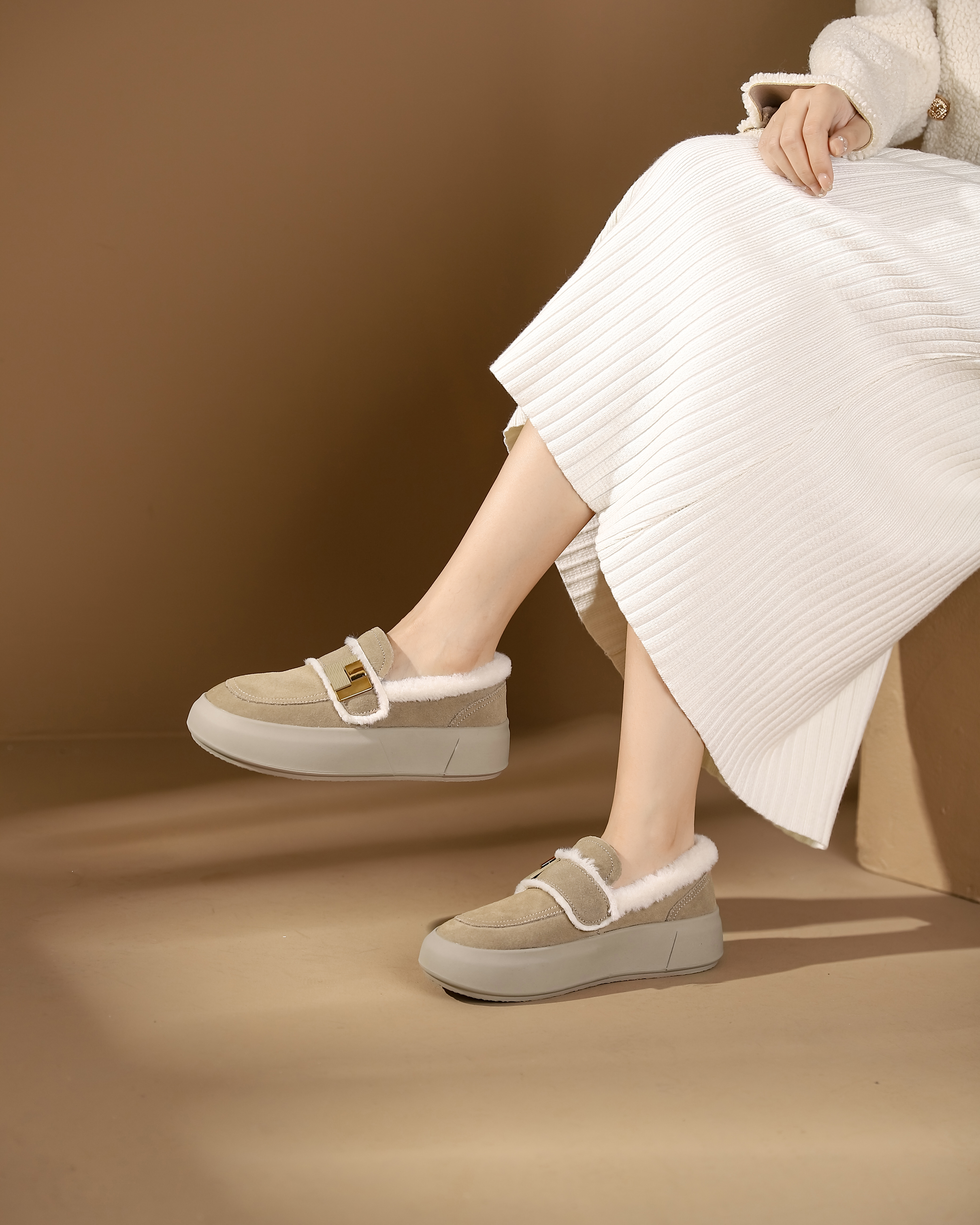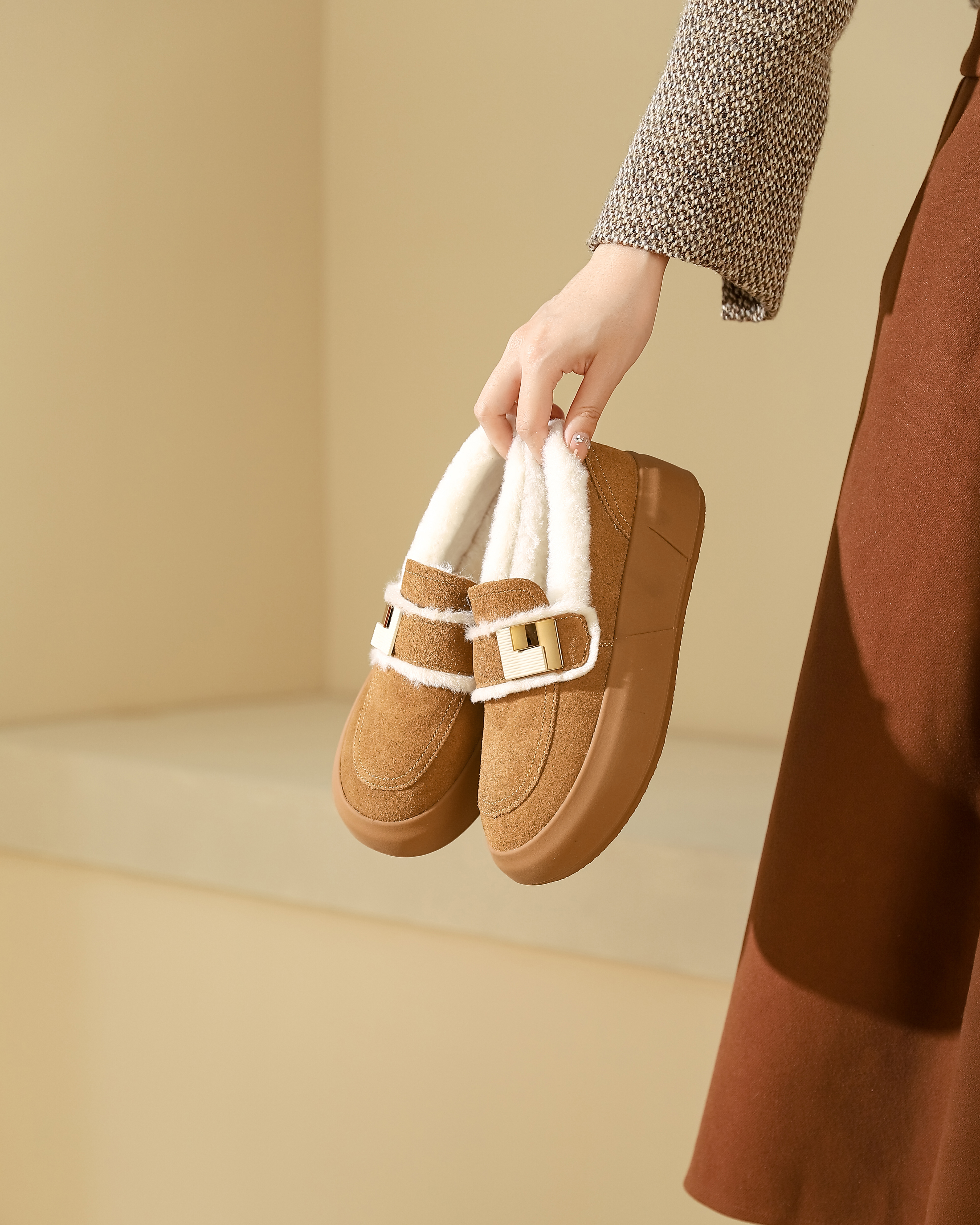西村名物2023秋冬季新款加绒乐福鞋豆豆鞋外穿雪地鞋T23DM46211