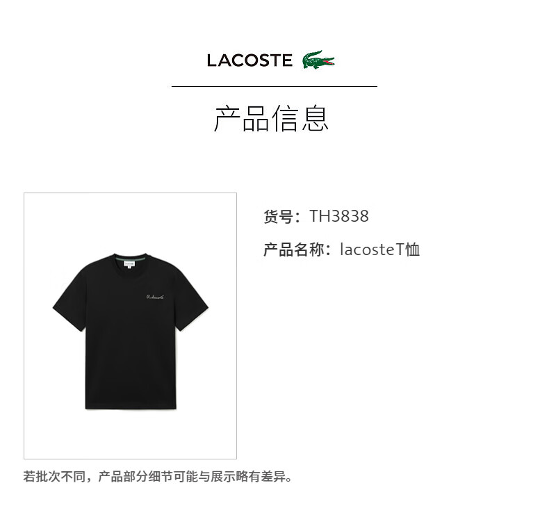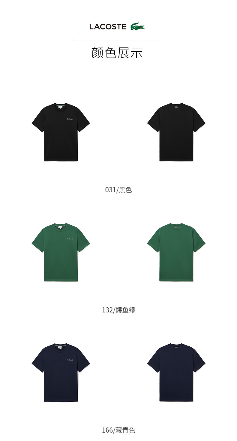 Lacoste法国鳄鱼男装新款简约休闲纯色圆领短袖T恤TH3838-98