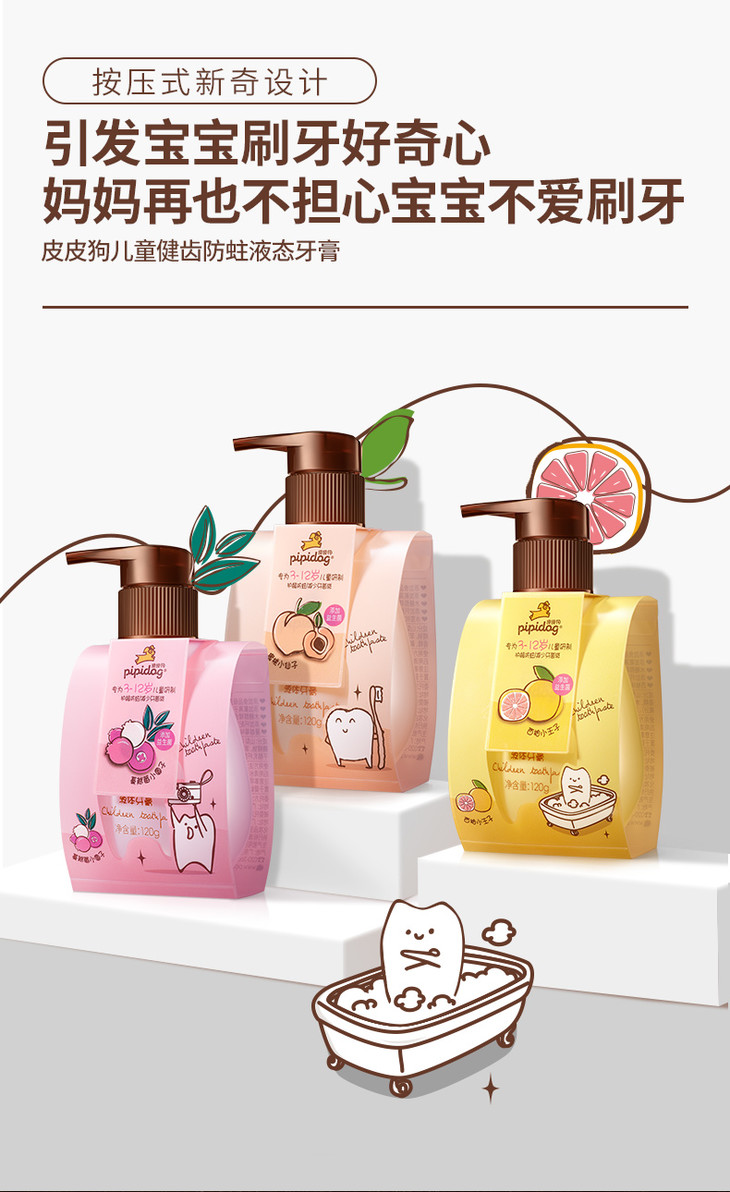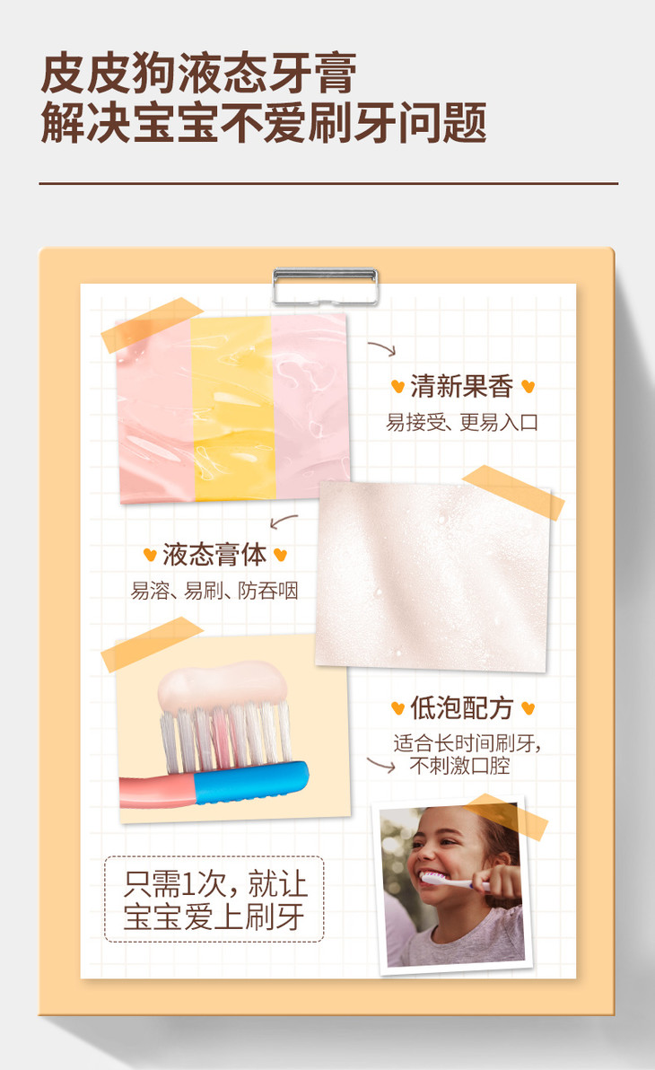 皮皮狗儿童健龈防蛀液体牙膏*2瓶