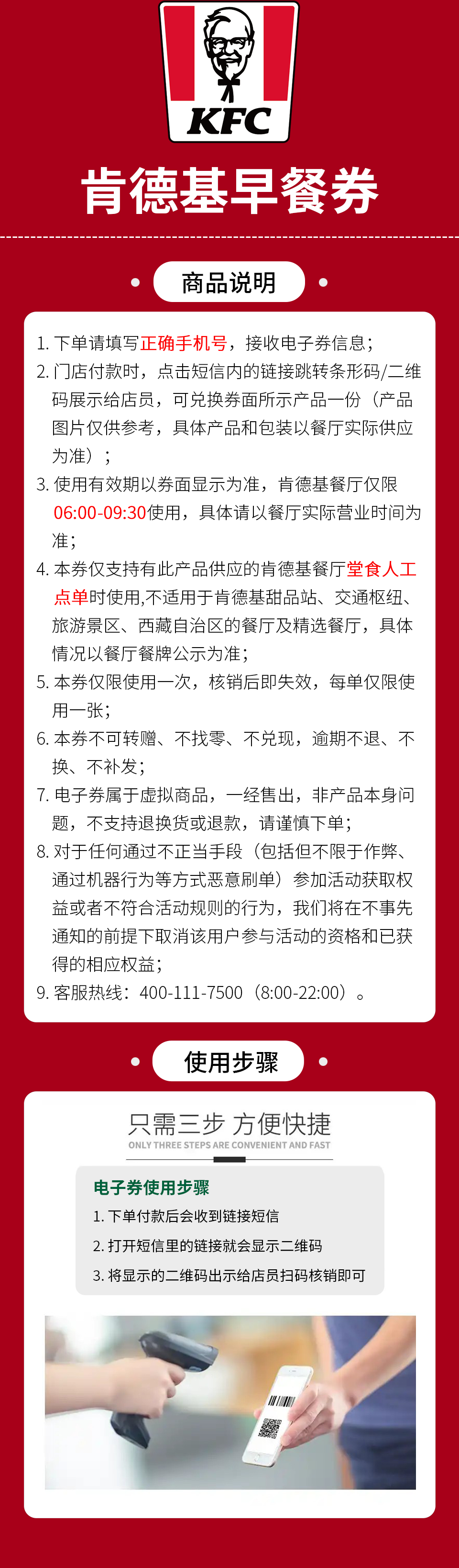 KFC肯德基皮蛋瘦肉粥+太阳蛋套餐 代金券抵扣券兑换券 自动发货