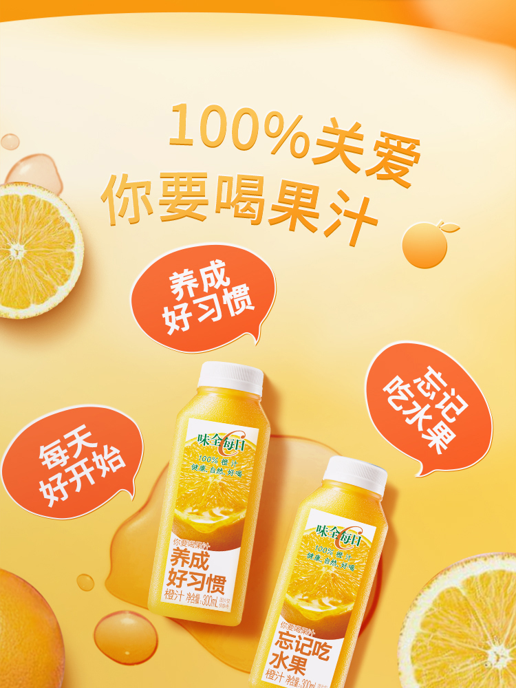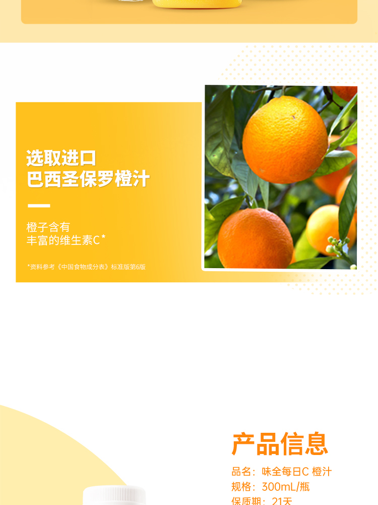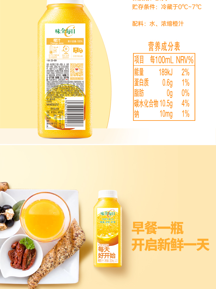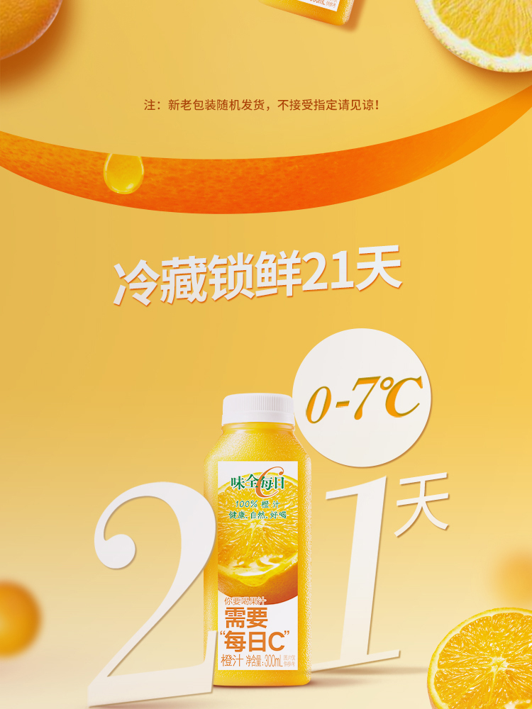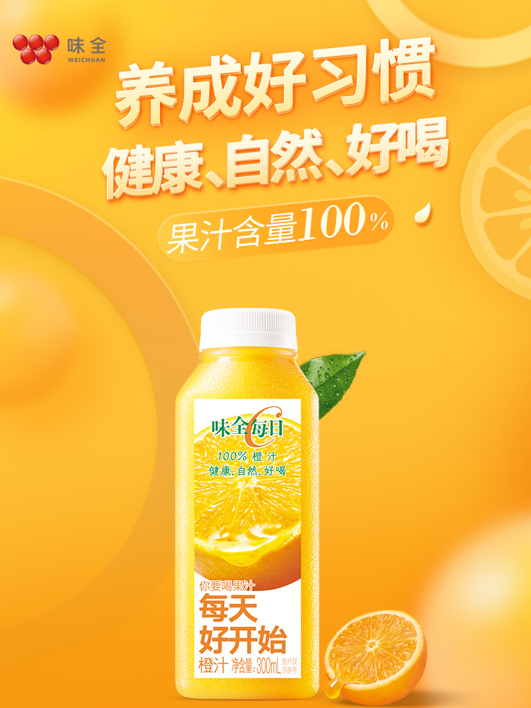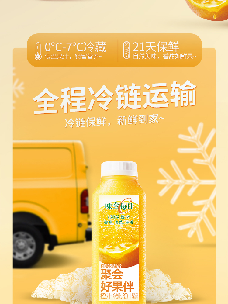 味全每日C橙汁 果汁 饮料 300ml×8瓶 低温 纯果蔬汁 饮品 包邮