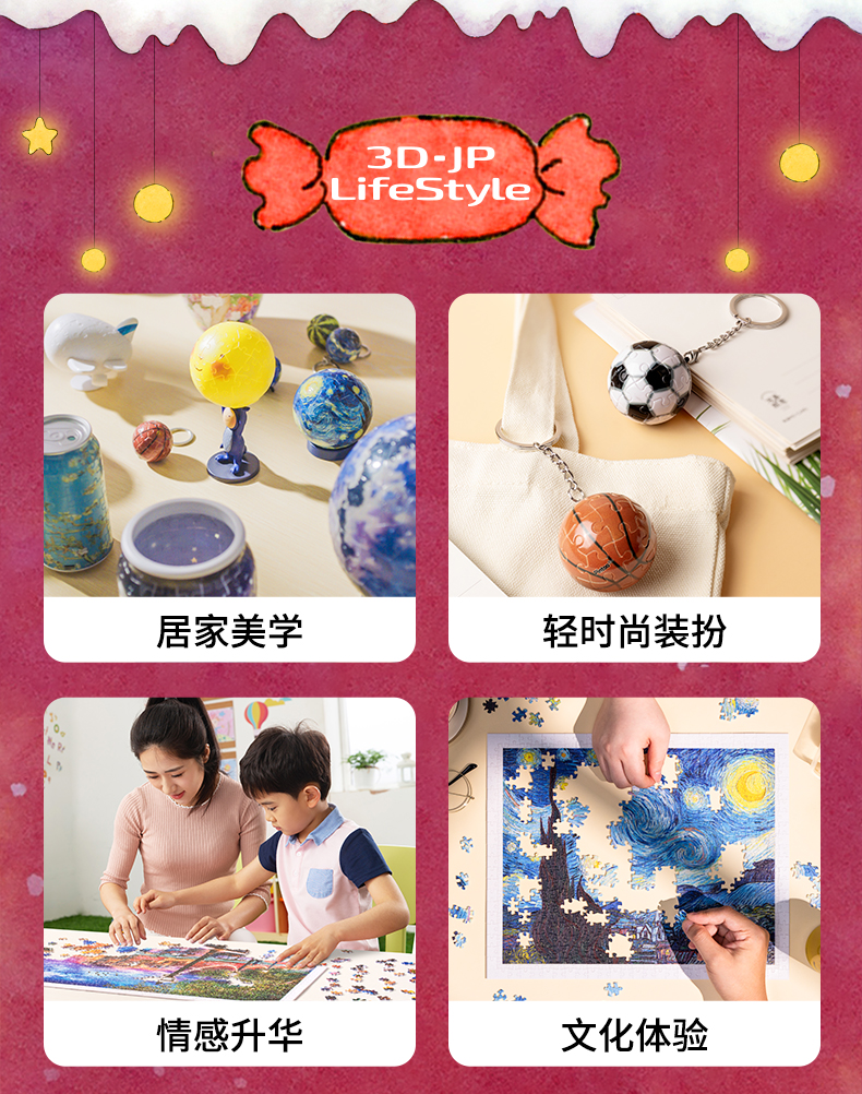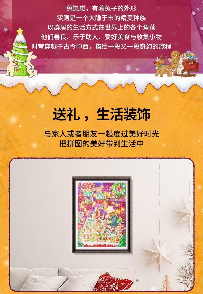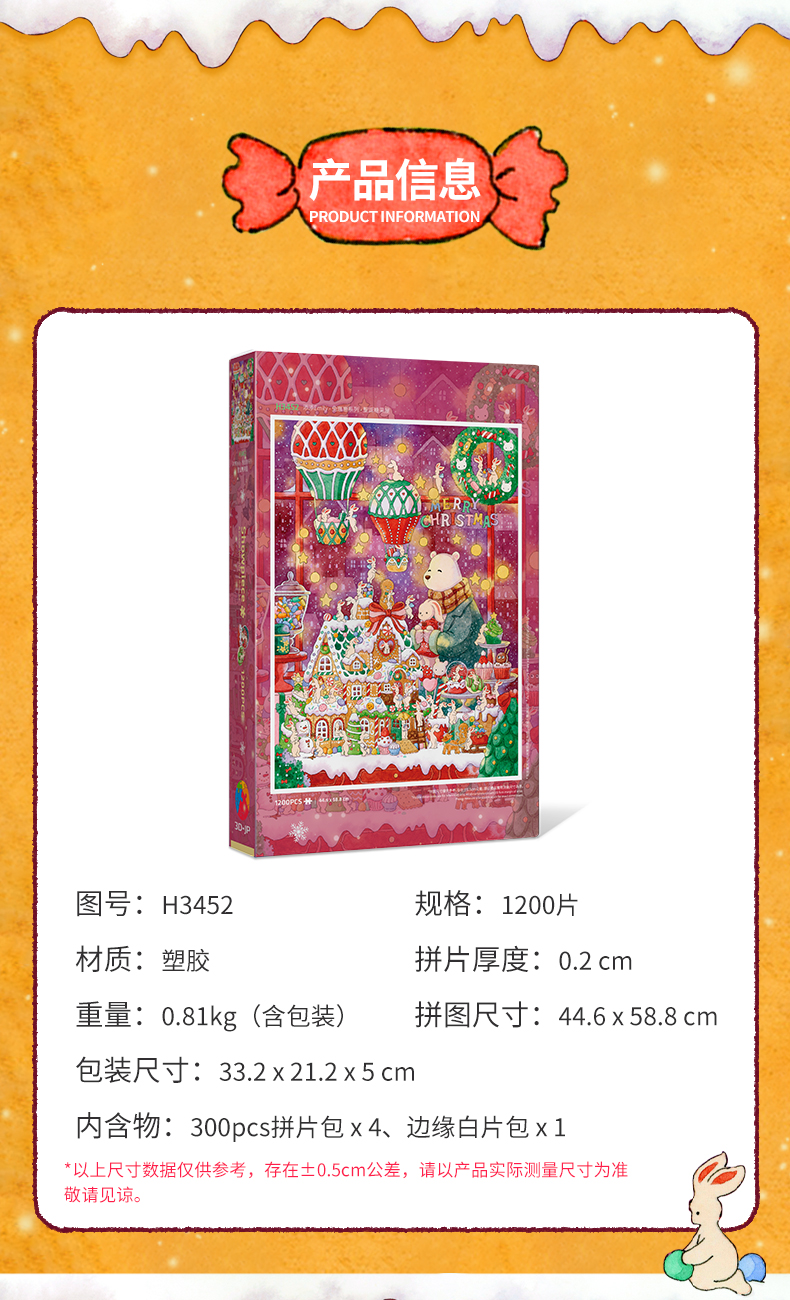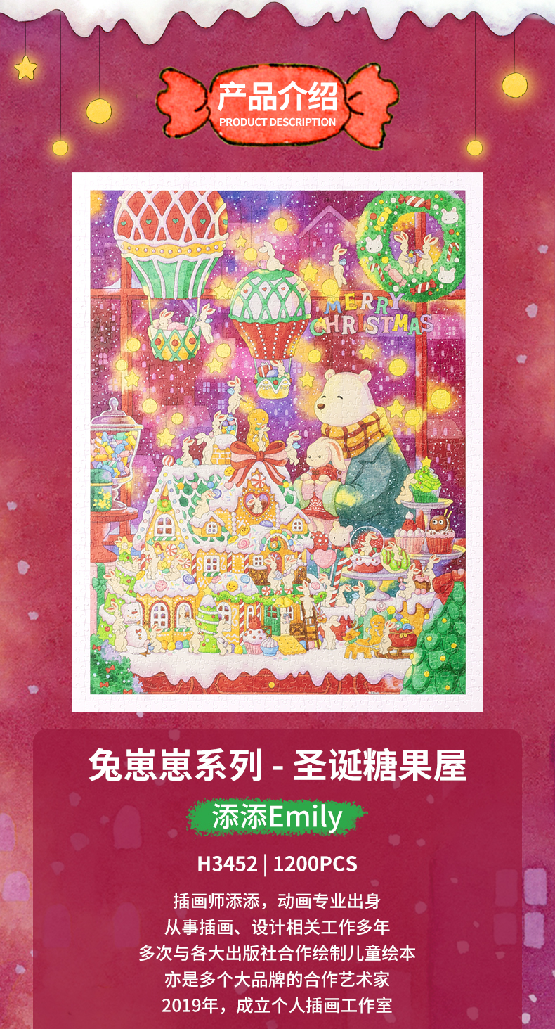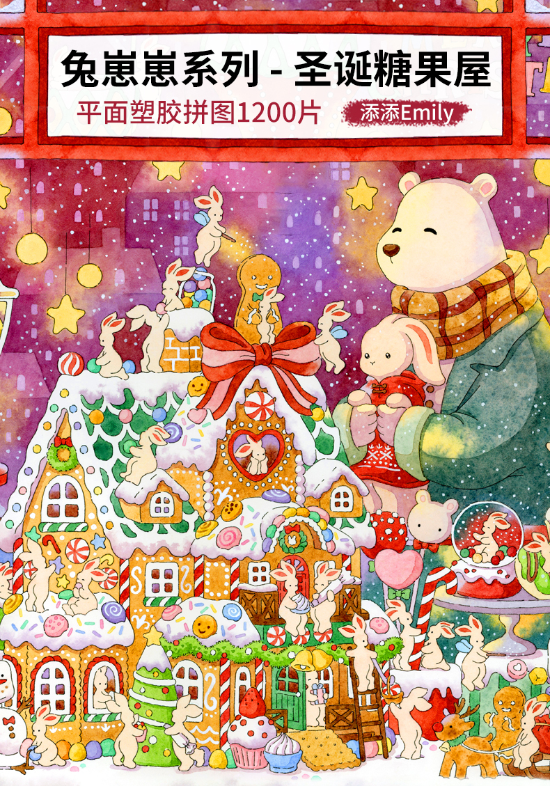 【折扣商品 不退不换】1200片 平面塑料拼图 H3452 添添Emily-兔崽崽系列-圣诞糖果屋