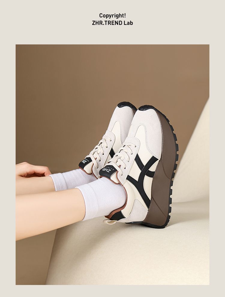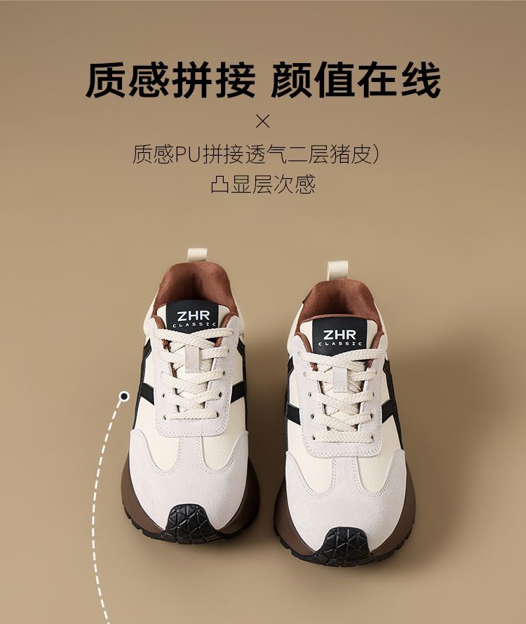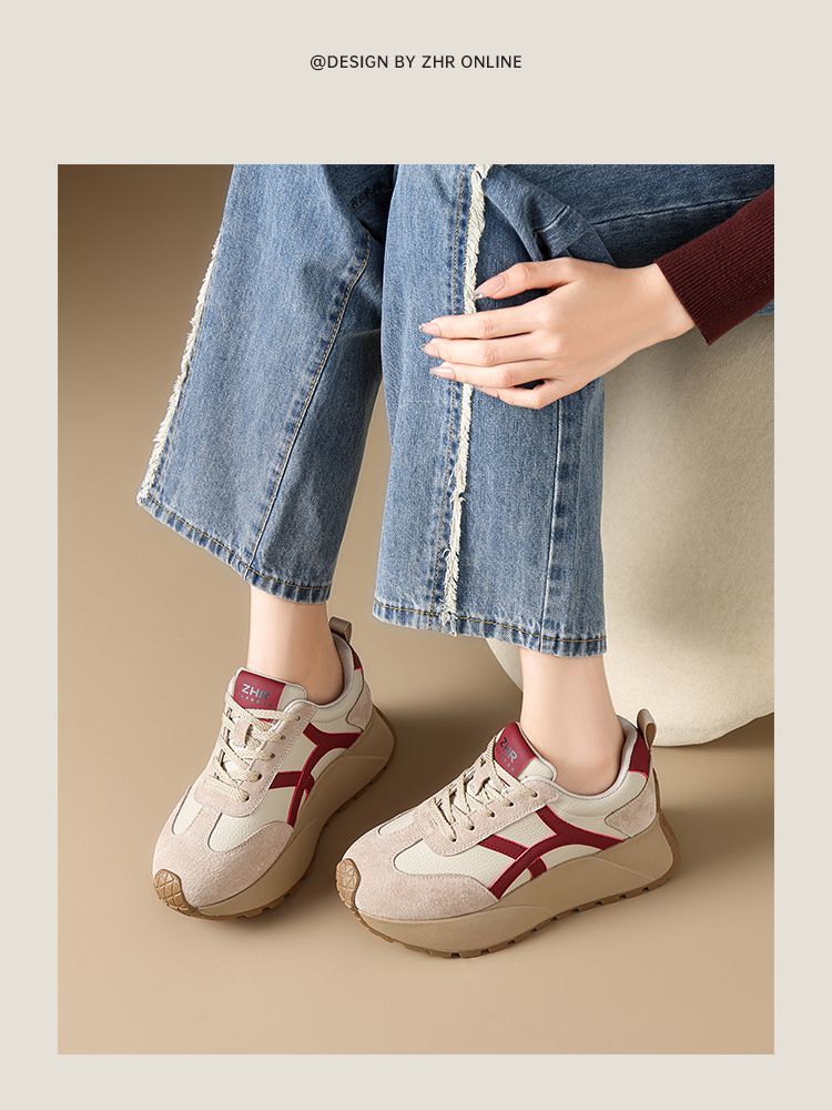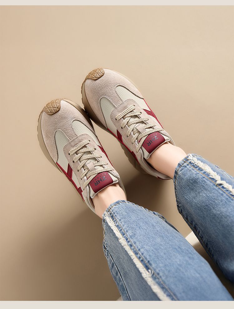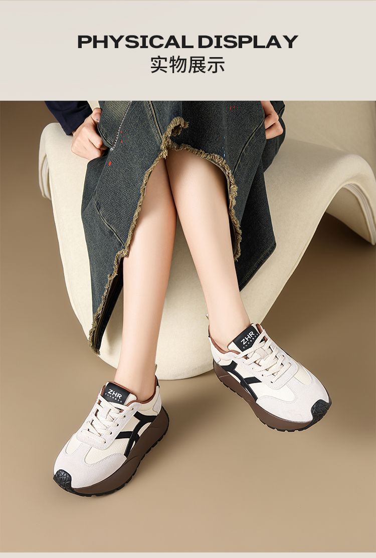 ZHR复古厚底德训鞋女2025春季新款透气弹软阿甘鞋撞色活力休闲鞋
