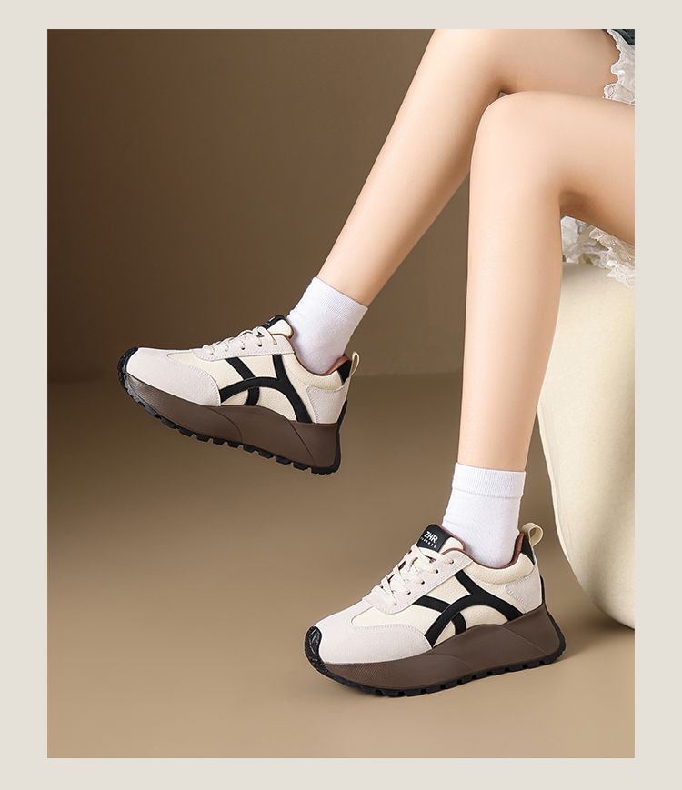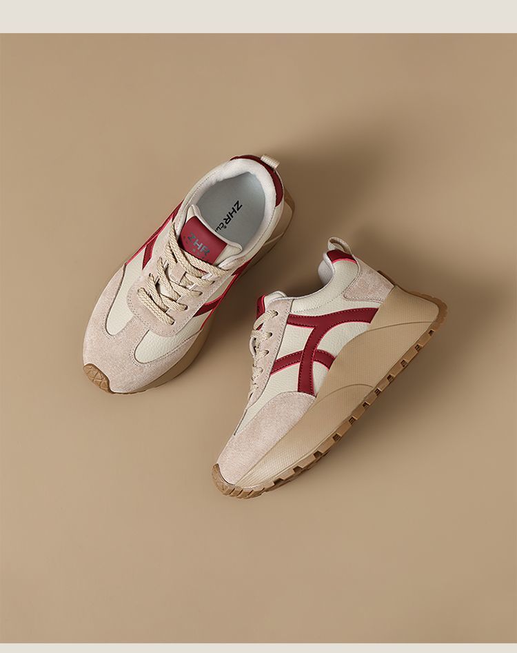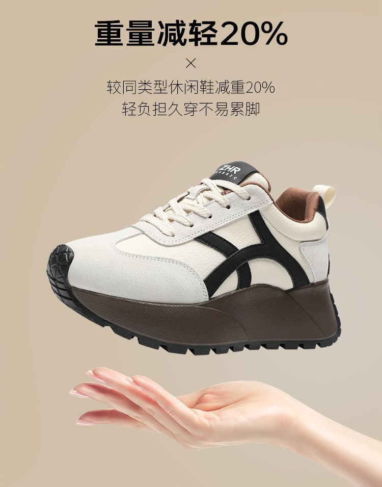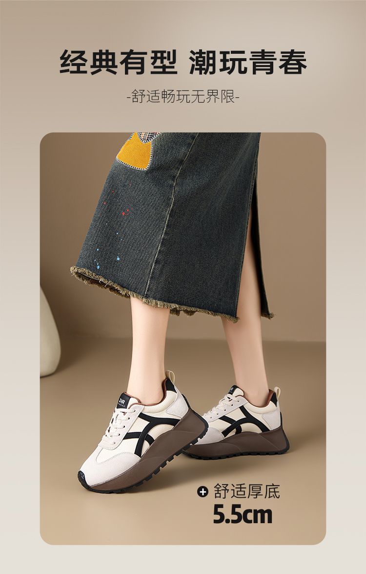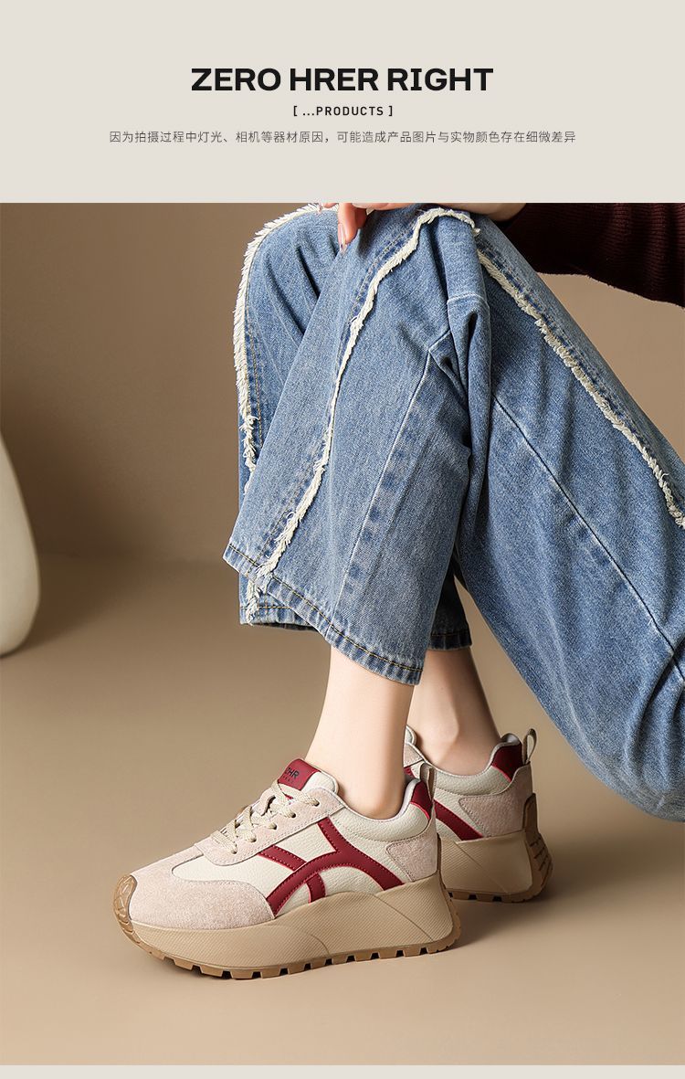 ZHR复古厚底德训鞋女2025春季新款透气弹软阿甘鞋撞色活力休闲鞋