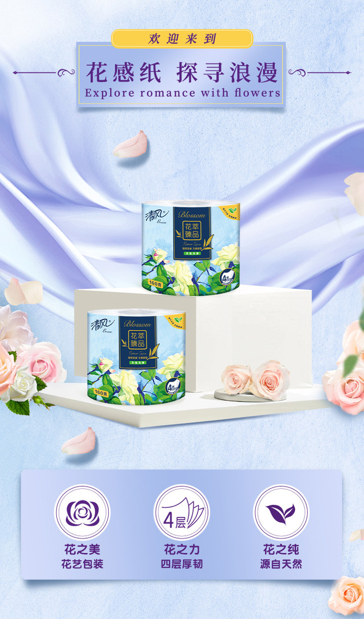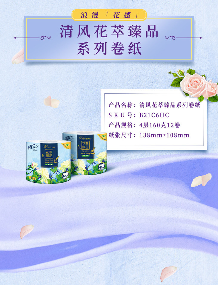 【超市】清风花萃臻品卷筒卫生纸