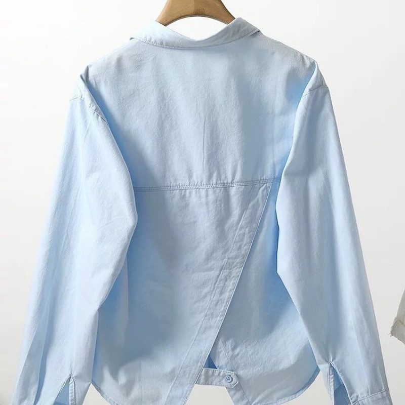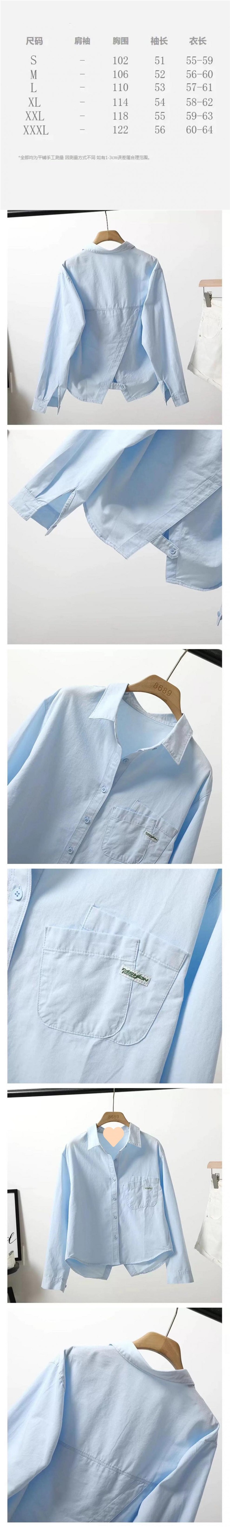 【背开叉短款棉衬衫】秋季新款 浅蓝色叠口袋衬衫 韩版休闲外搭潮流