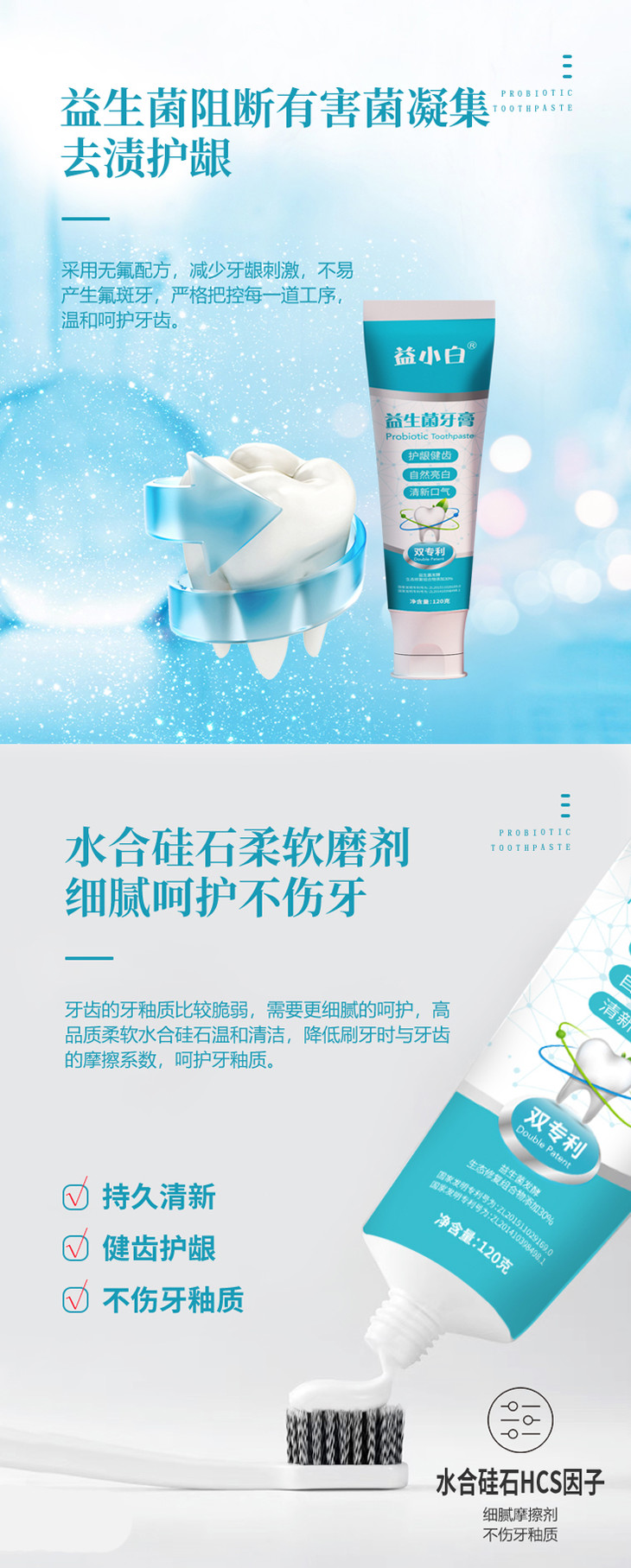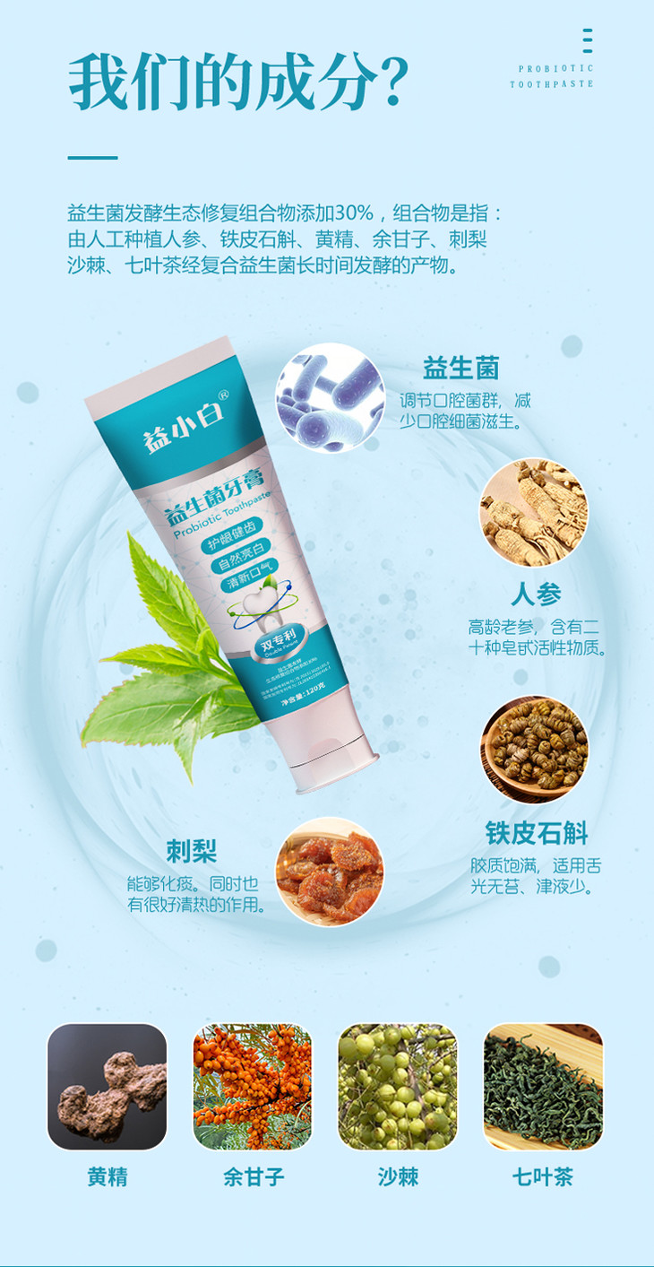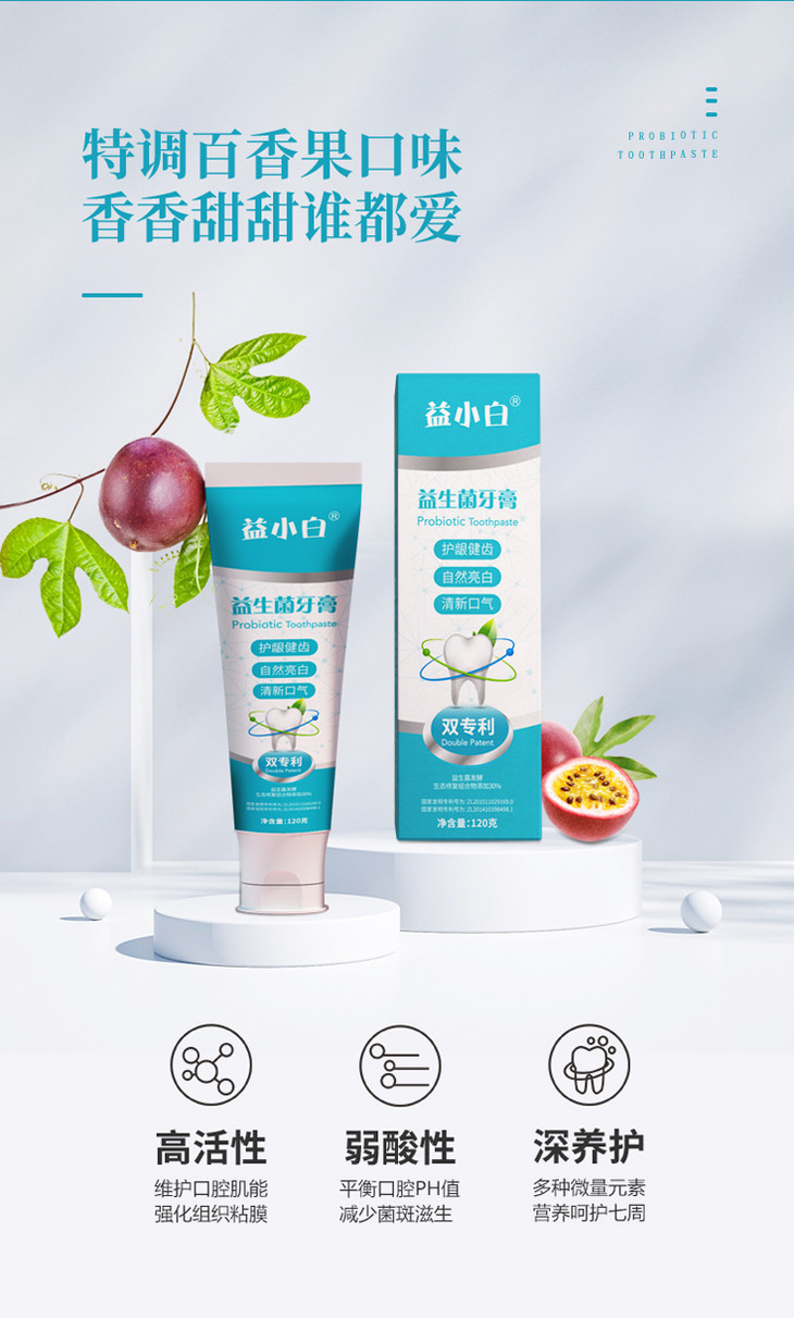 【买2送1,买3送2】双专利益生菌牙膏 平衡口腔菌群清新口腔护理 百香果清新口气 去除牙菌斑牙结石 亮白 去渍