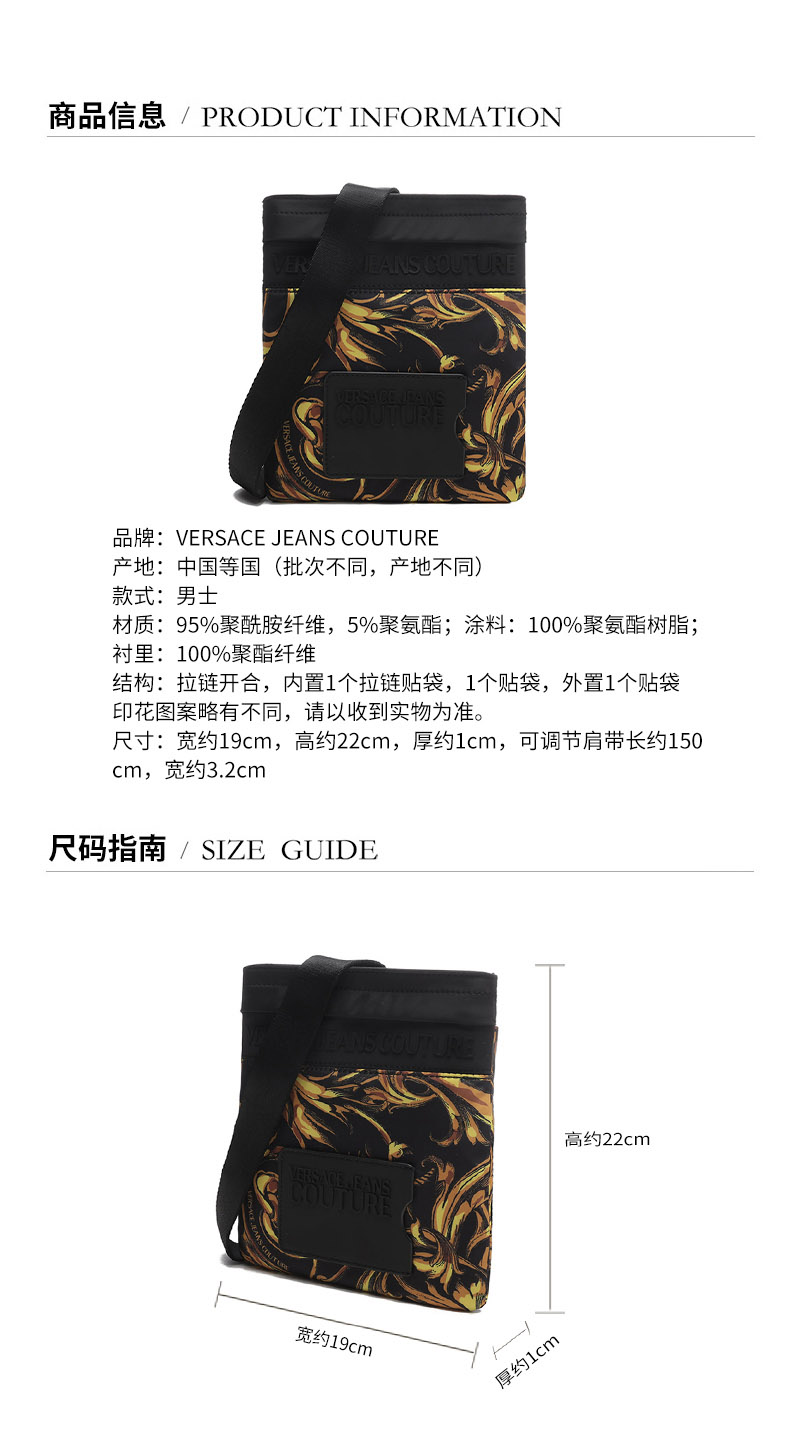 VERSACE JEANS COUTURE【22春夏新款】男士单肩斜挎包印花图案 72YA4B9I ZS281