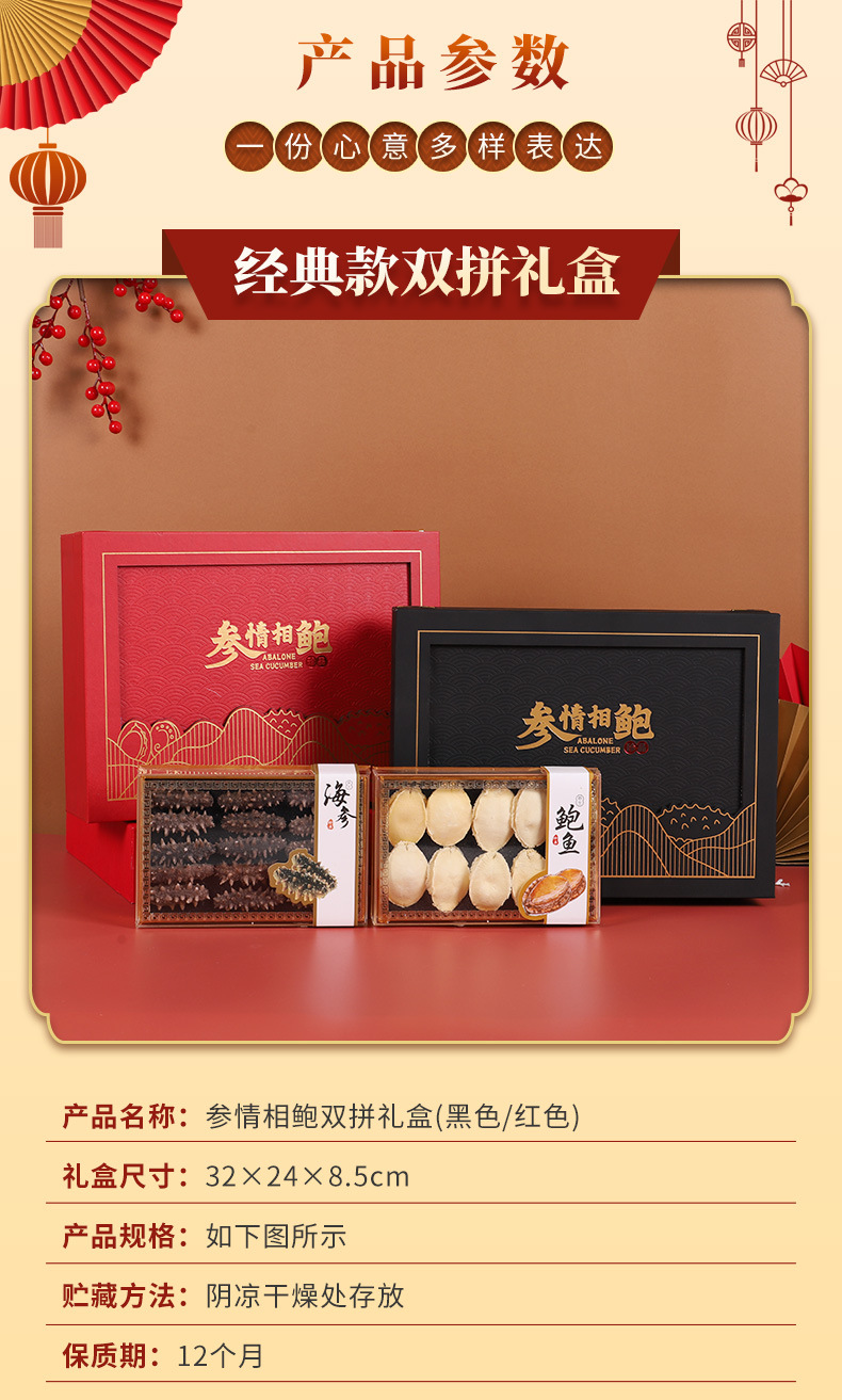 【山珍干货】大连特产 山珍海味海参鲍鱼干货双拼 礼盒装 送长辈领导