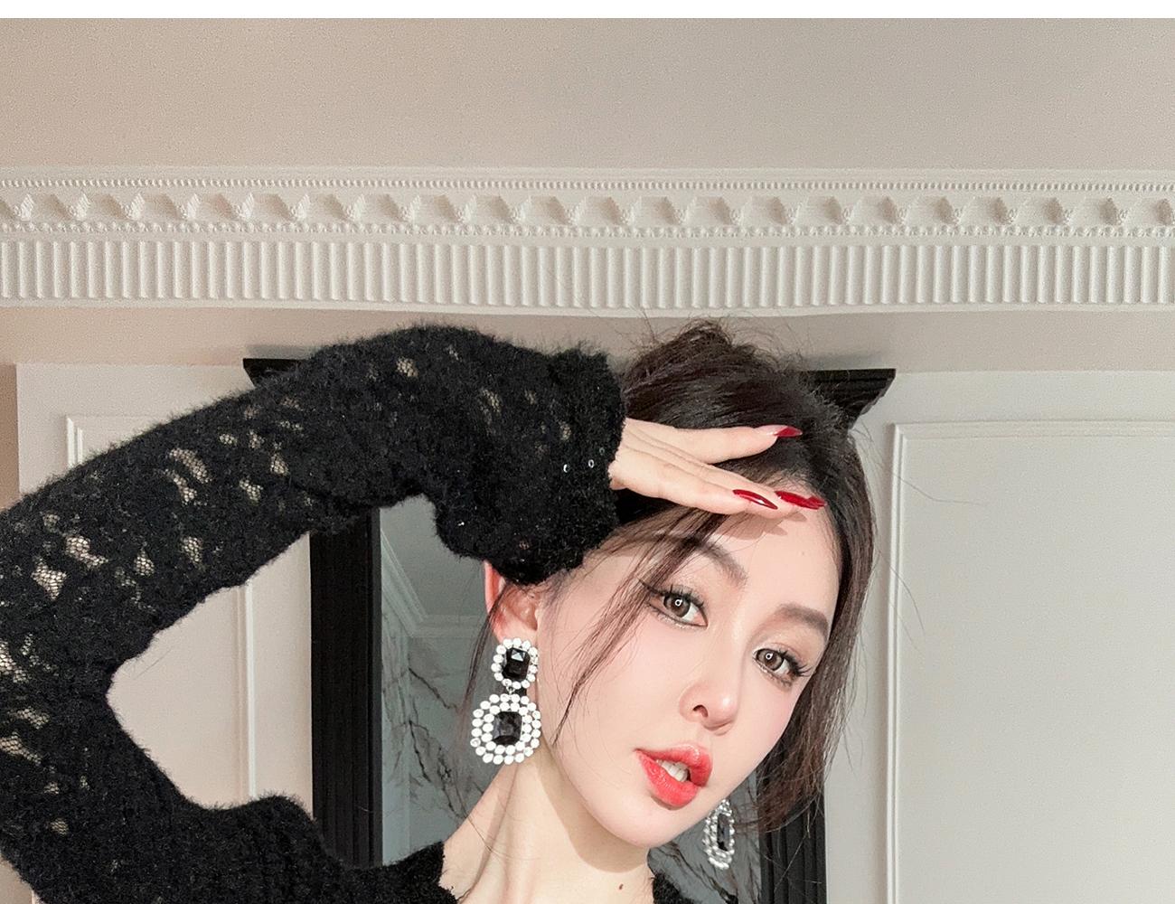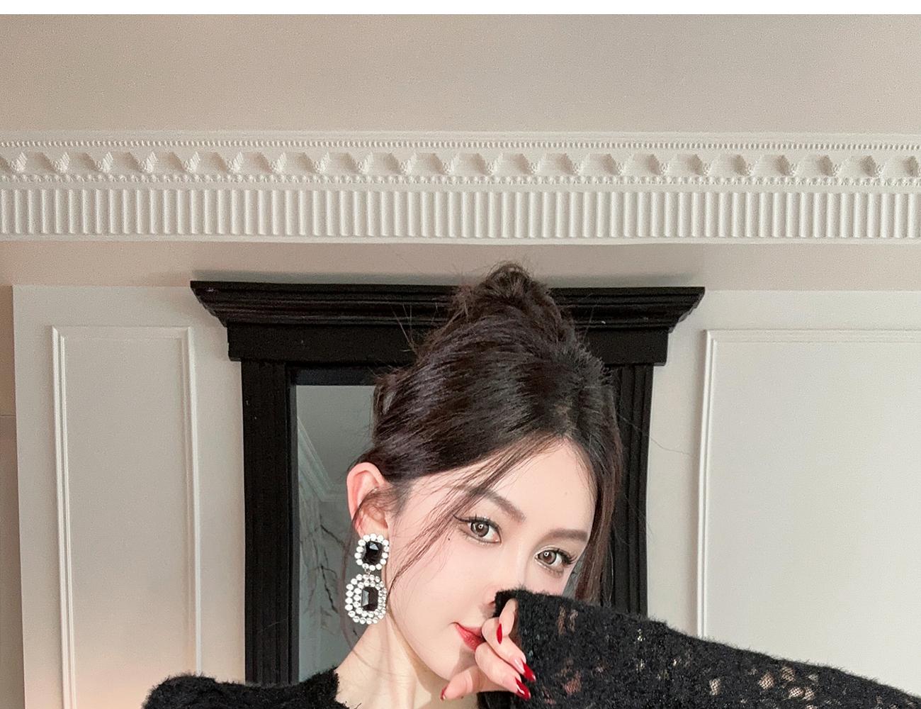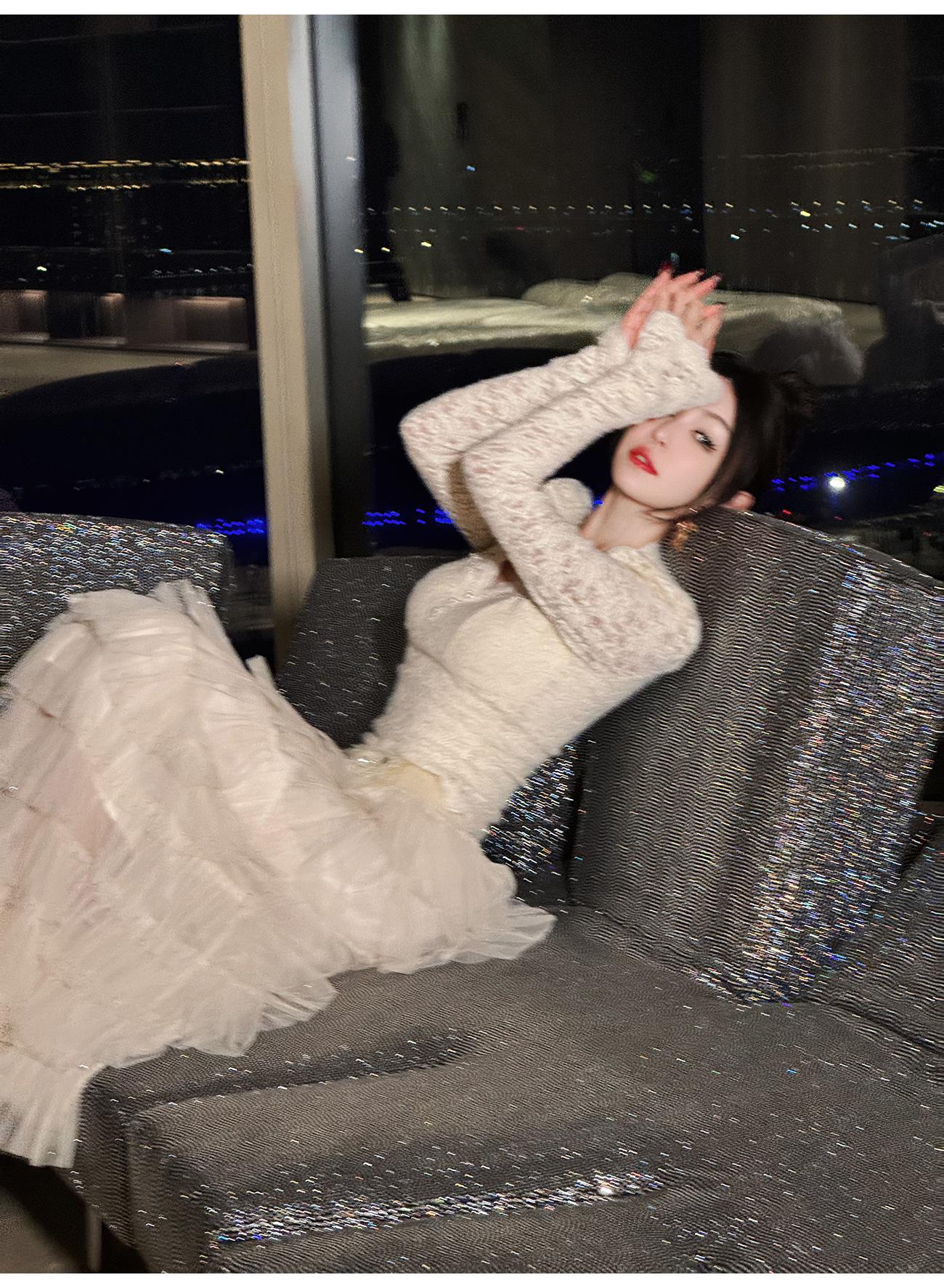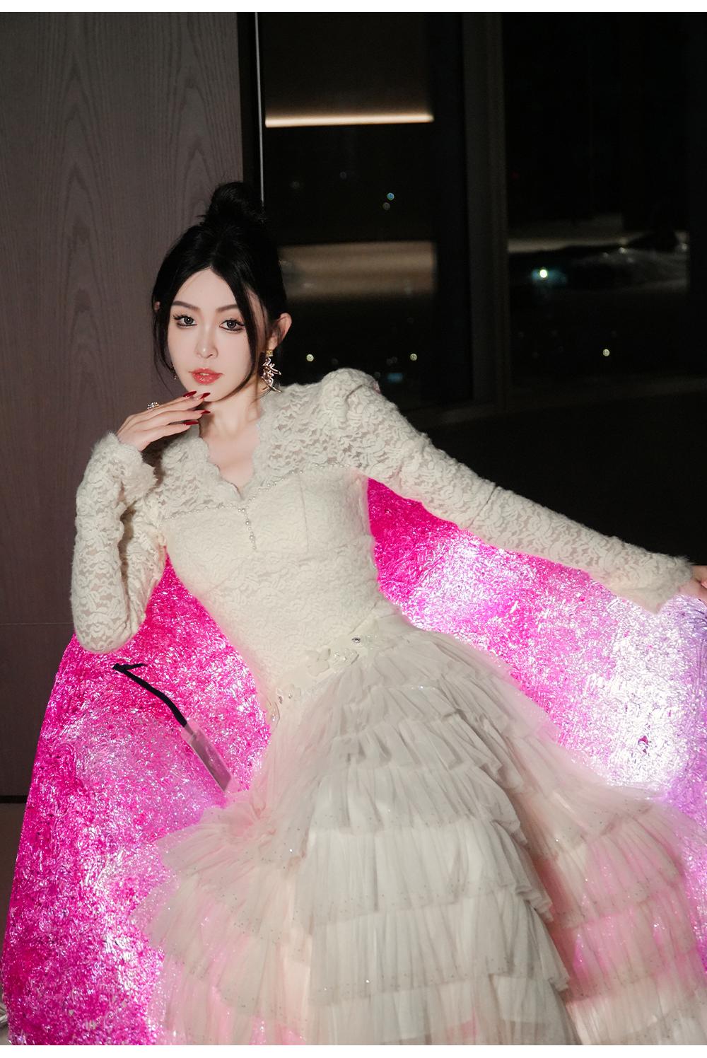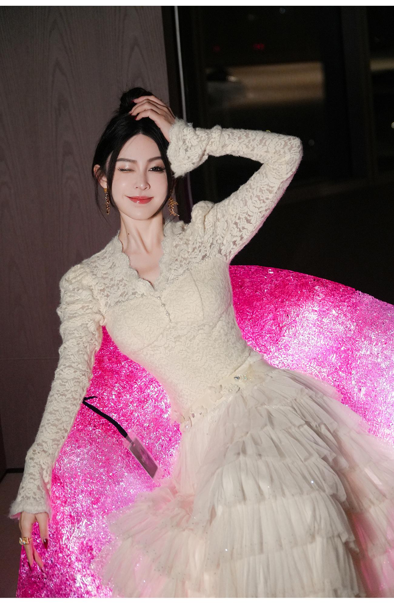 BeQueenStory【百搭蕾丝】性感时尚蕾丝羽毛纱长袖V领修身上衣女装