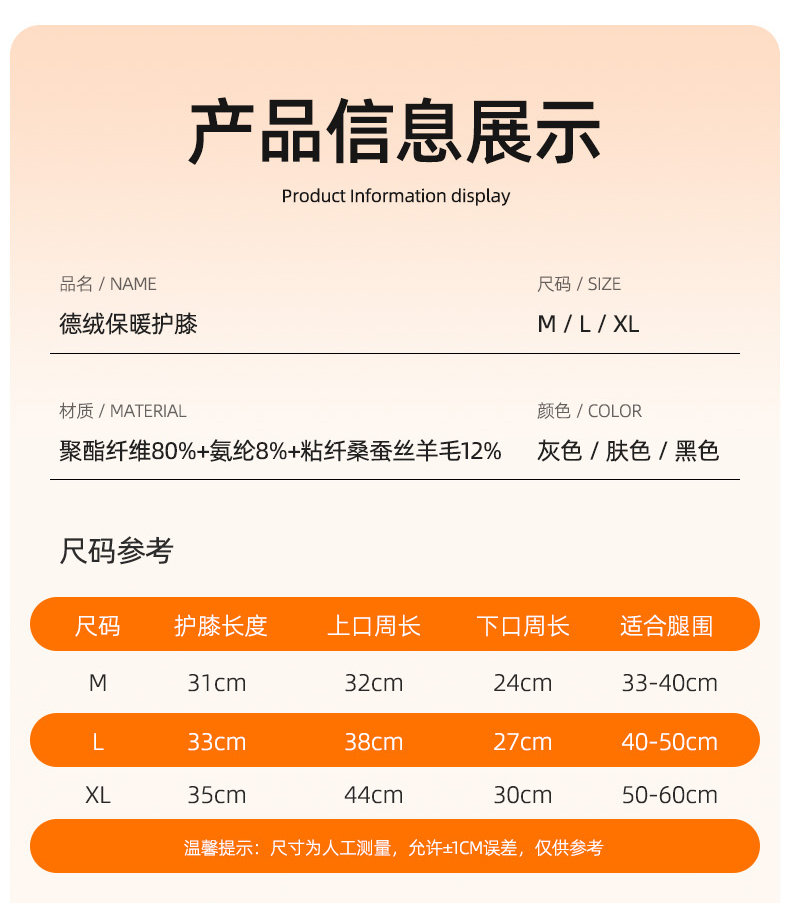 12%羊毛蚕丝远红外发热绑带护膝 送暖宝宝A-5504