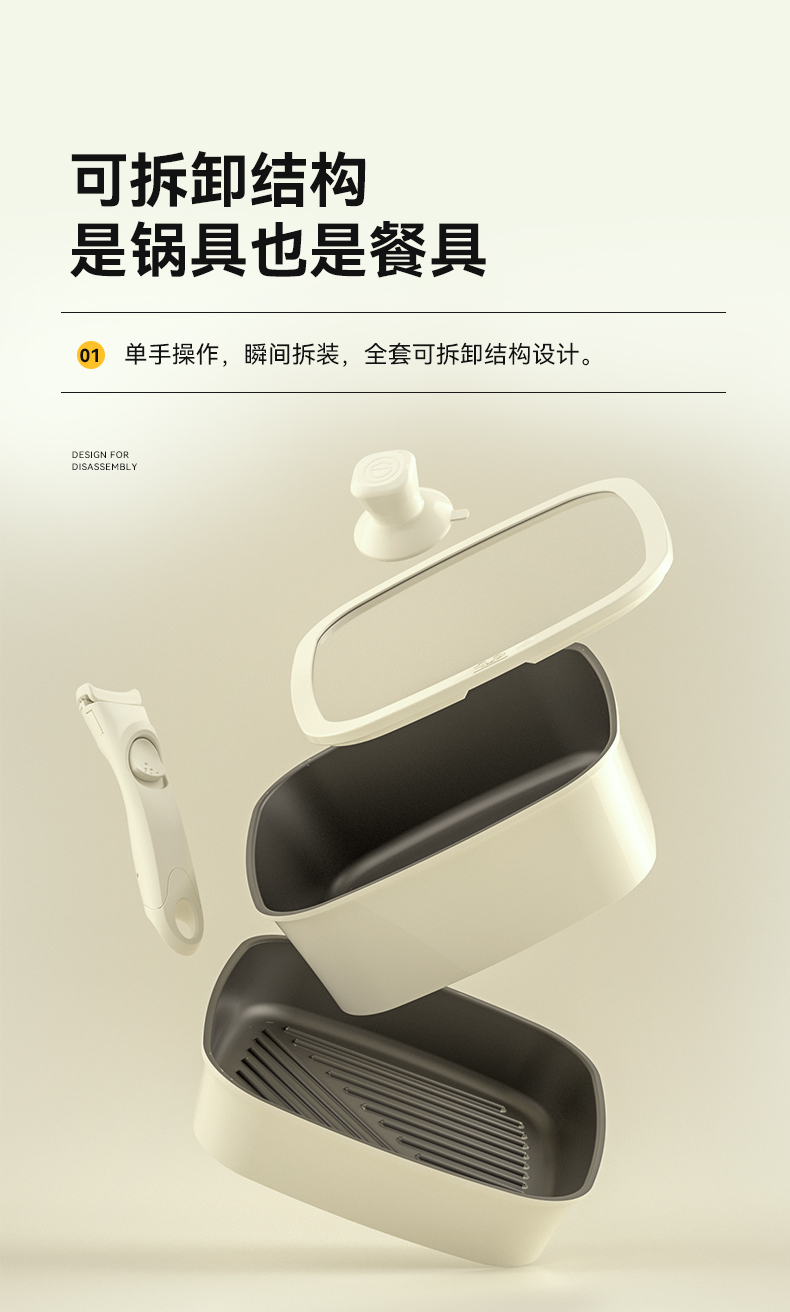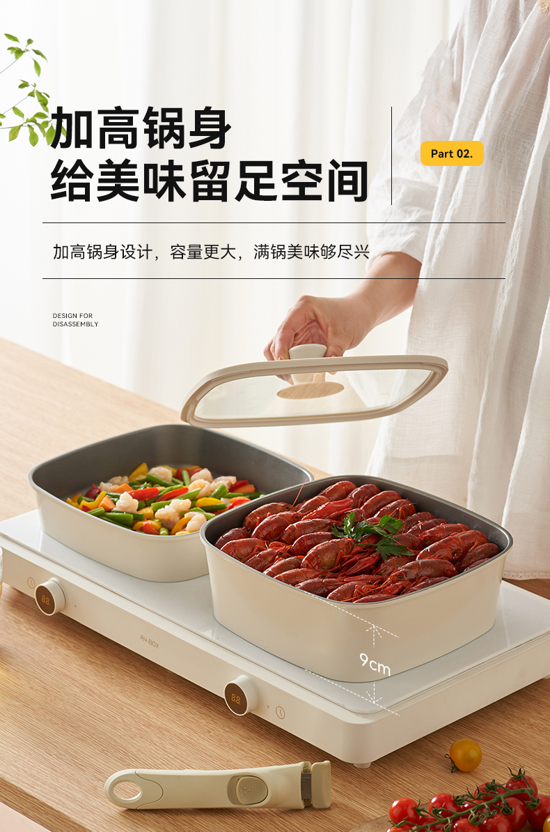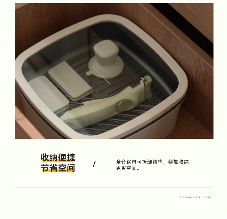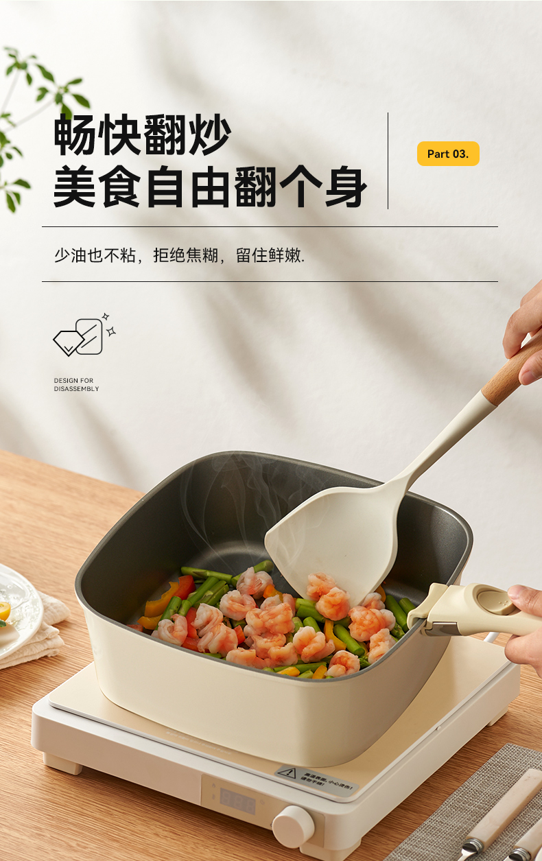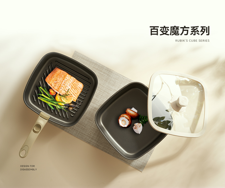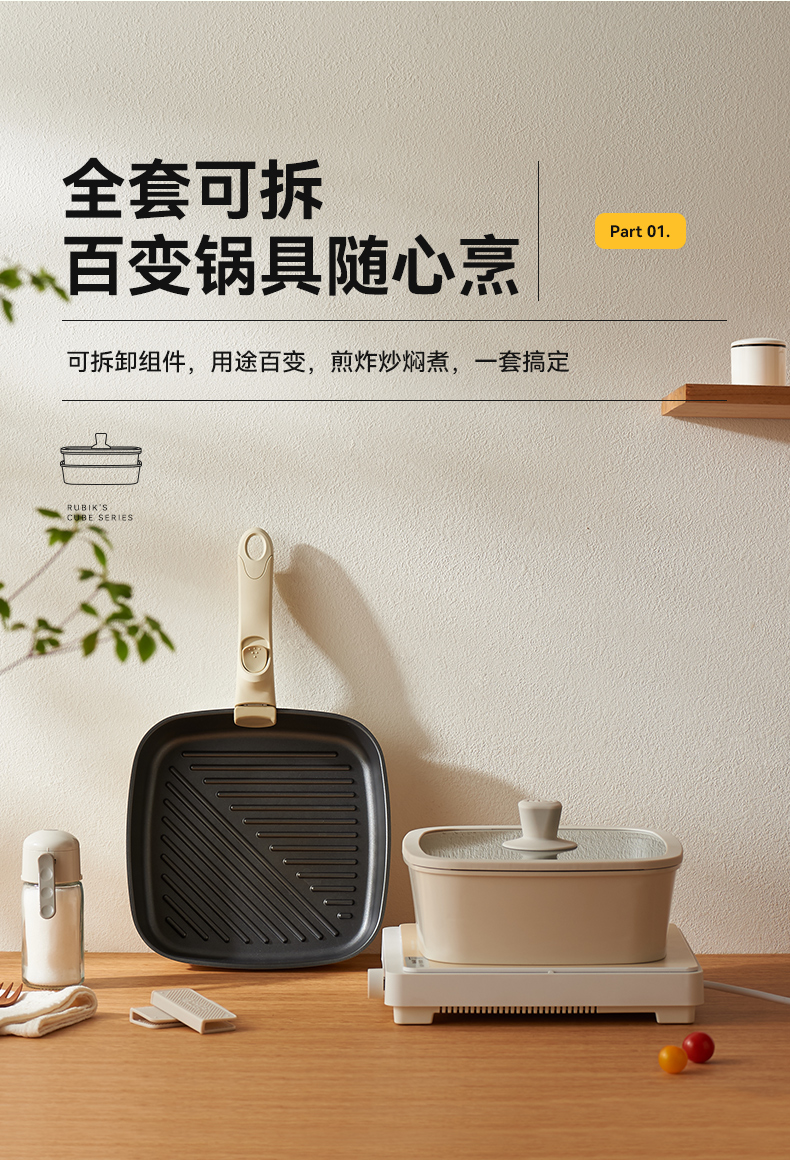 kimscook魔方锅方形不粘锅炒锅可拆卸手柄平底锅煎炒锅套装汤锅
