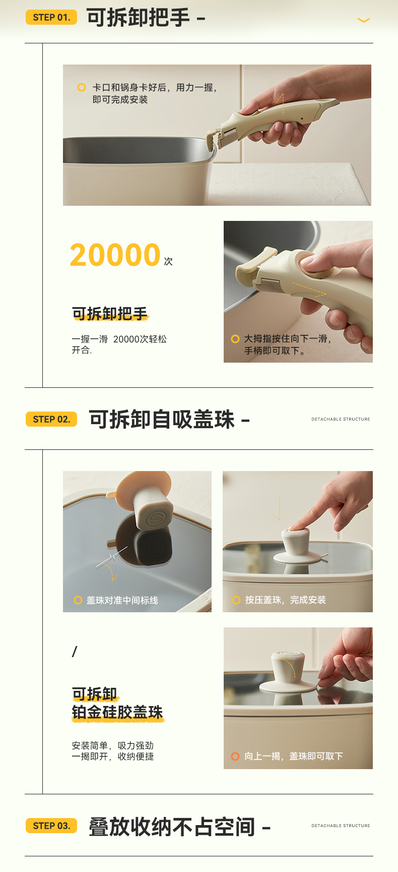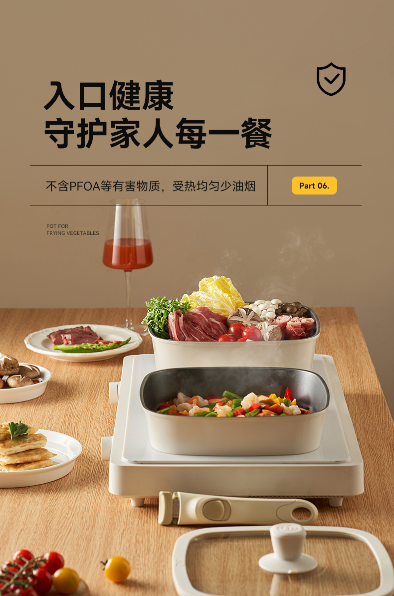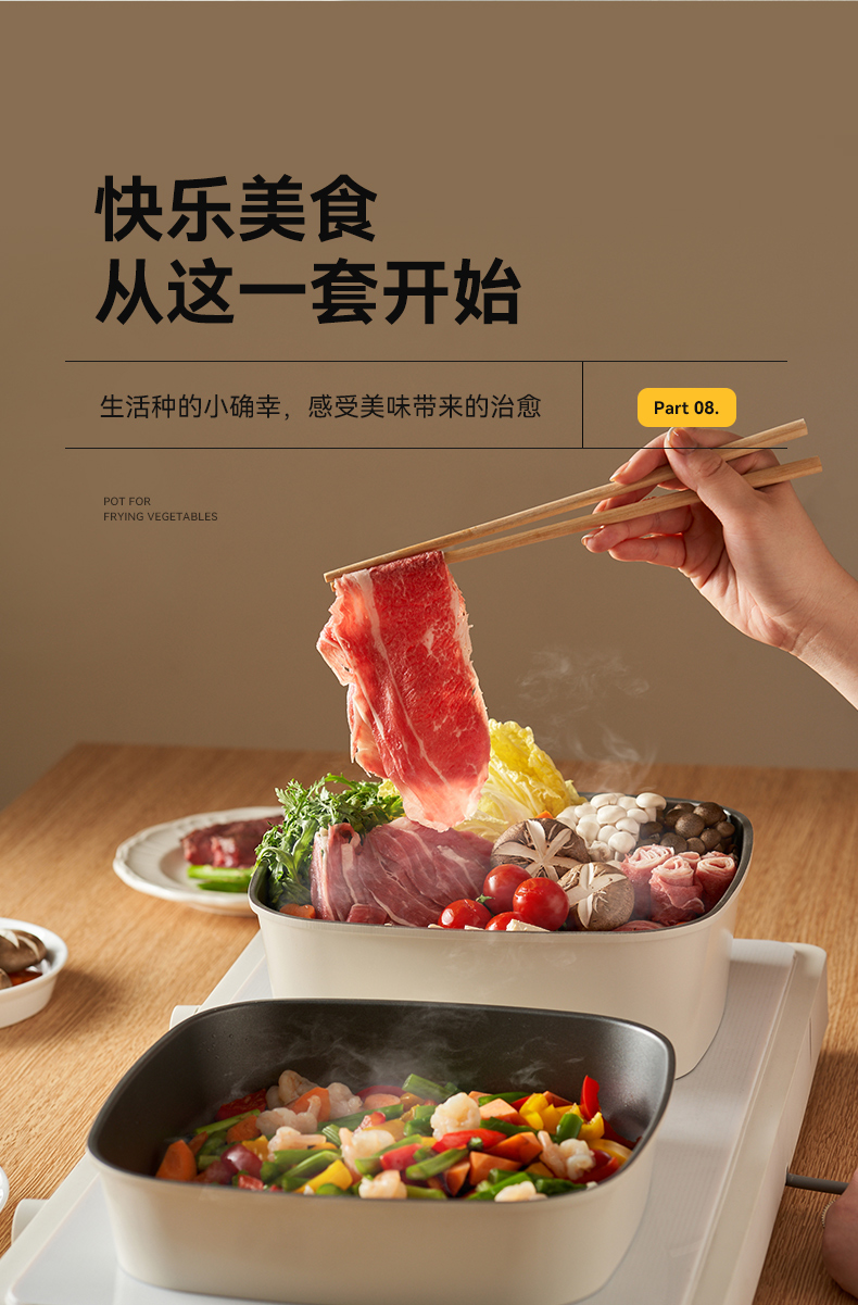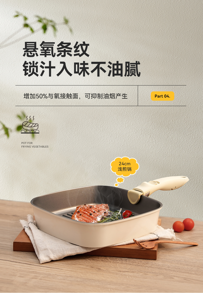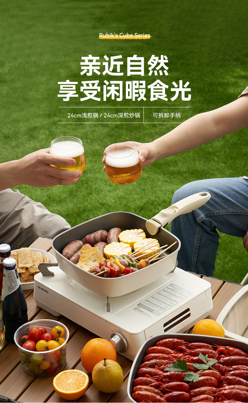 kimscook魔方锅方形不粘锅炒锅可拆卸手柄平底锅煎炒锅套装汤锅