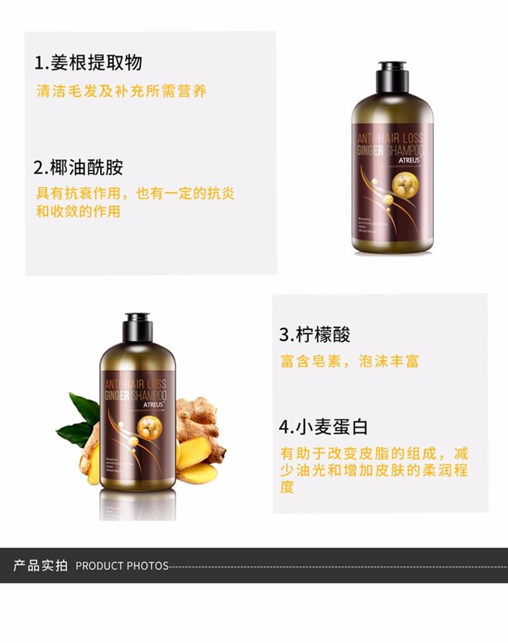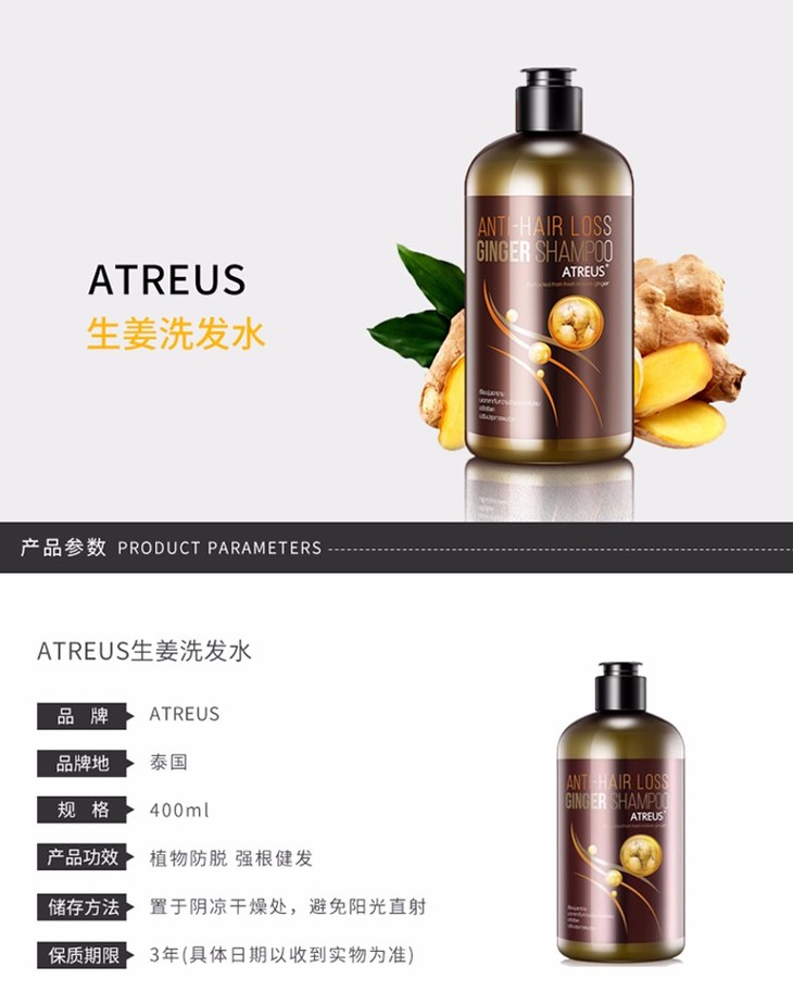 【精品推荐】【香港直邮】泰国ATREUS 无硅油生姜洗发水Atreus生姜洗发水400ml