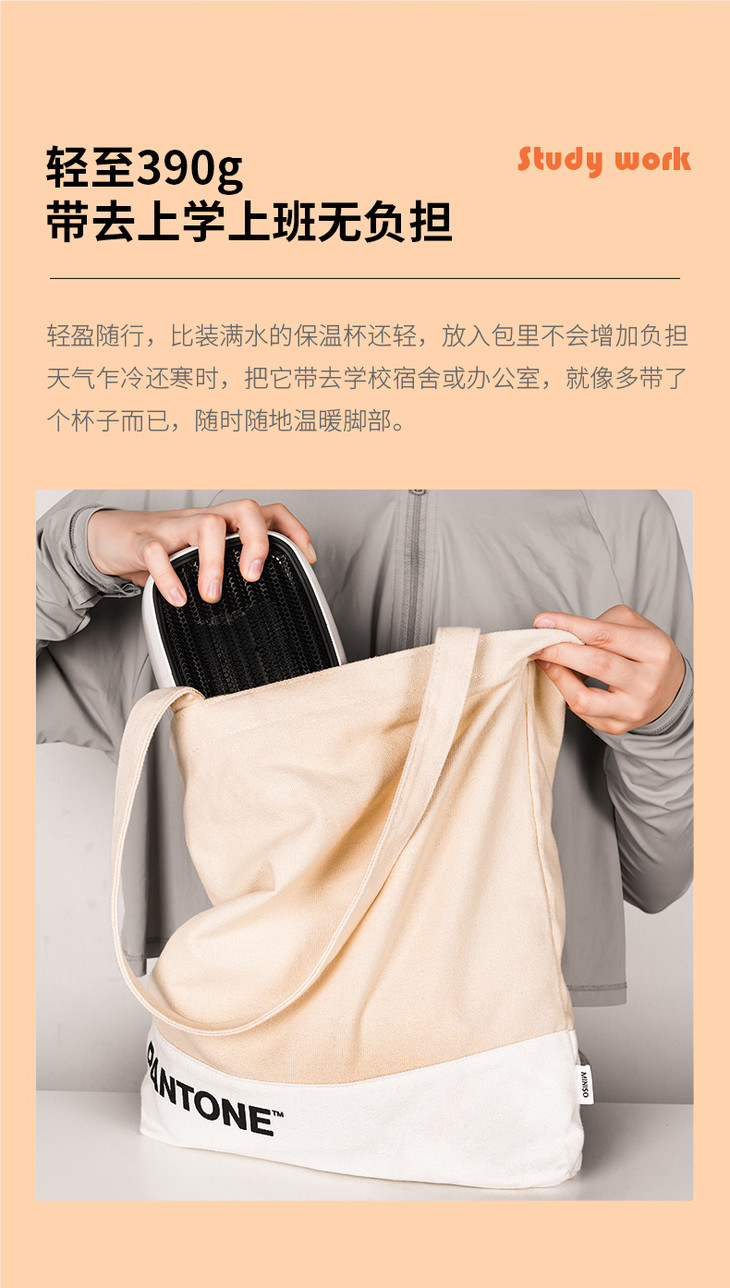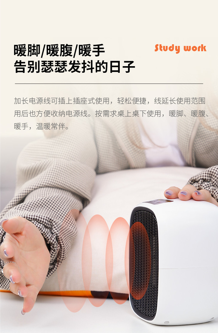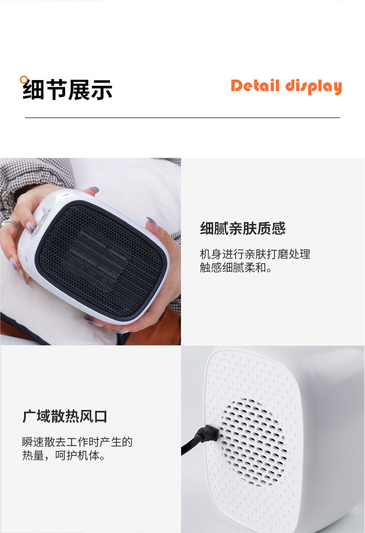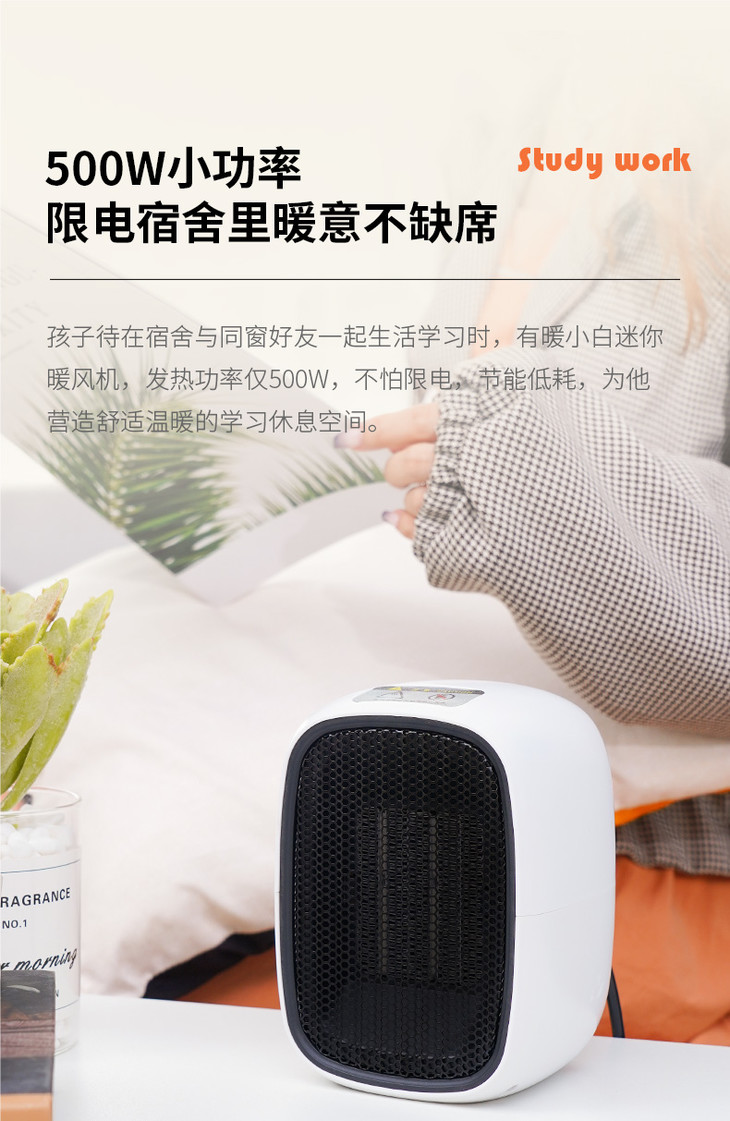 1、暖小白桌面暖风机 PTC陶瓷发热体,安全