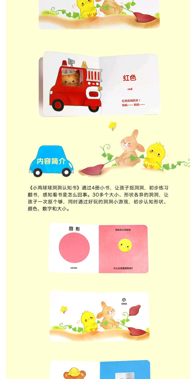 《0-2岁小鸡球球洞洞认知书(套装全4册纸板书)包含数字、颜色、形状和大小认知,洞洞玩具书》([日]入山 智)