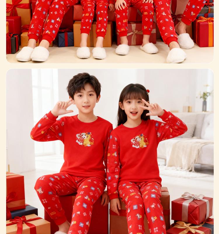 2026新年红色喜庆家居服春秋款马年卡通印花亲子装睡衣套装潮