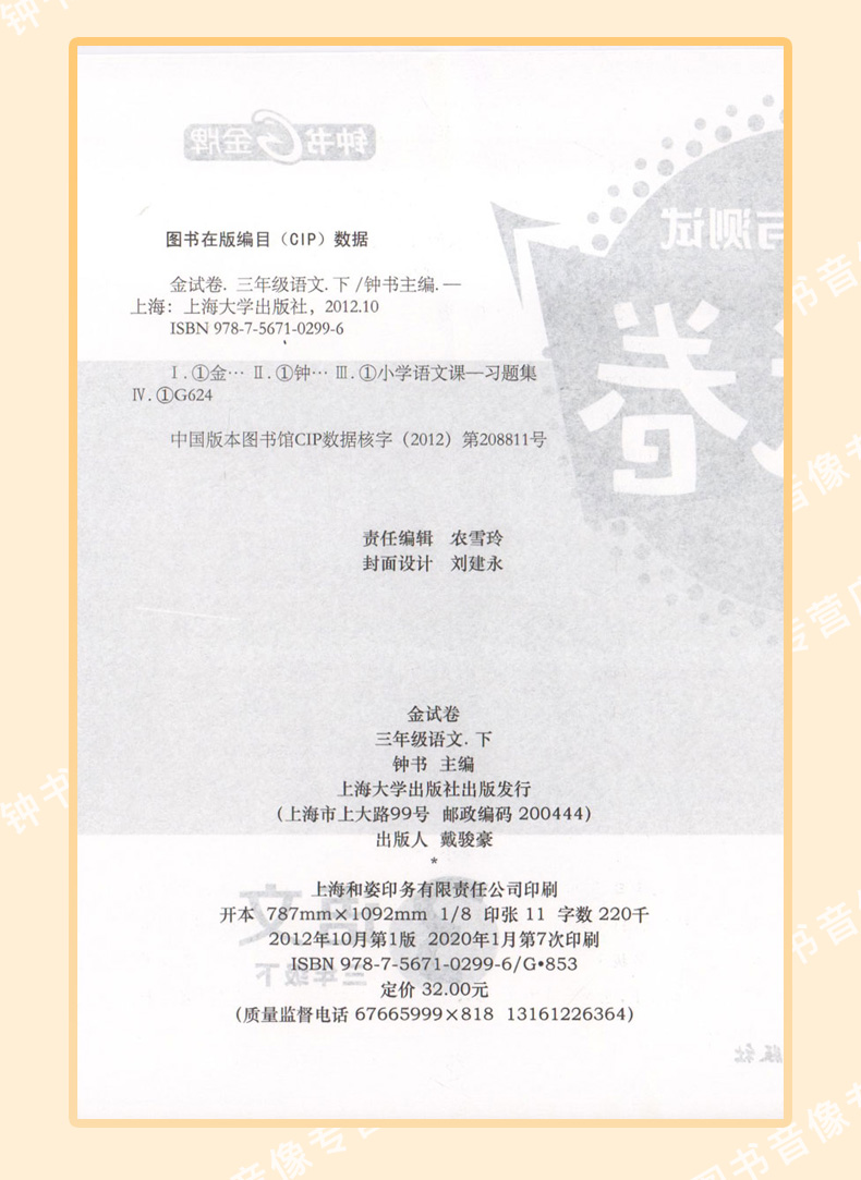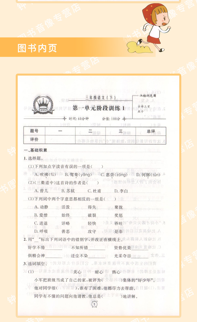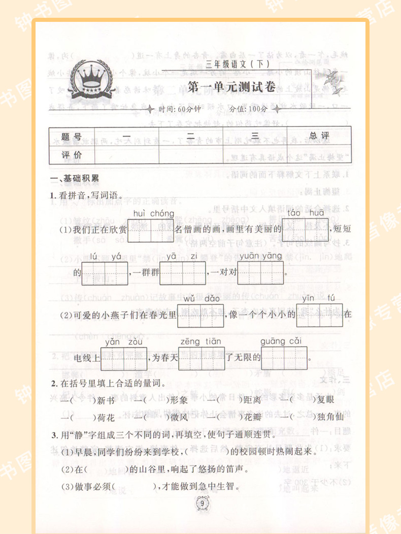 钟书金牌 部编版金试卷 语文 3年级下/三年级下 语文 第二学期 满分训练与测试 分层训练 单元检测易错专项期中期末卷课外练习卷