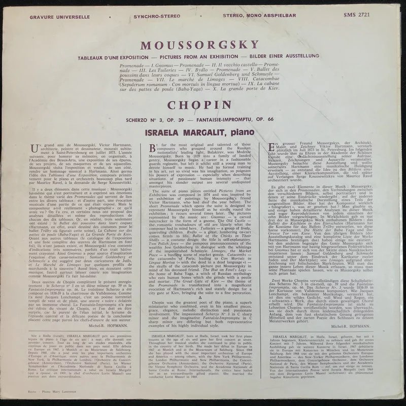 LP黑胶唱片 穆索尔斯基《图画展笔会》肖邦《升C小调第三谐谑曲》《幻想即兴曲》 钢琴:伊斯瑞拉·玛格丽特