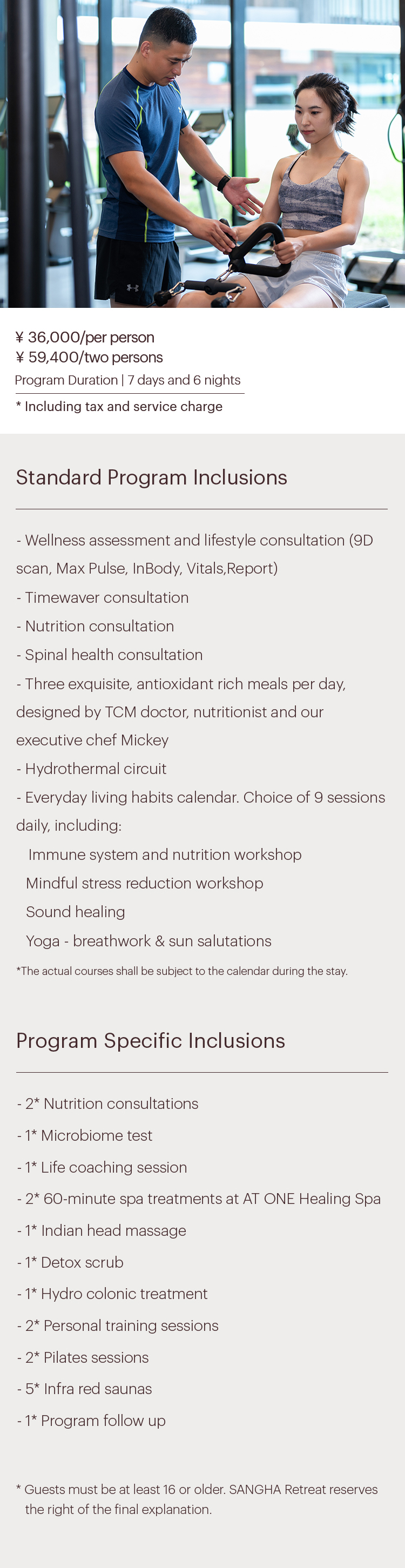 - Program components are subject to change upon the advice of SANGHA Retreat staff, including doctors and life coaches.