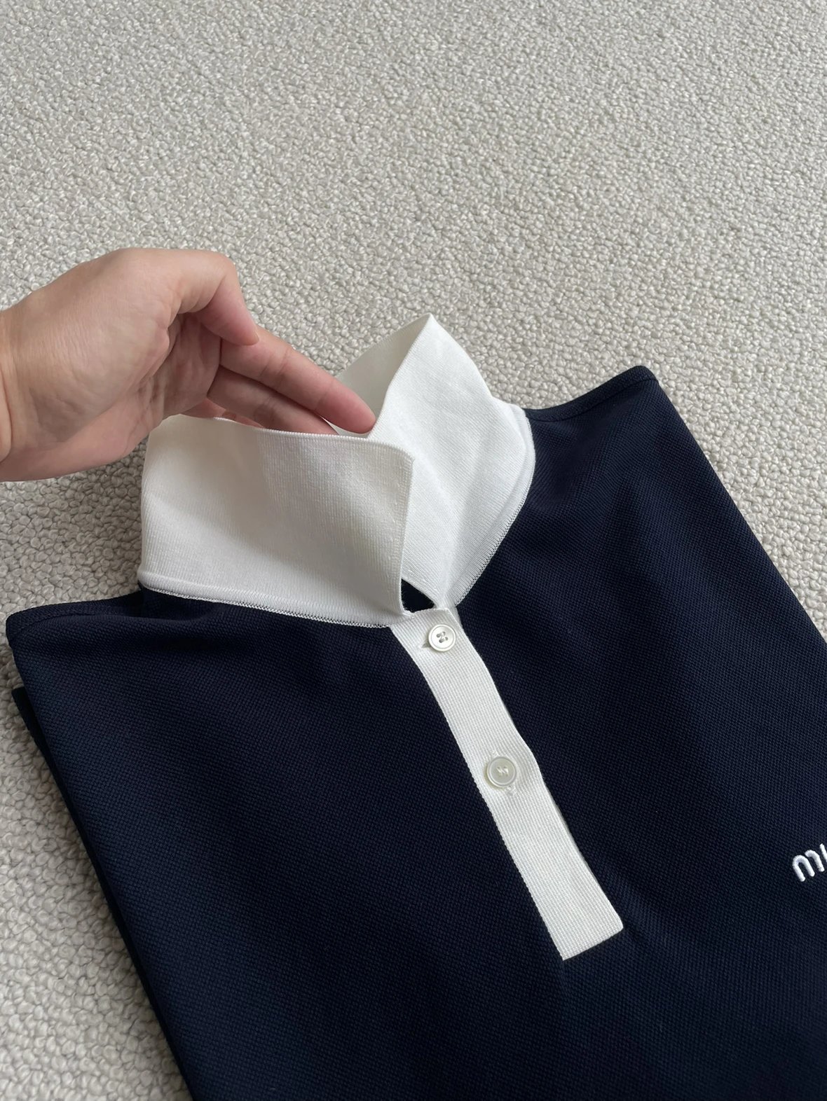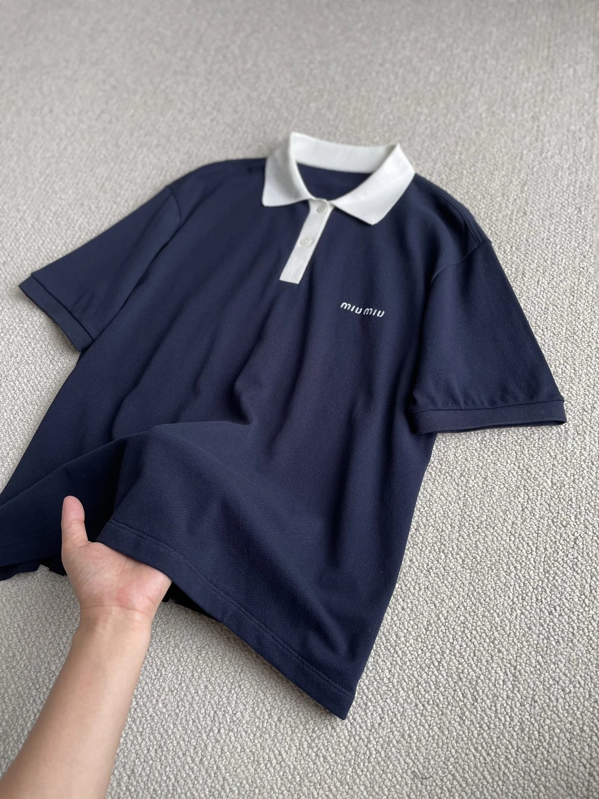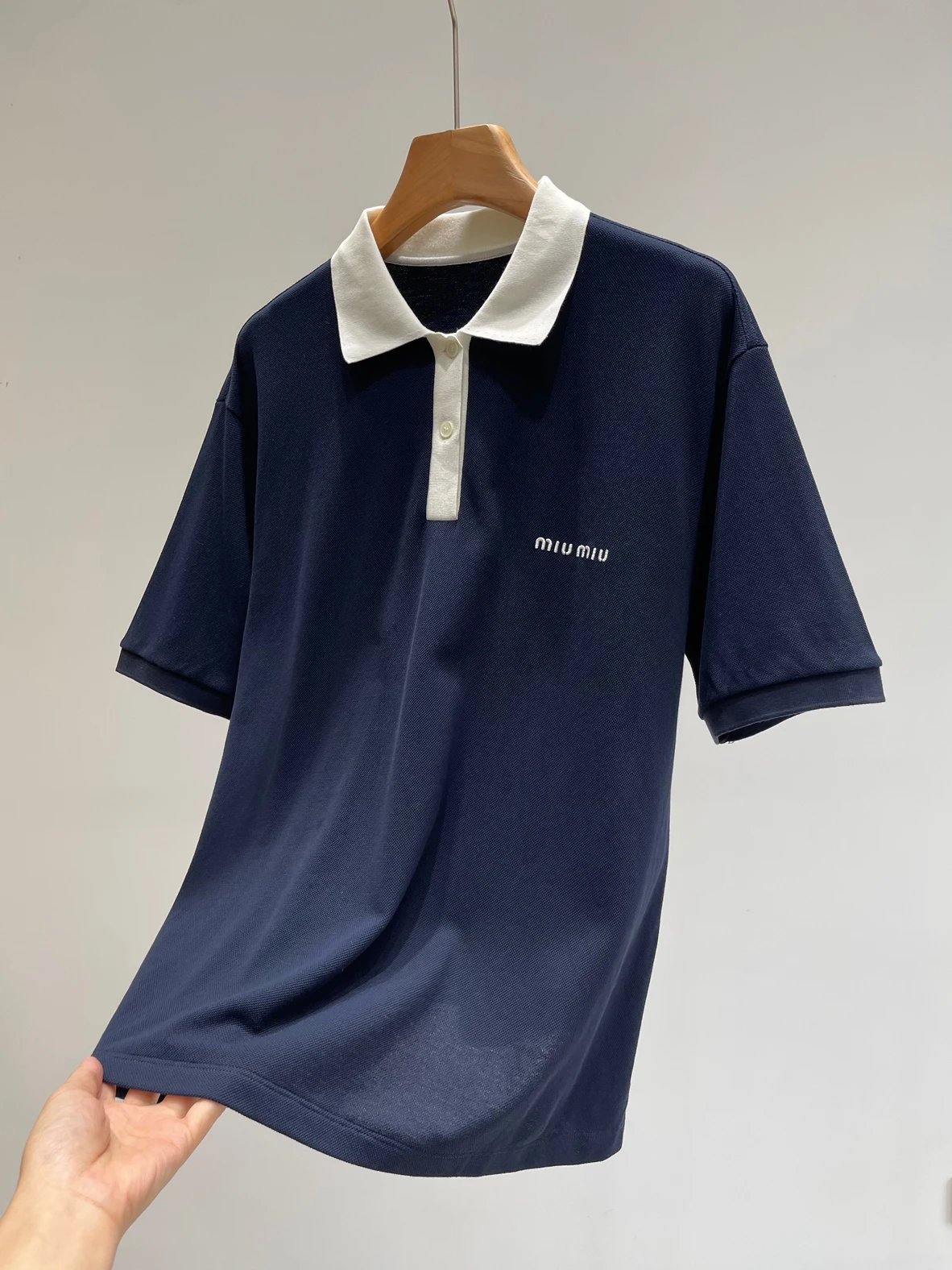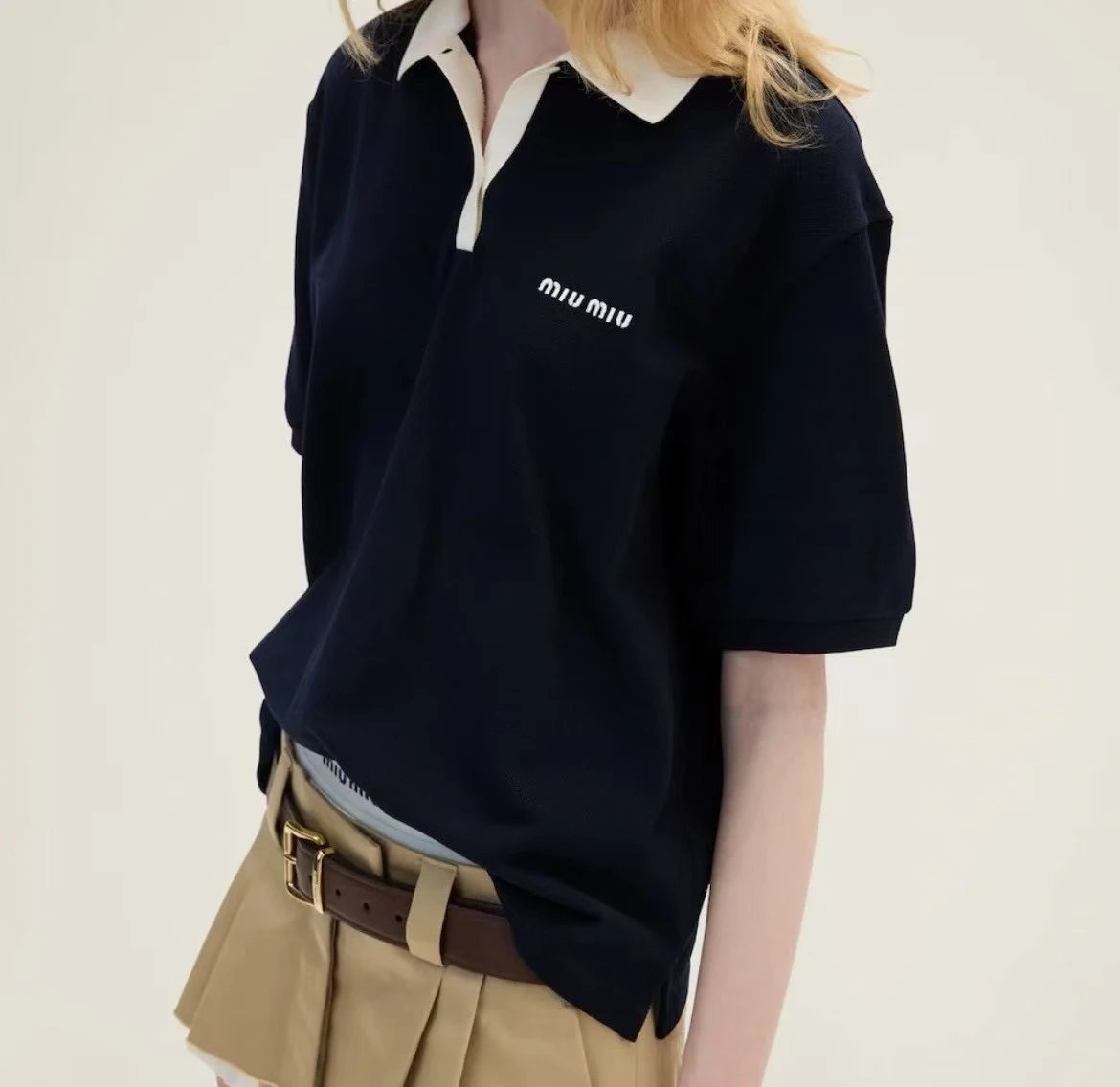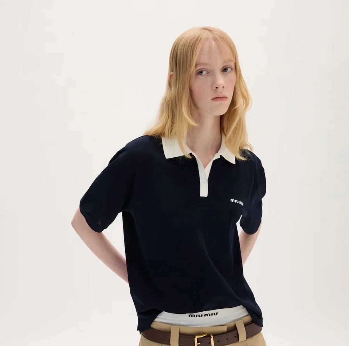 重磅渠道 miu撞色polo 翻领短袖 宽松廓形老钱学院风