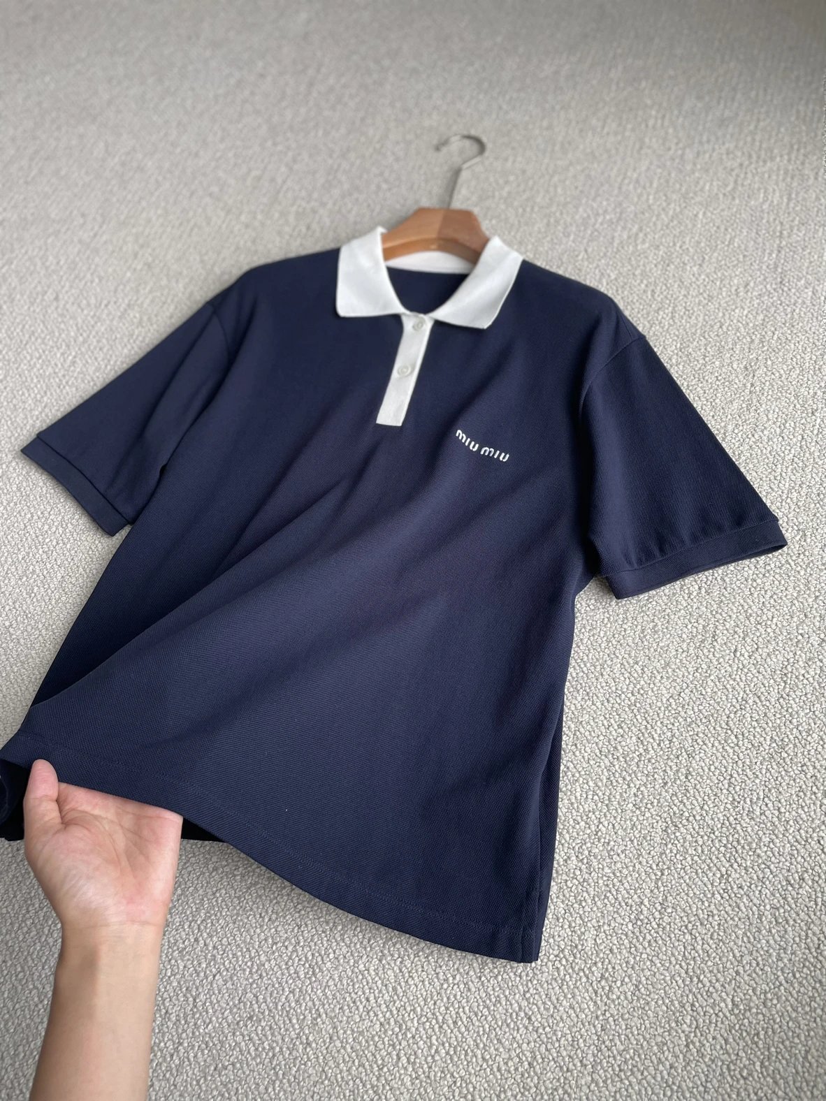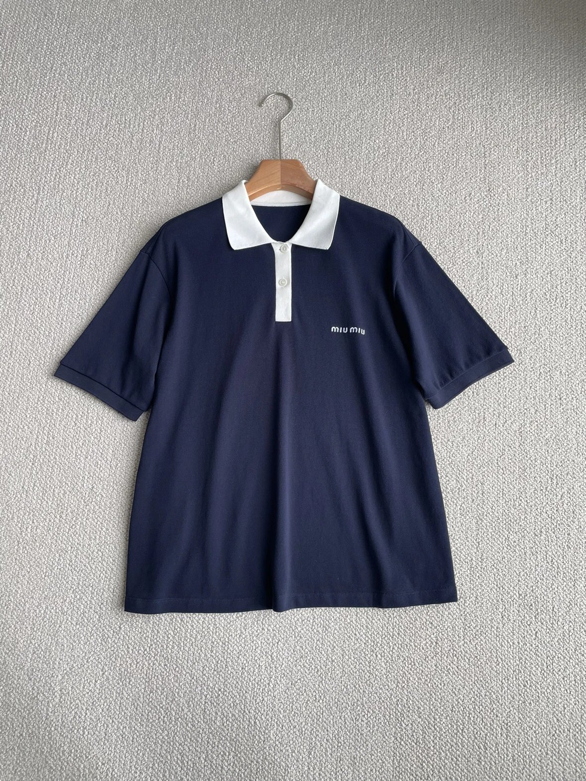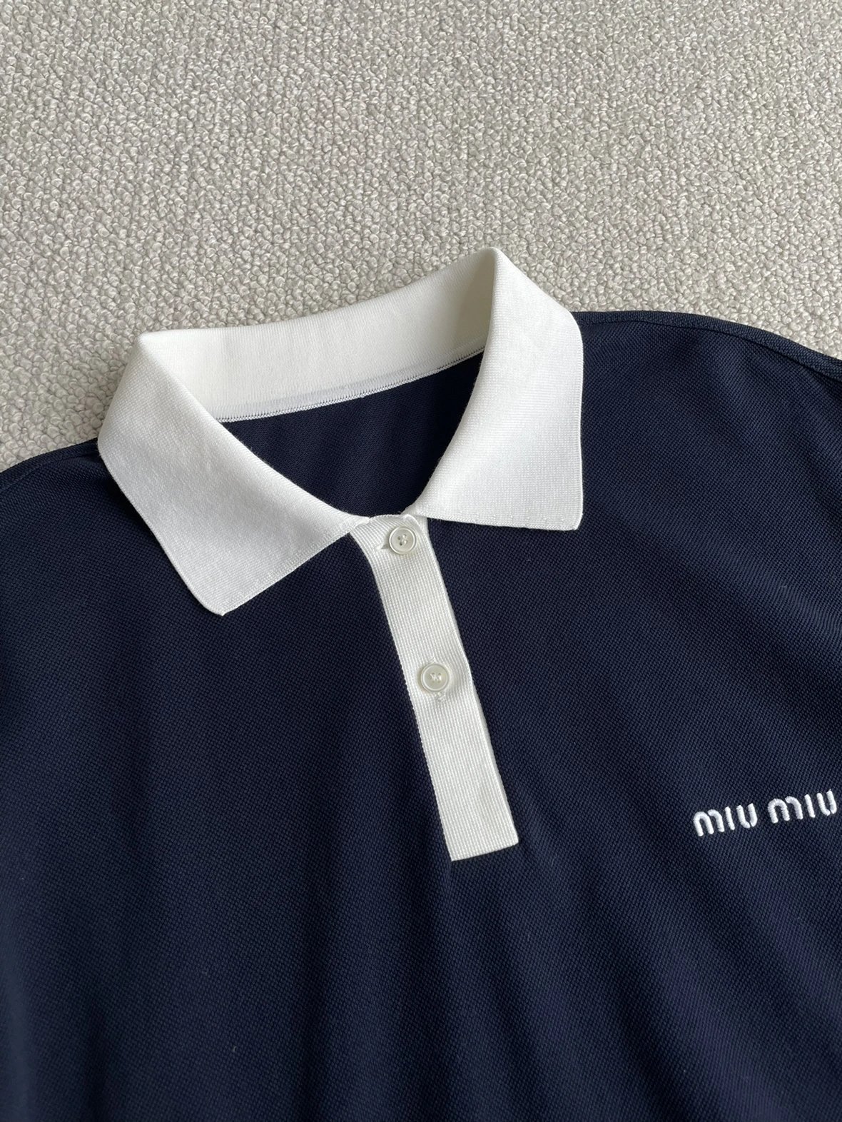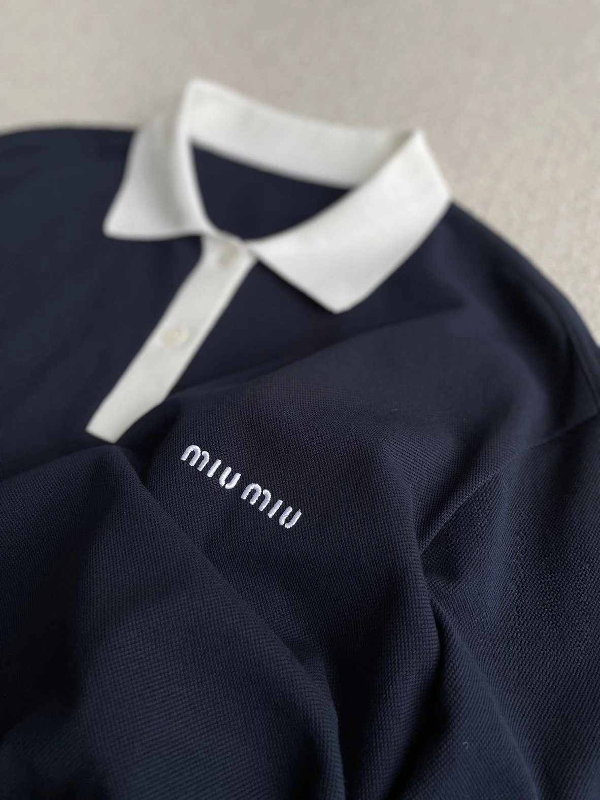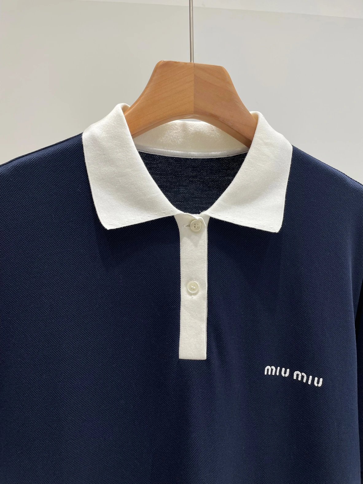 重磅渠道 miu撞色polo 翻领短袖 宽松廓形老钱学院风