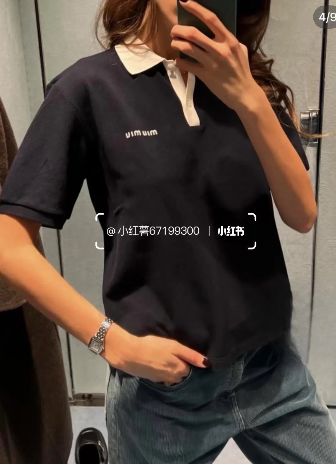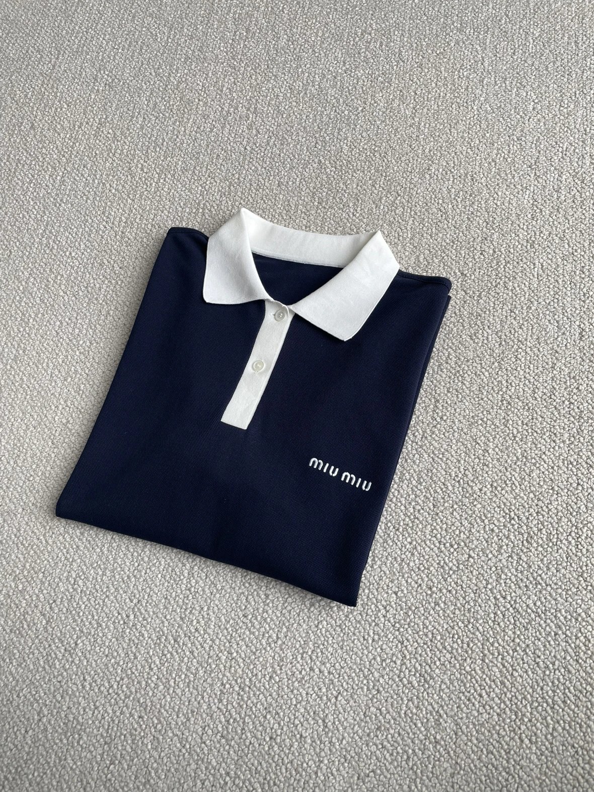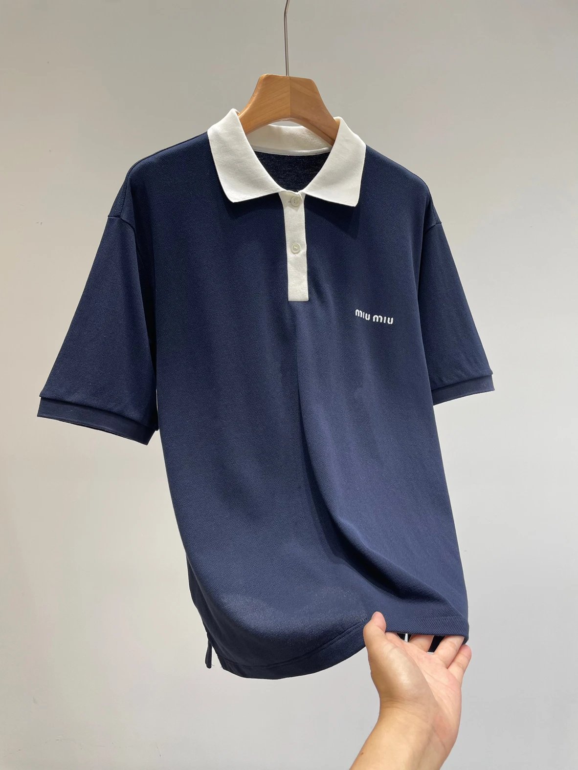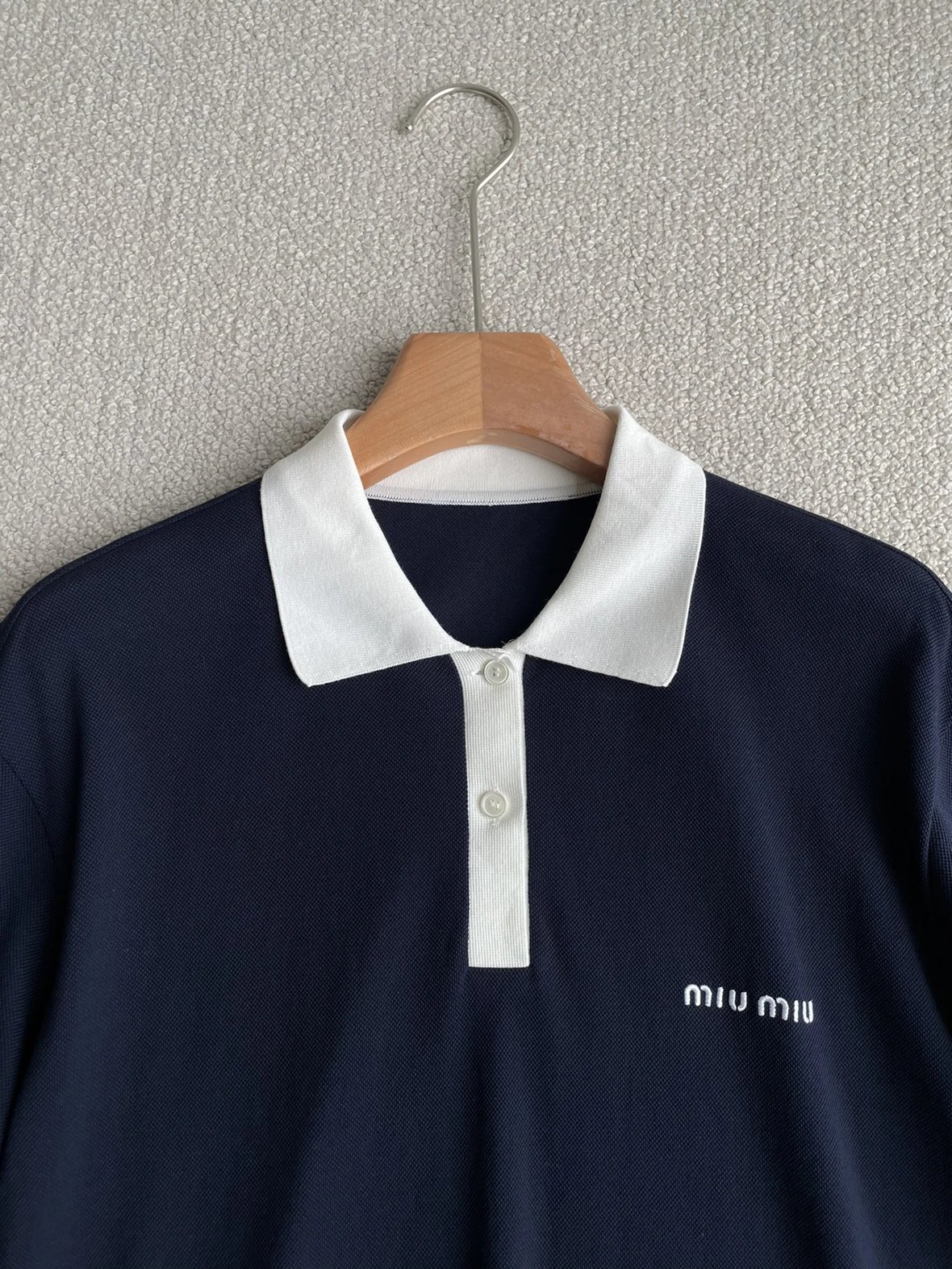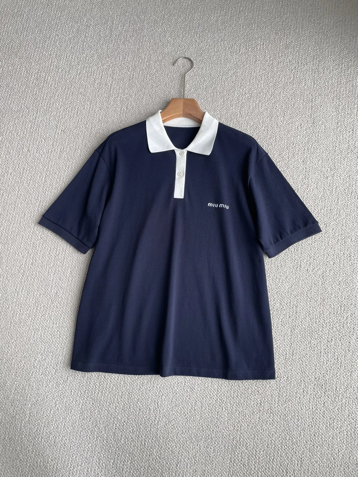 重磅渠道 miu撞色polo 翻领短袖 宽松廓形老钱学院风