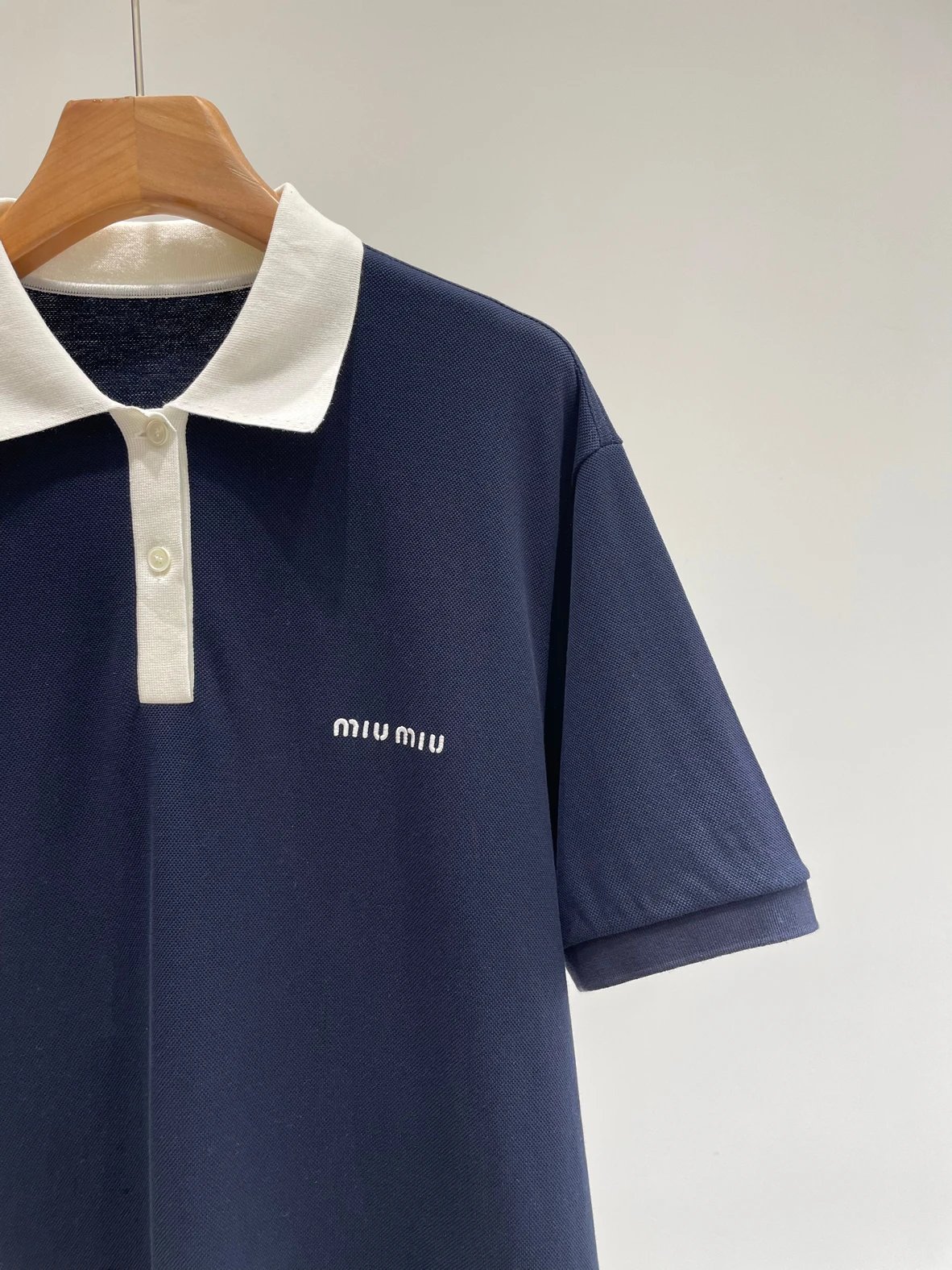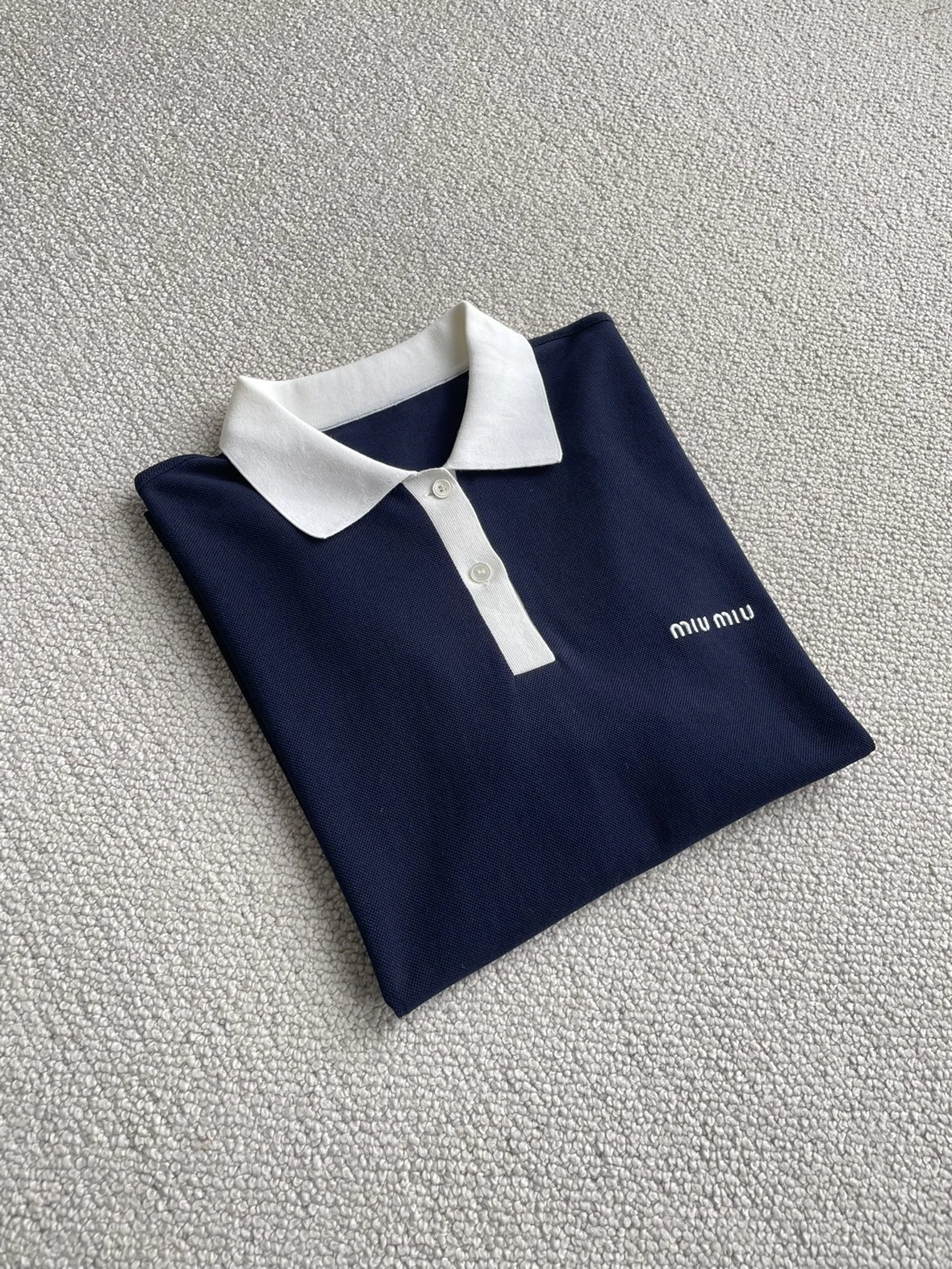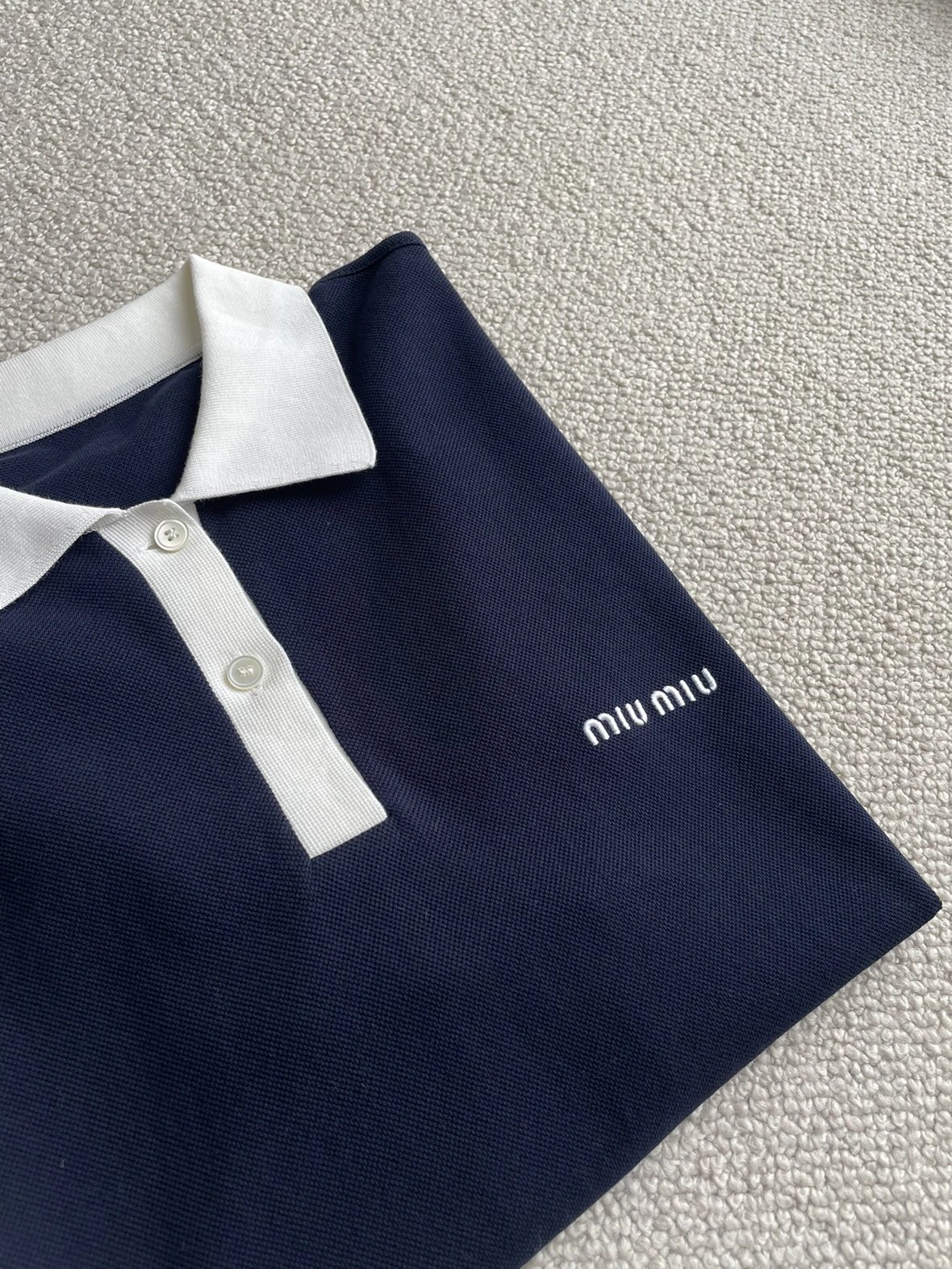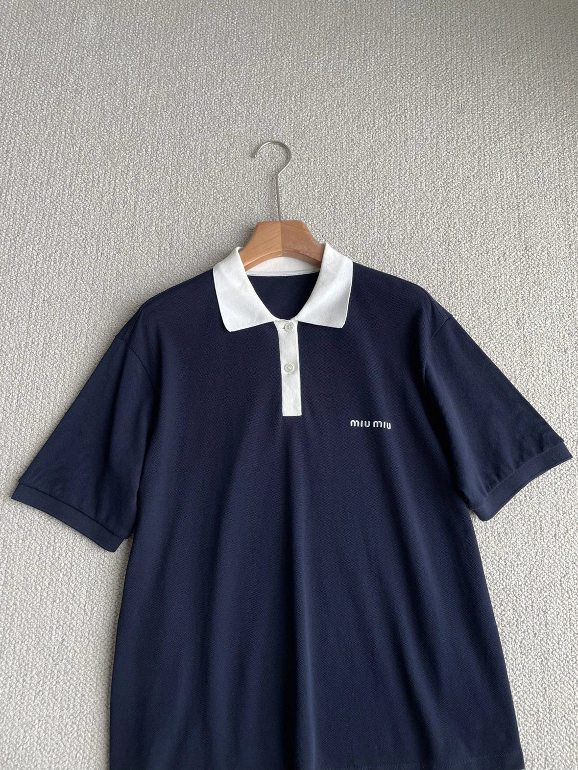 重磅渠道 miu撞色polo 翻领短袖 宽松廓形老钱学院风