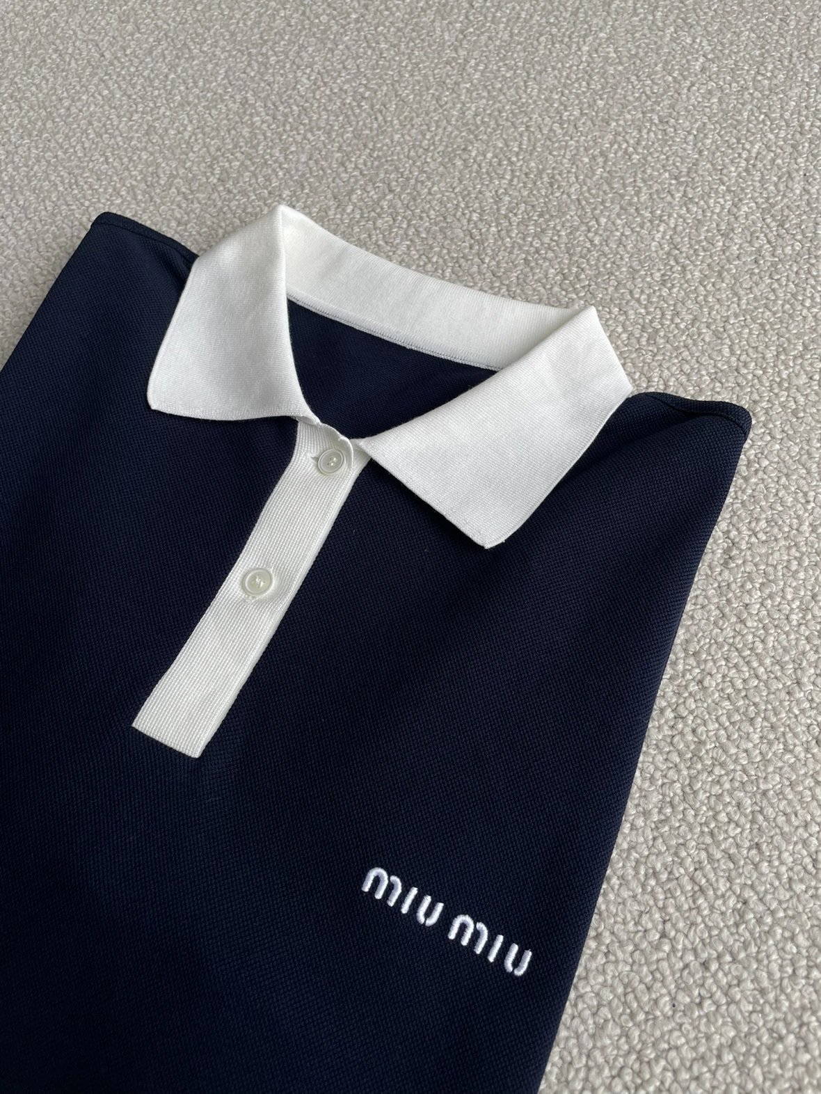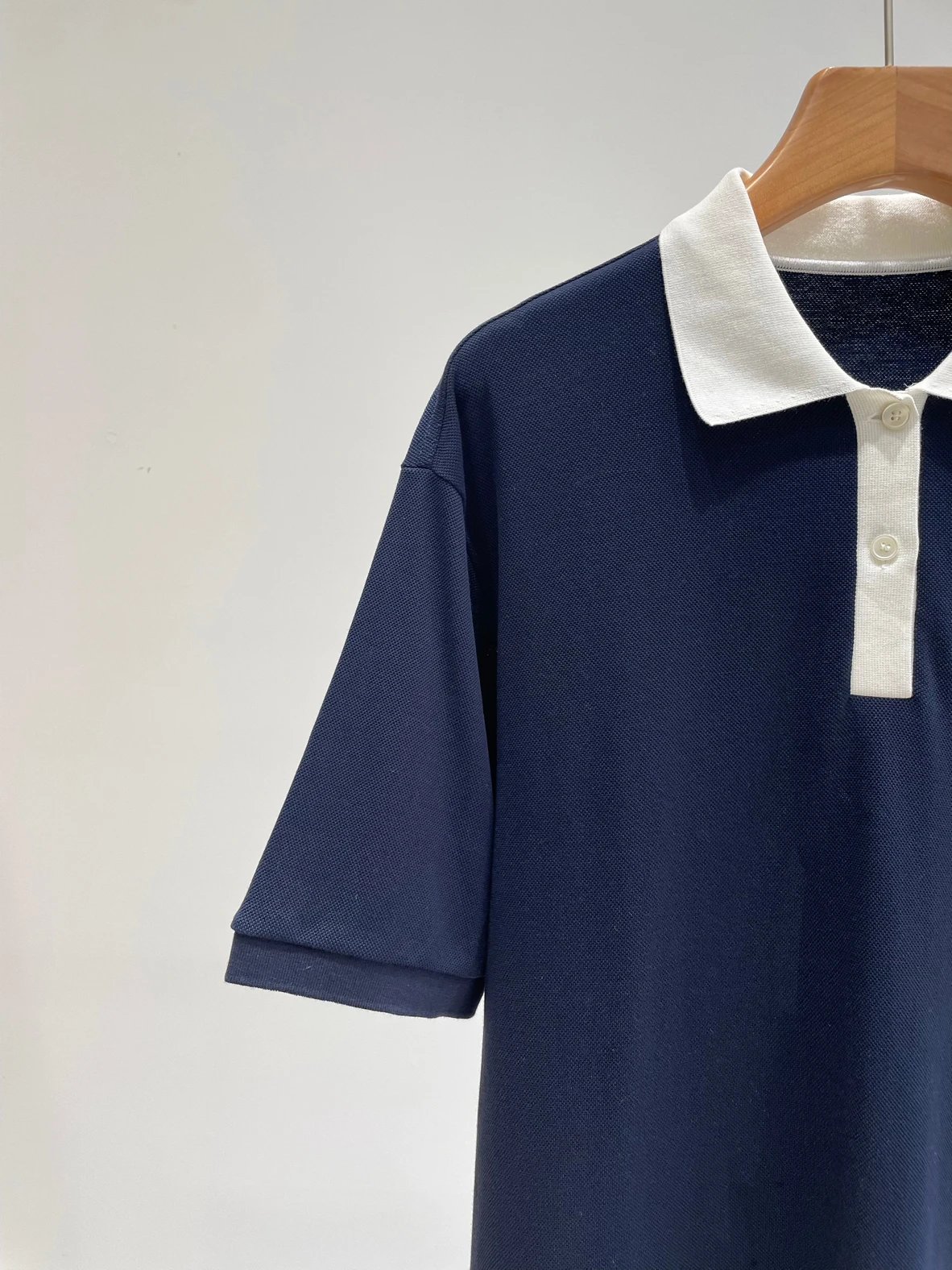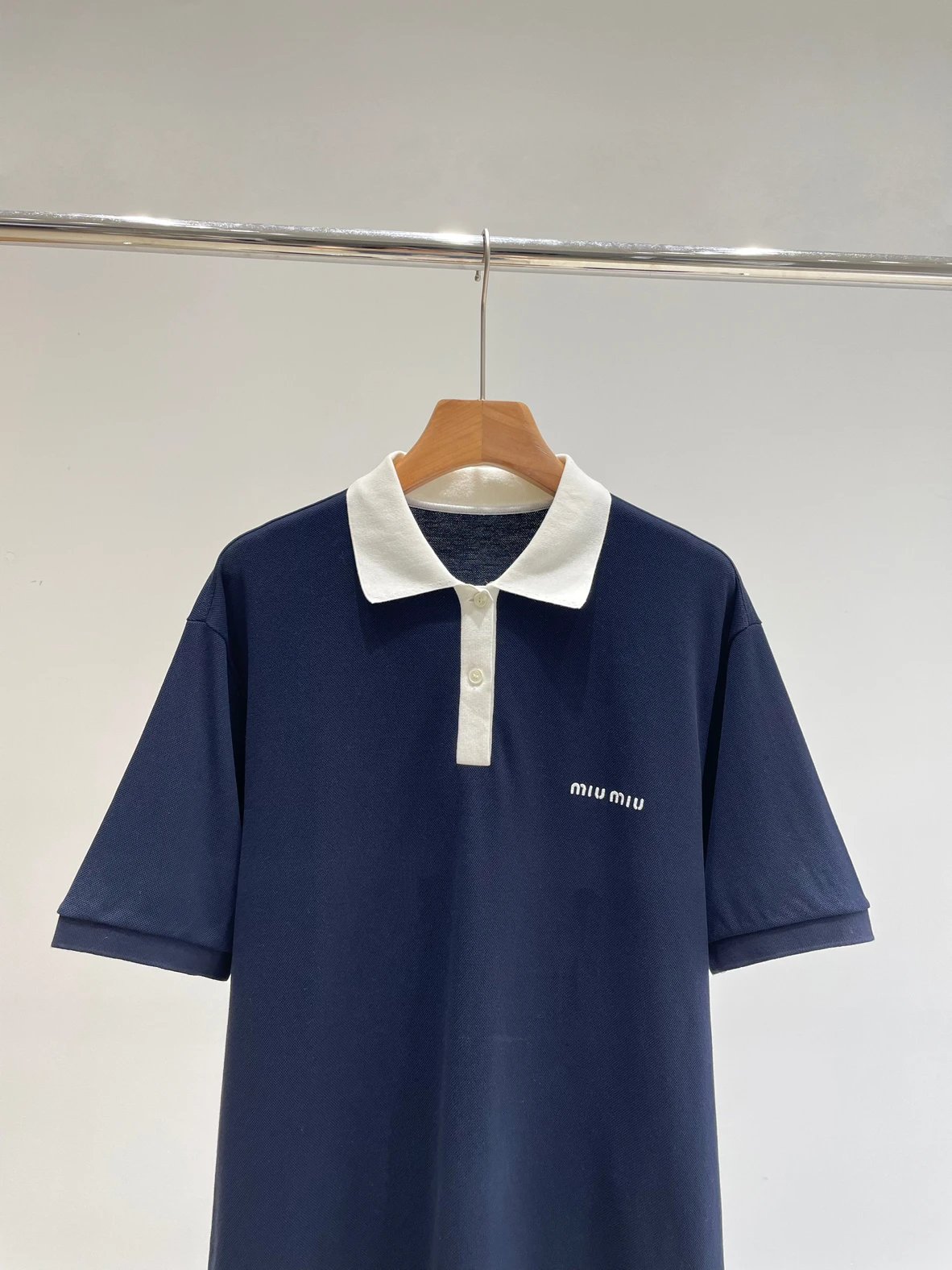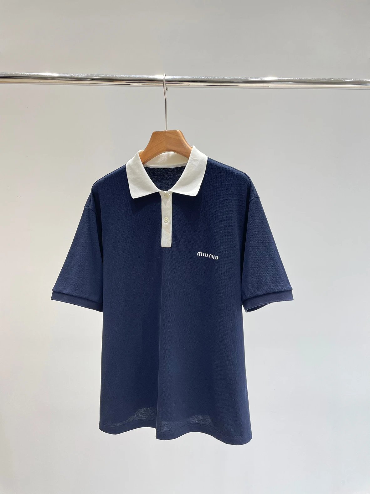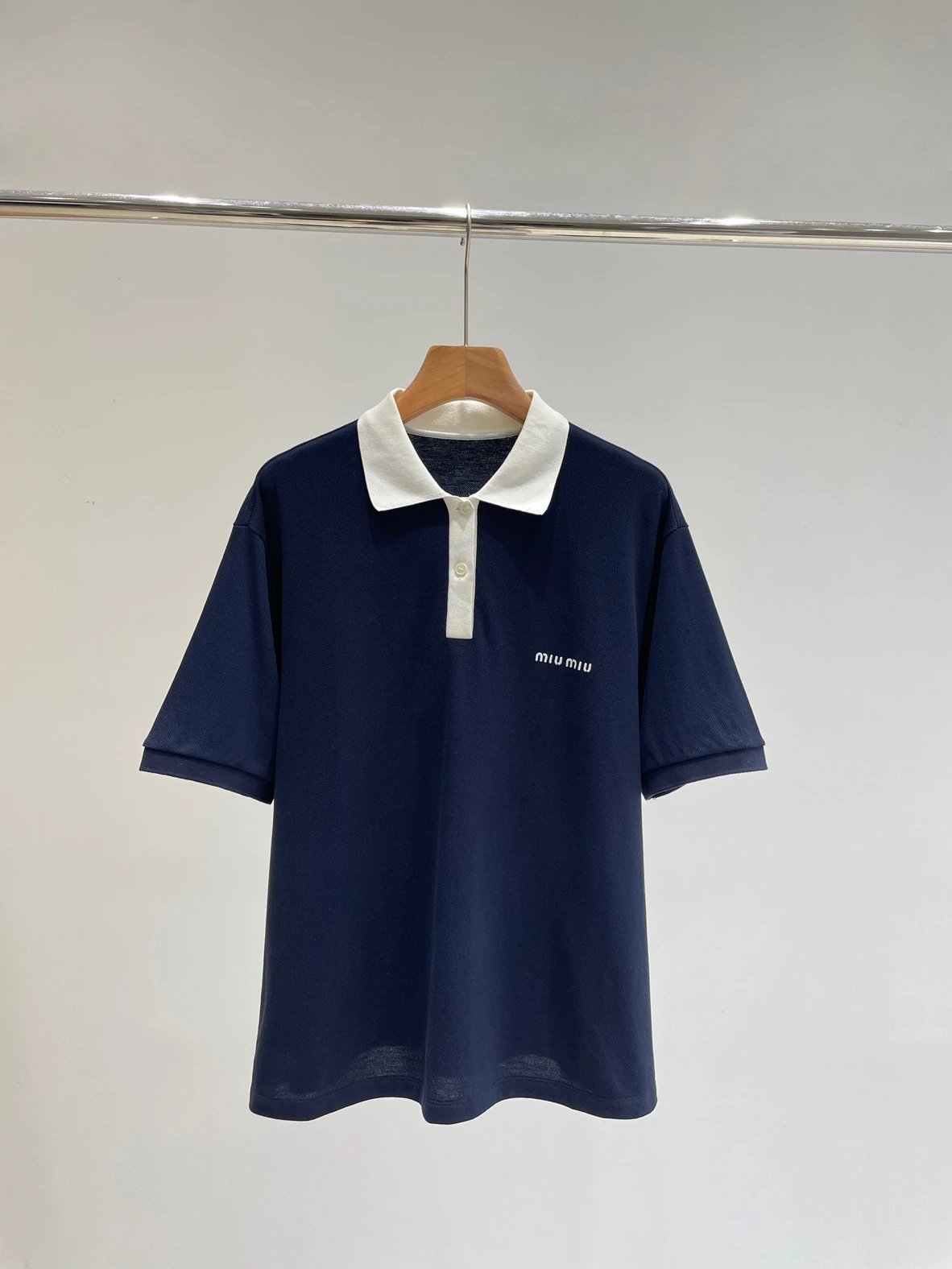 重磅渠道 miu撞色polo 翻领短袖 宽松廓形老钱学院风