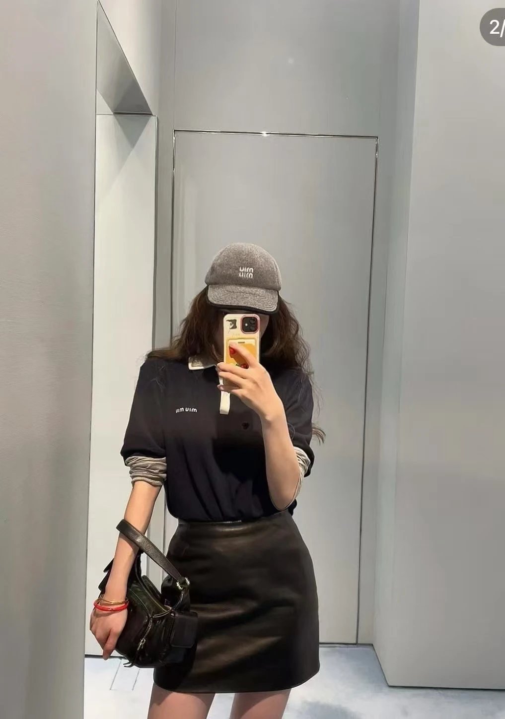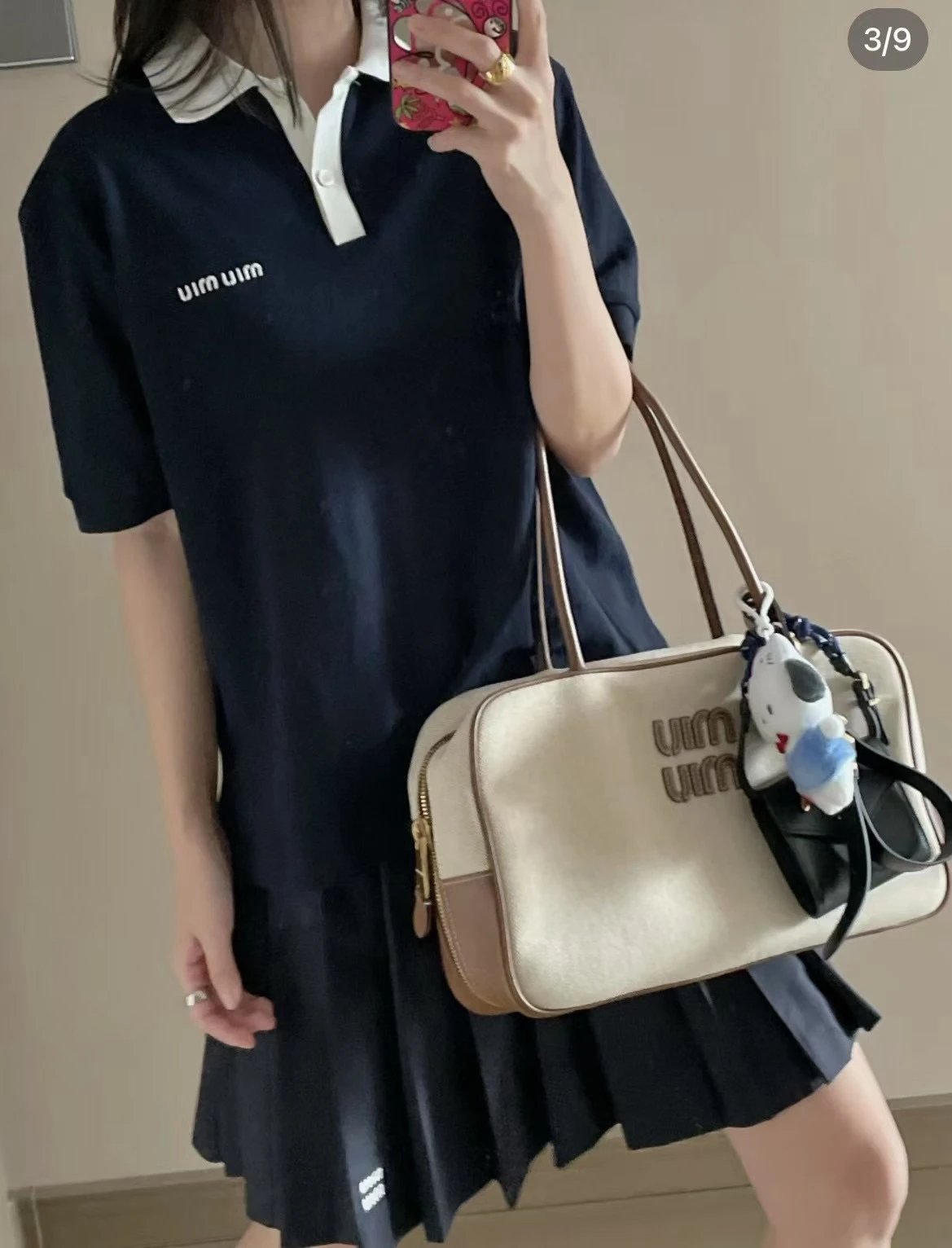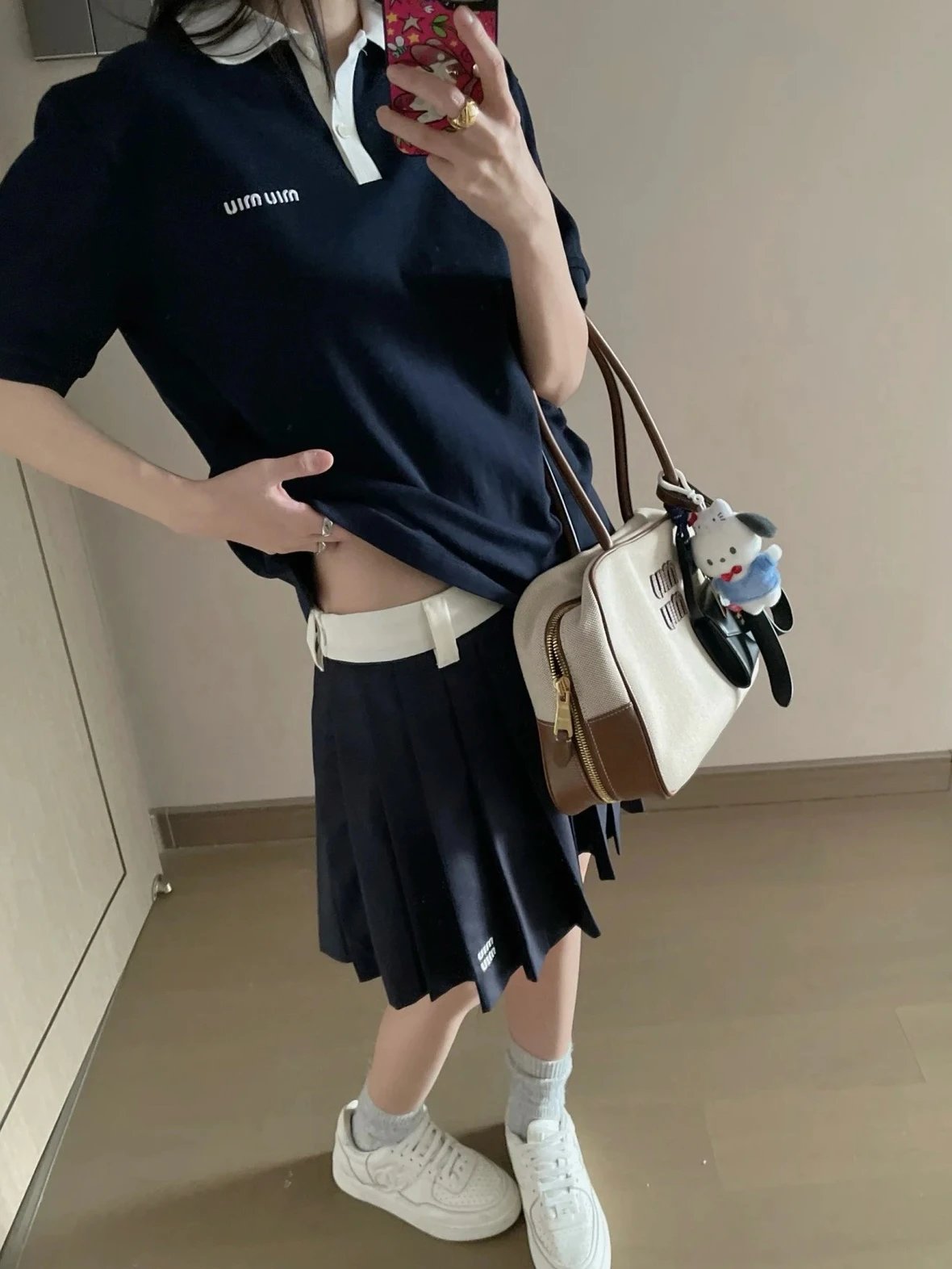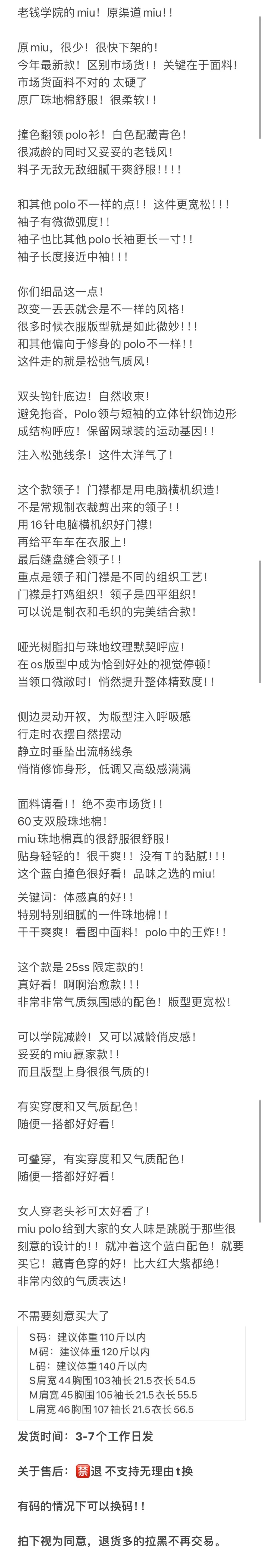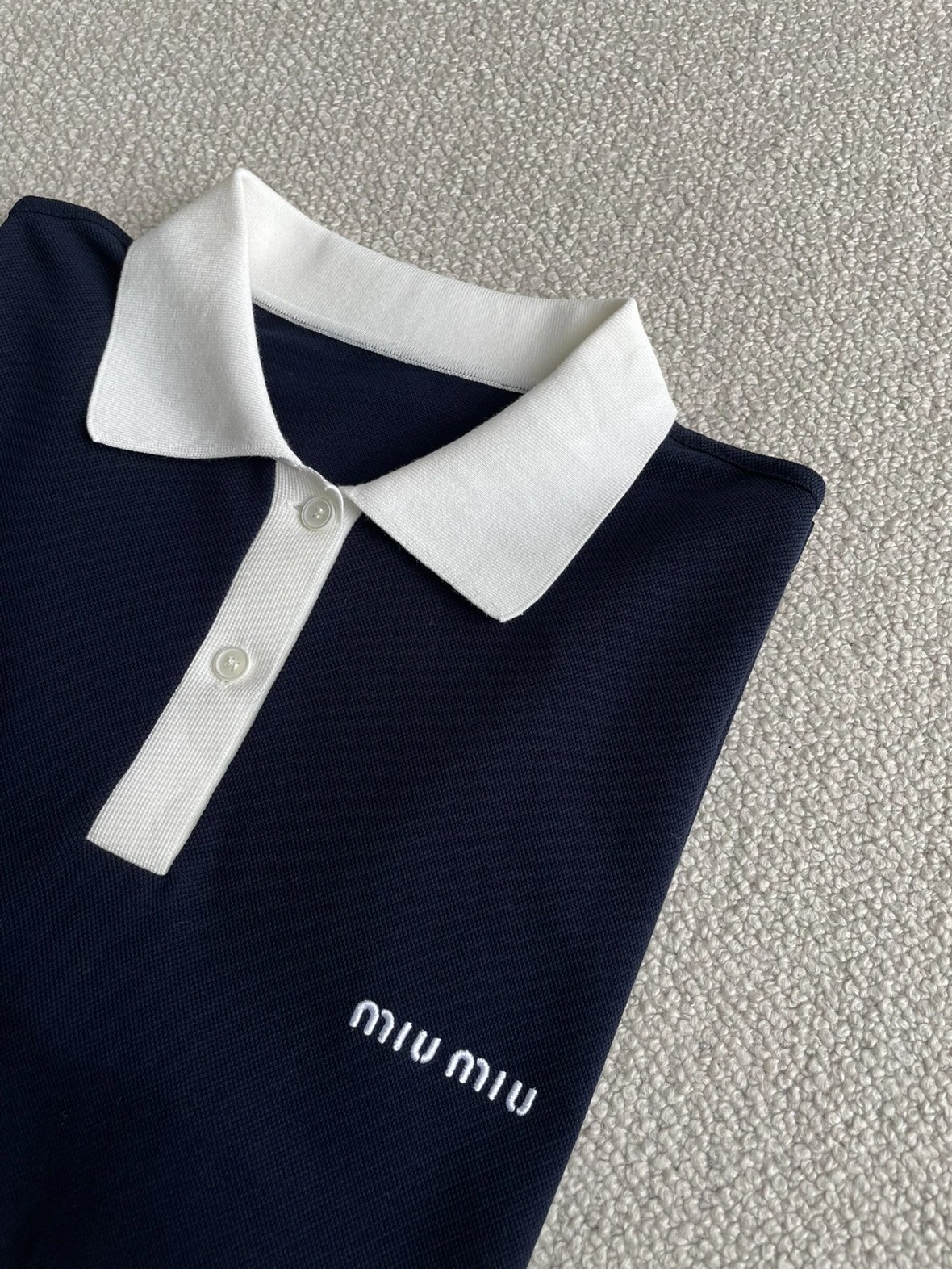 重磅渠道 miu撞色polo 翻领短袖 宽松廓形老钱学院风