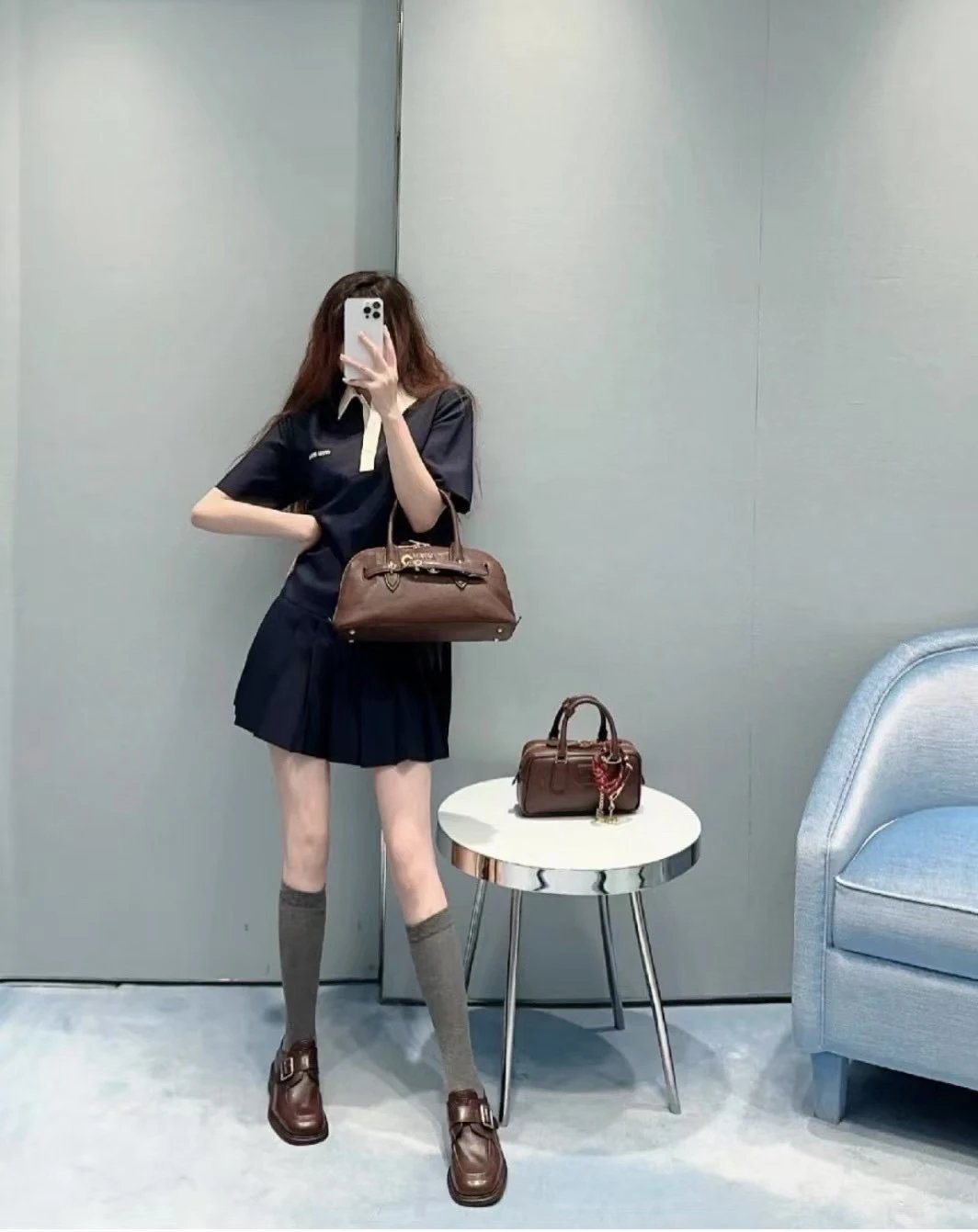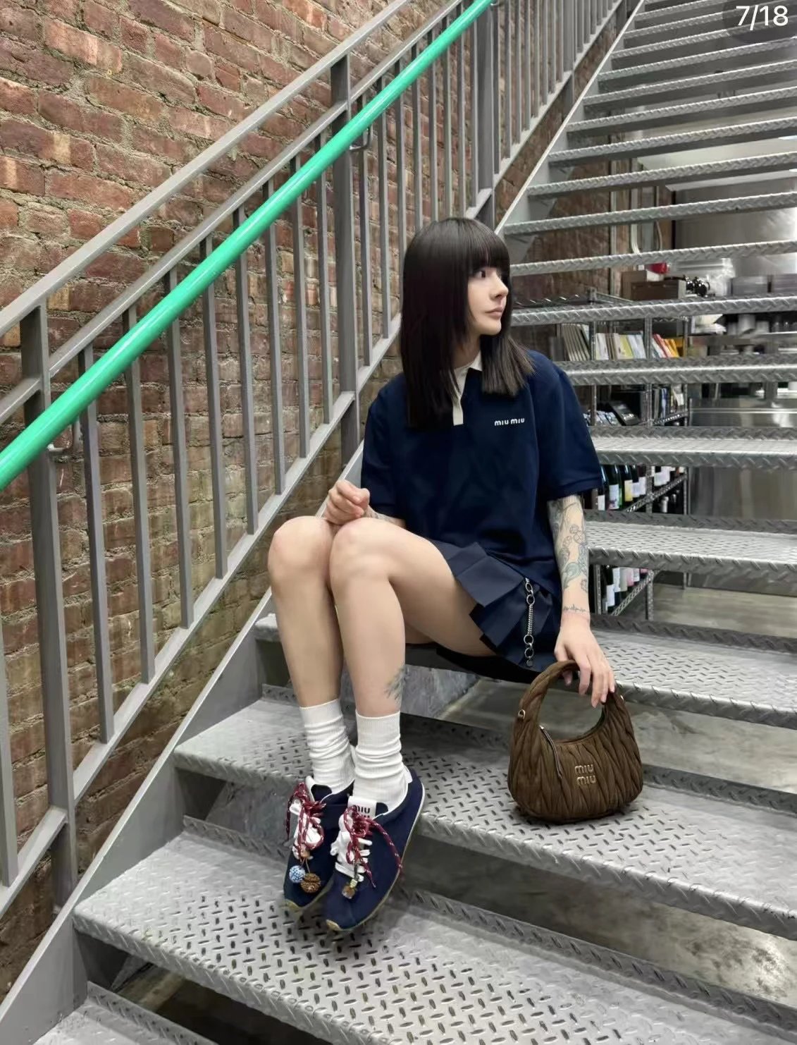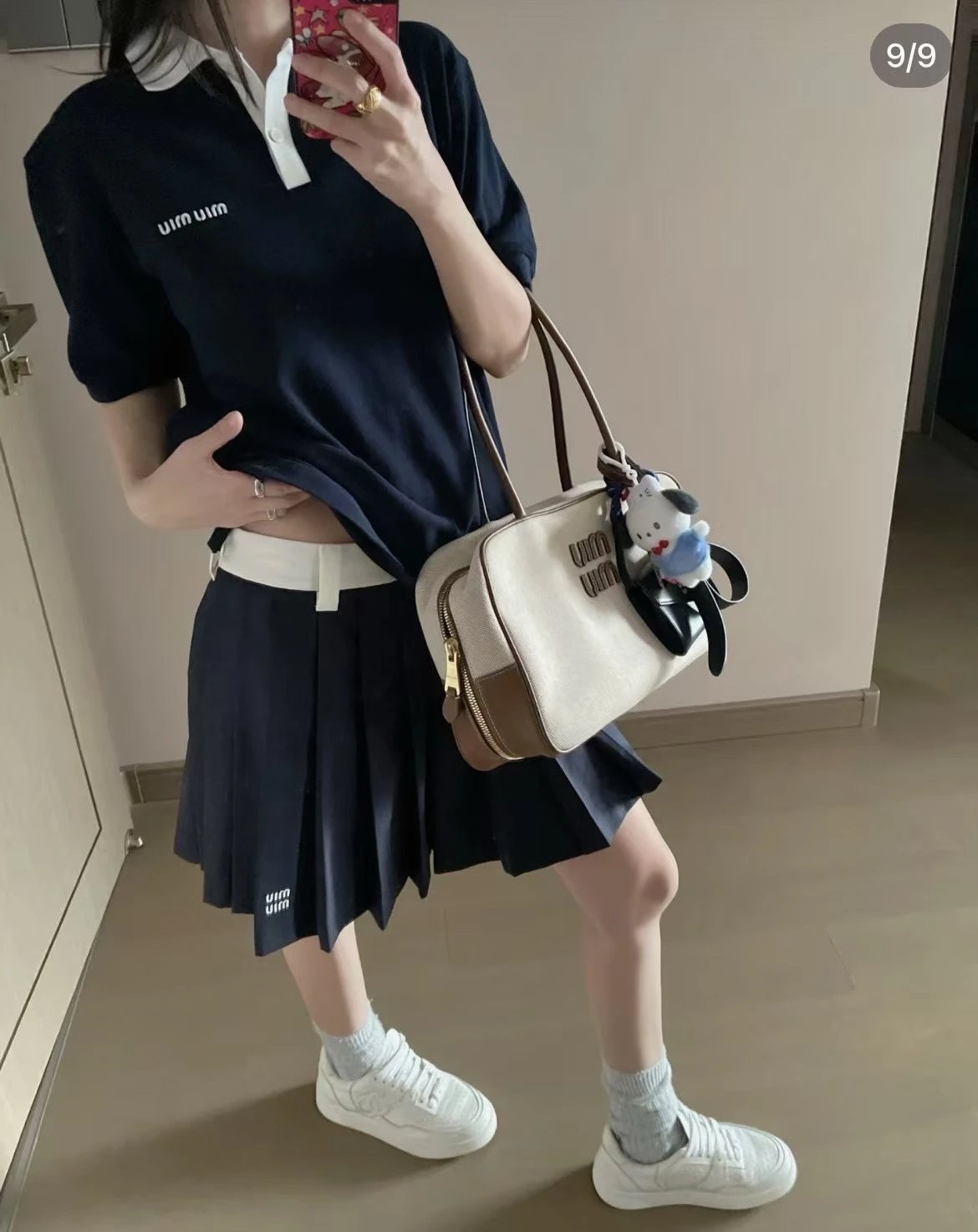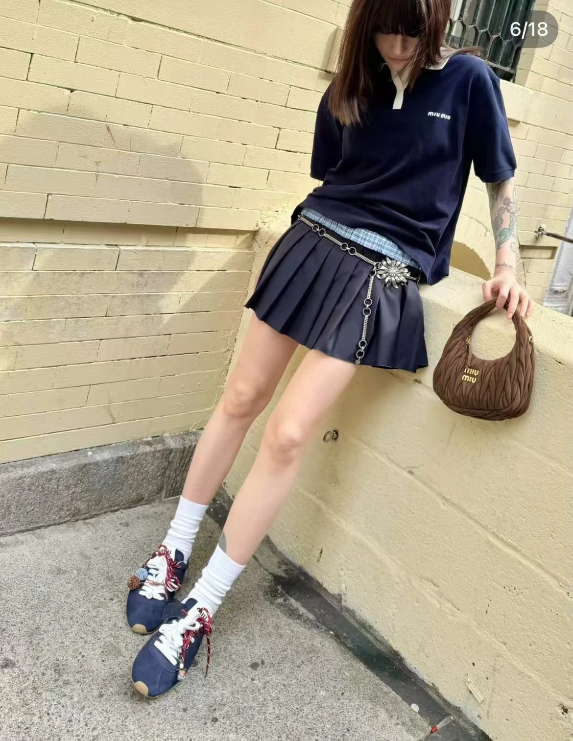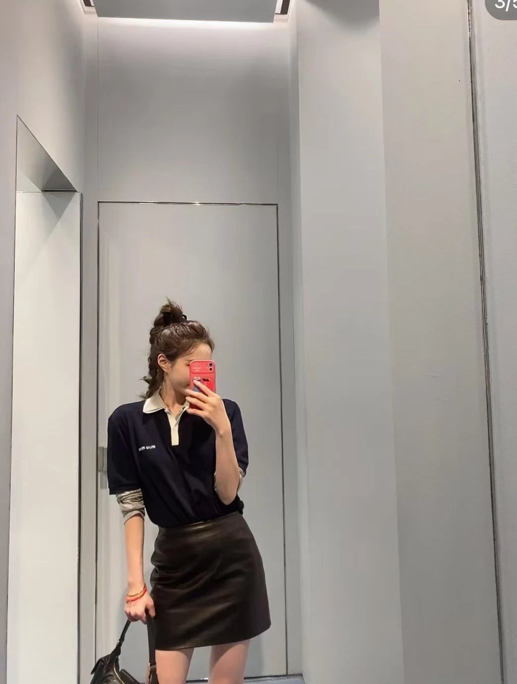 重磅渠道 miu撞色polo 翻领短袖 宽松廓形老钱学院风