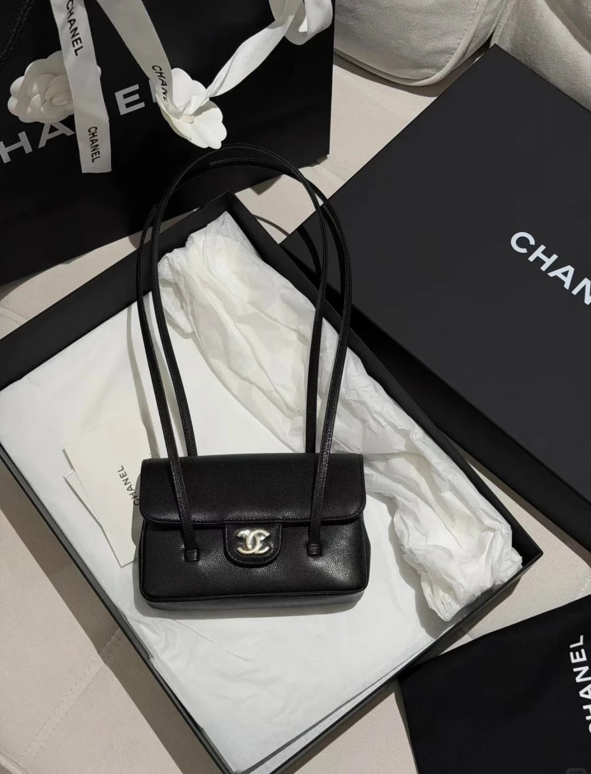 重磅渠道 preppy coco 鱼子酱长肩带口盖包 Jennie同款手提腋下包