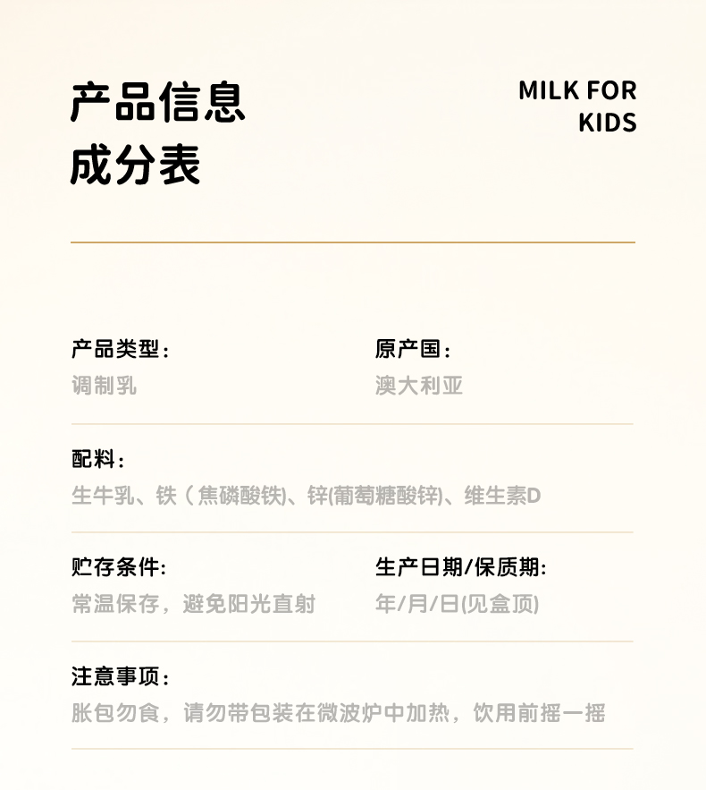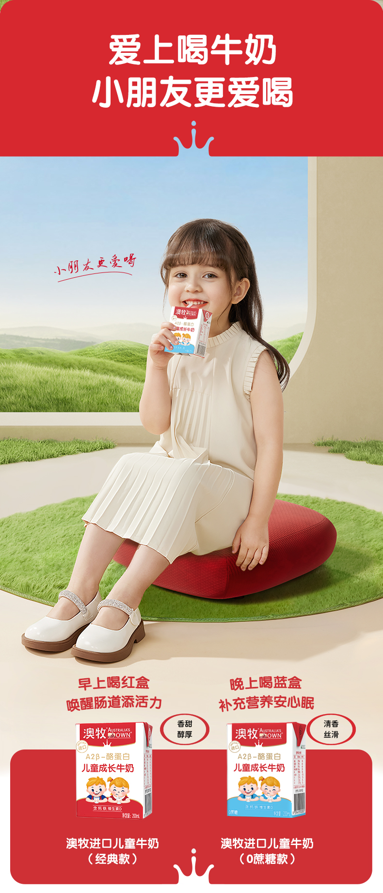 15盒装 澳牧(Australia's Own)A2-β酪蛋白儿童成长牛奶(0蔗糖) 200ml*15盒