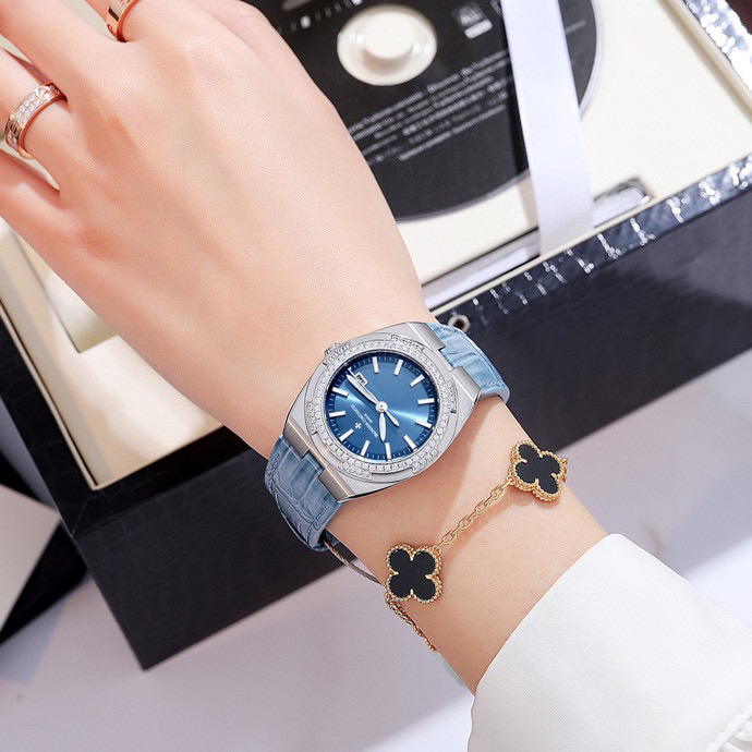 腕表宛如一潭清澈的湖水一般,十分美观,时针’分针带有白色夜光涂层,在较暗的环境下也可以阅读时间,精钢表壳瑞士打磨工艺处理,线条流畅质感细腻,手感较为舒适。