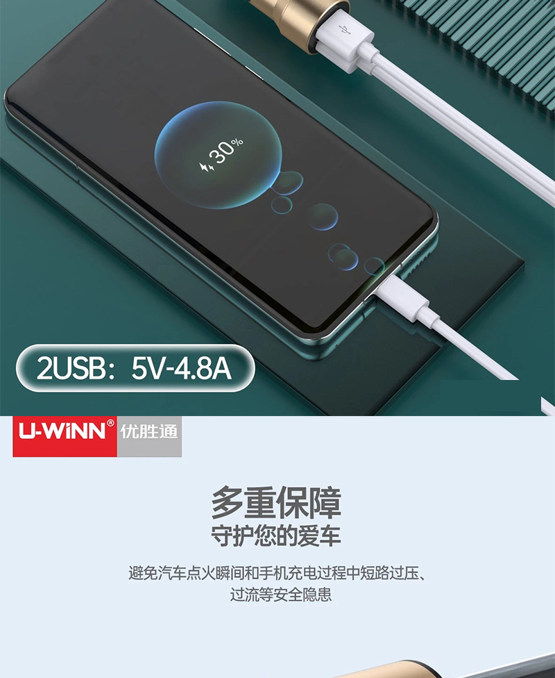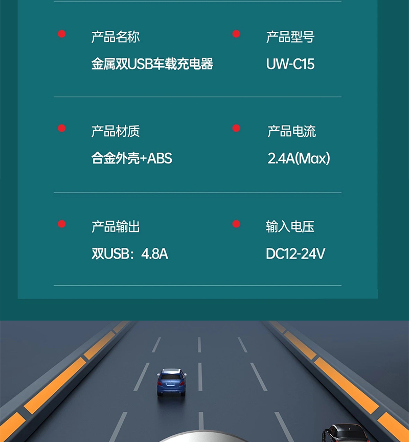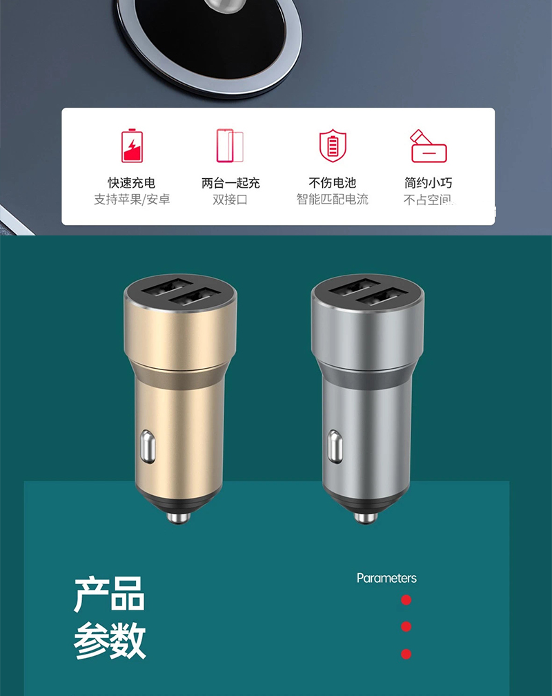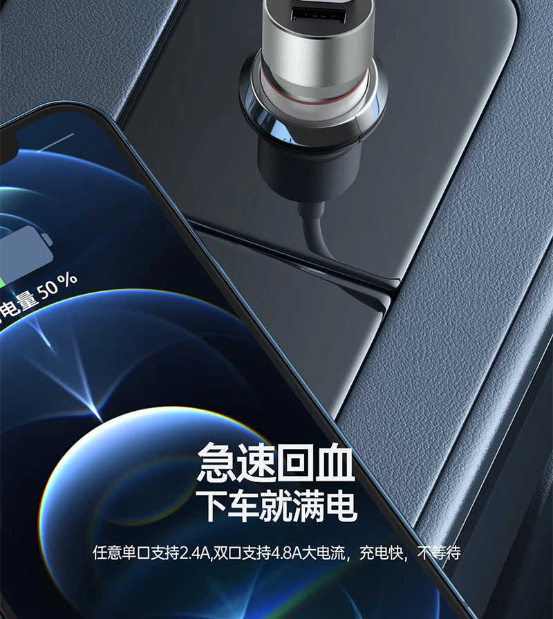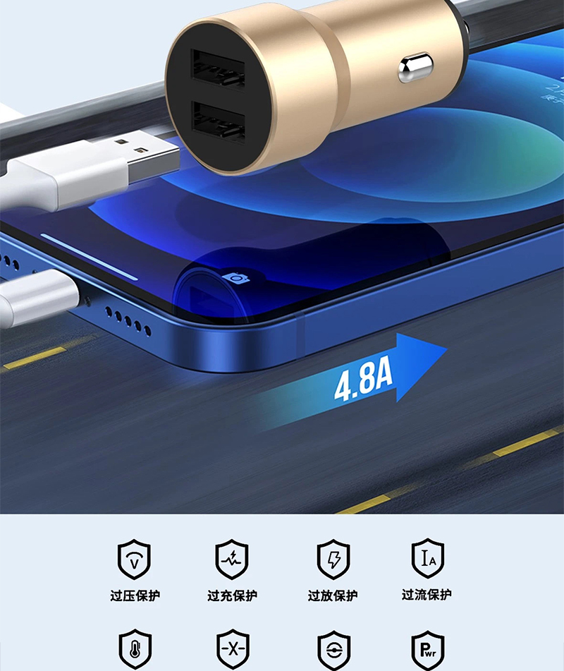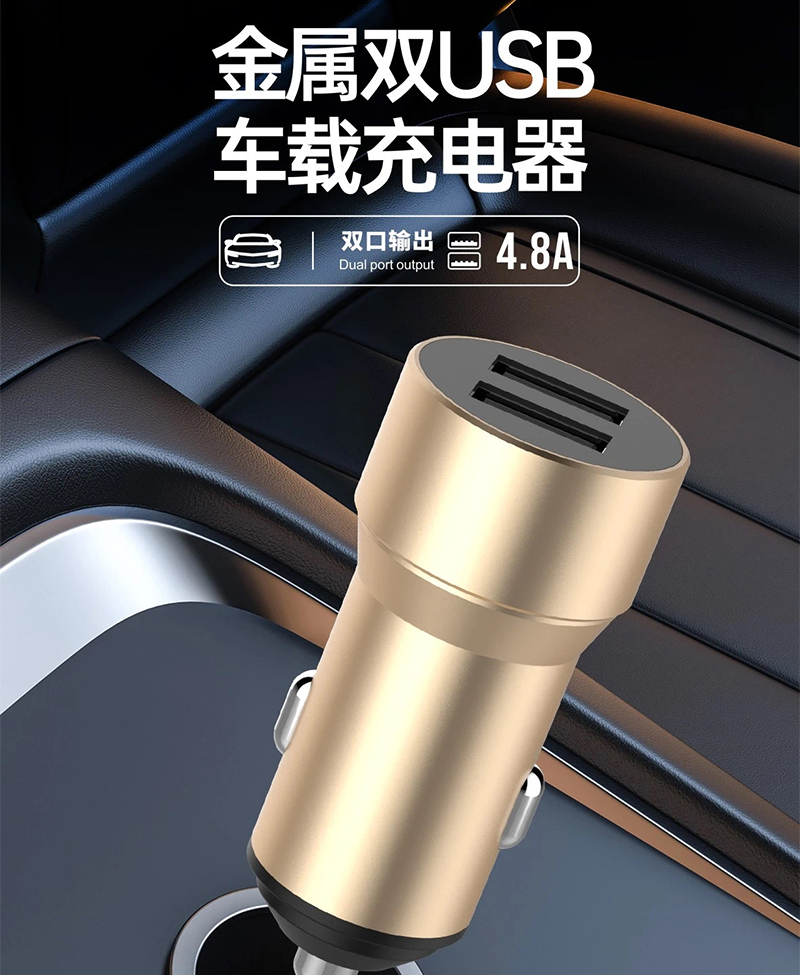 4.8A双USB车载车充充电器 适用于OPPO VIVO 华为手机车载车充