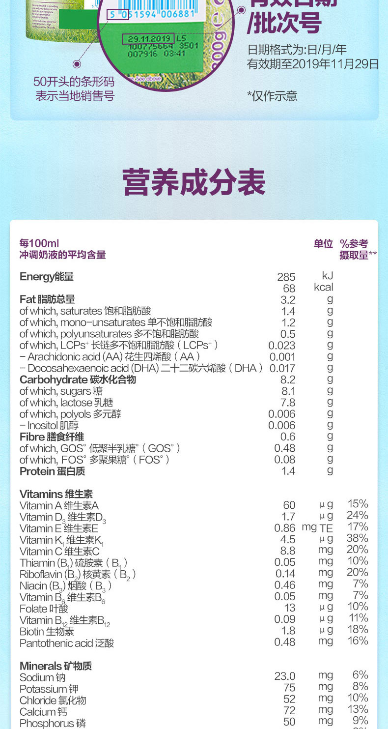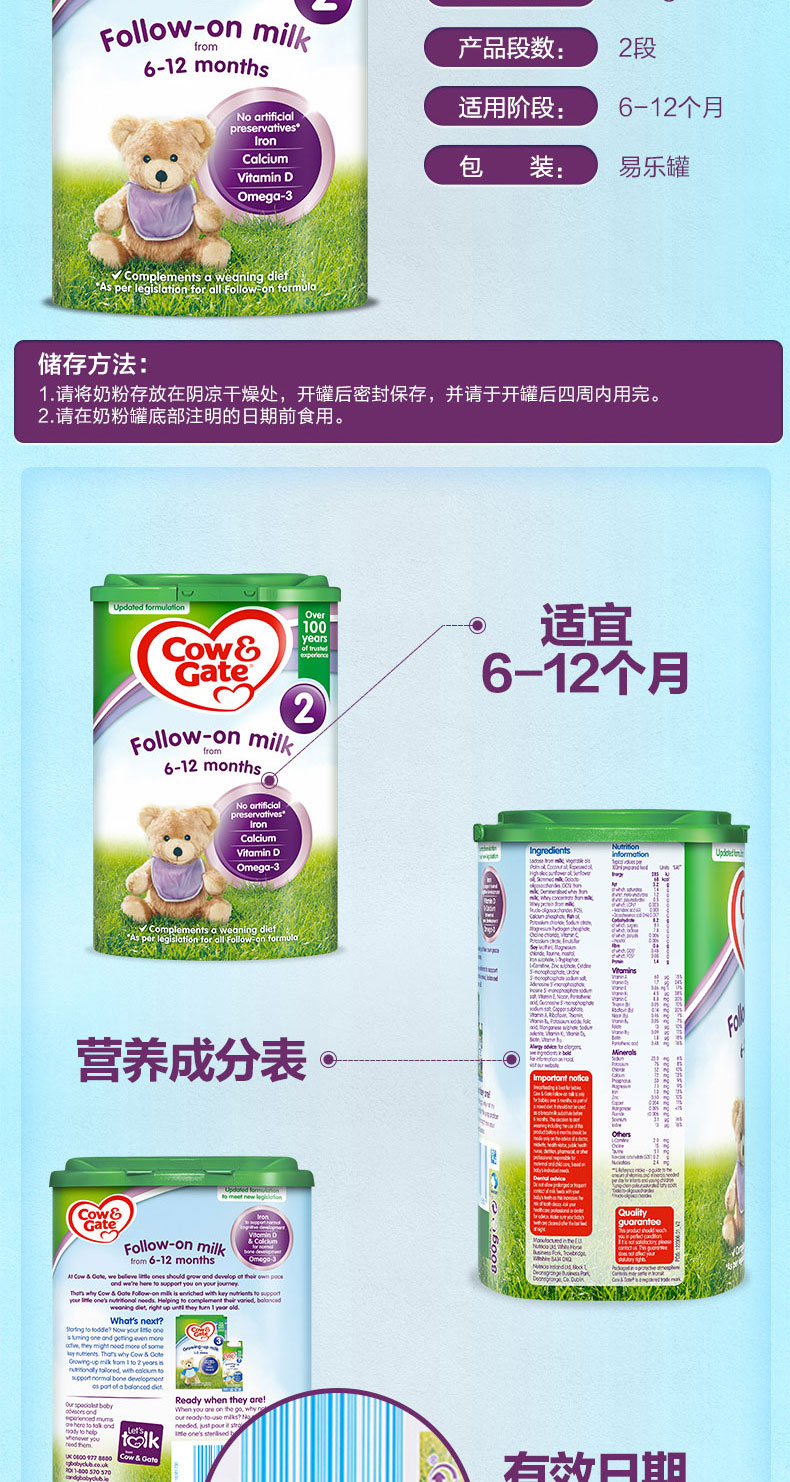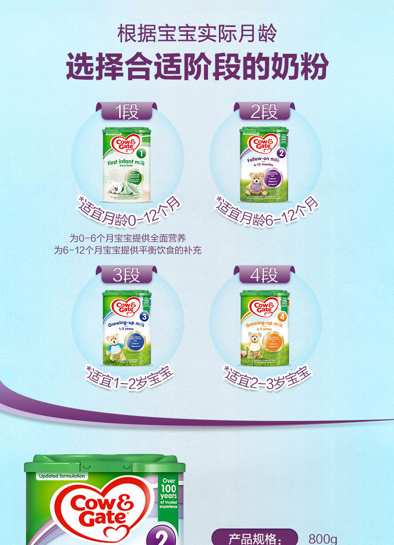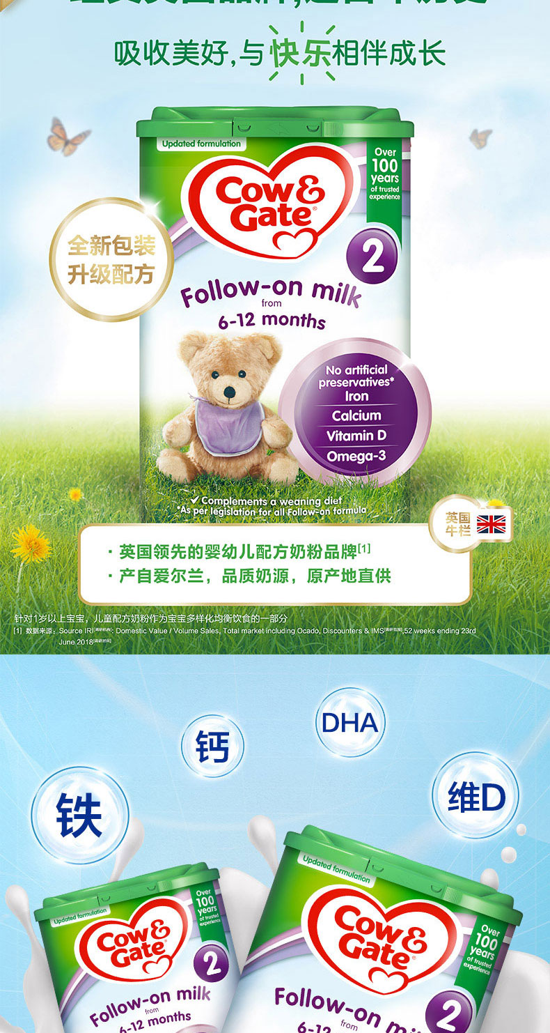 HNMG (英国直邮)英国牛栏Cow&Gate恩贝儿奶粉 2段(6-12个月)800g*4罐