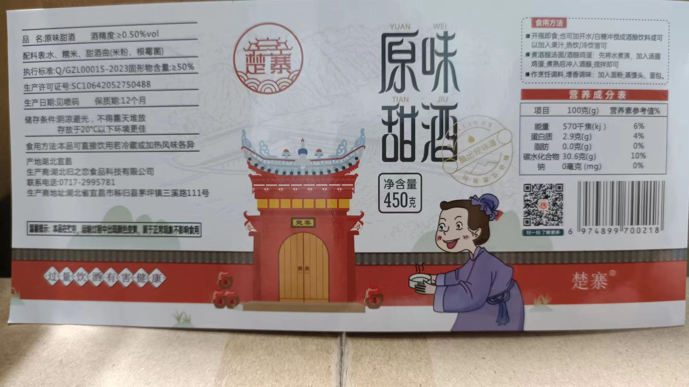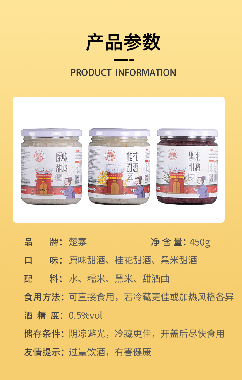 楚寨农家自酿糯米甜米酒醪糟酒酿月子酒甜酒450g甜品煮汤圆麻花