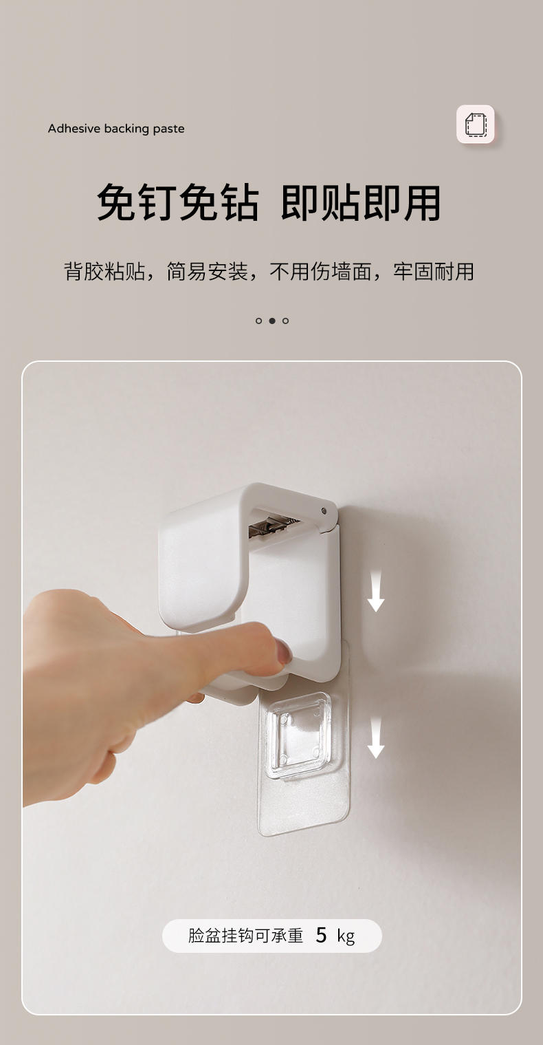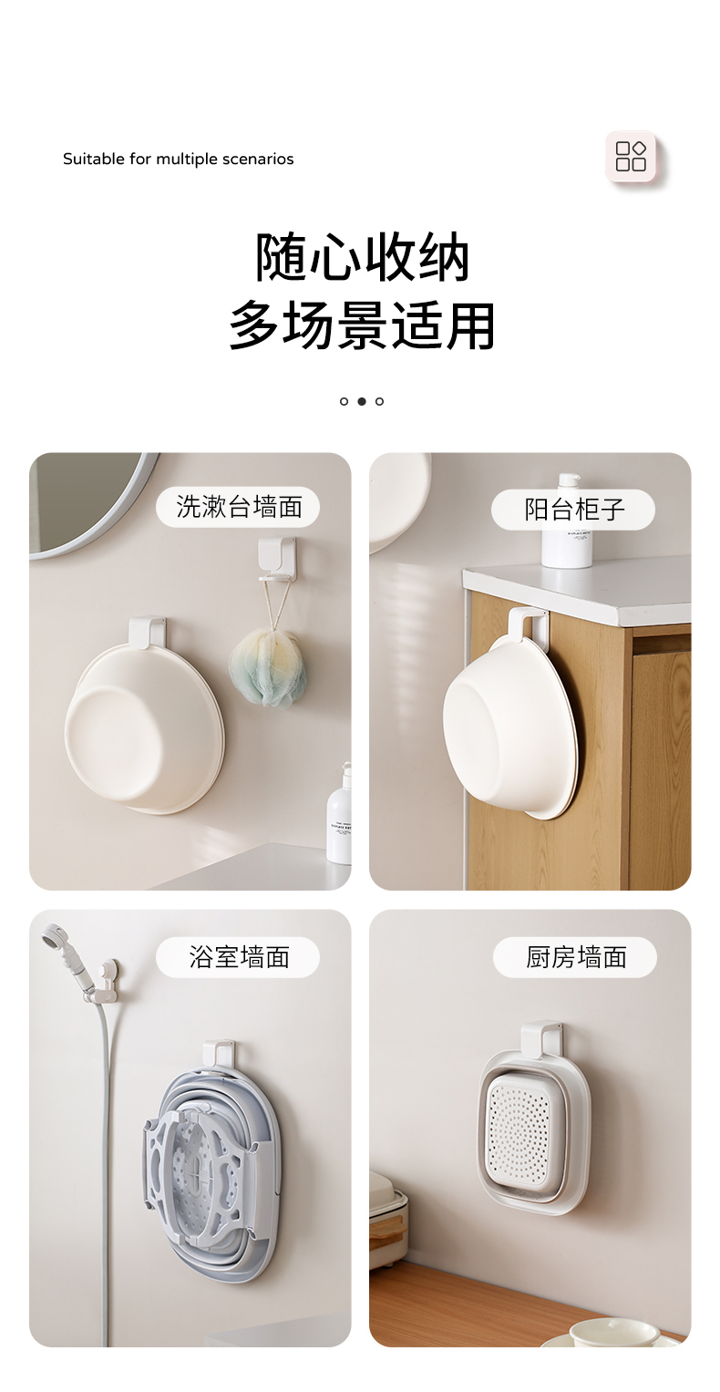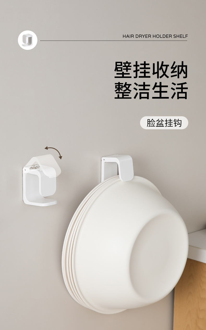 FaSoLa家用脸盆挂钩卫生间浴室免打孔壁挂可调节浴盆洗脸盆收纳挂架子