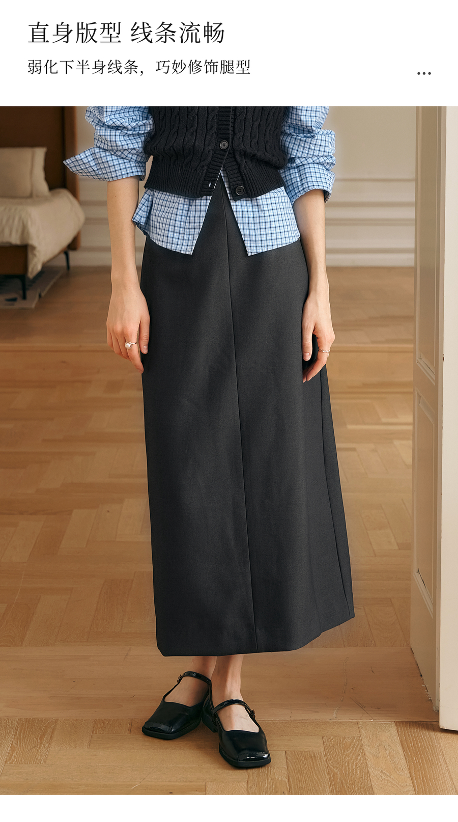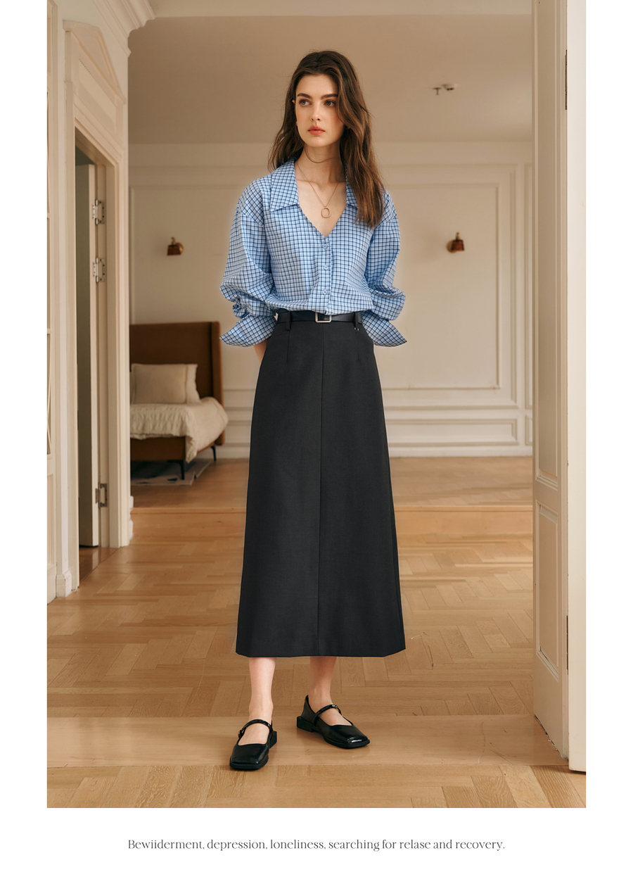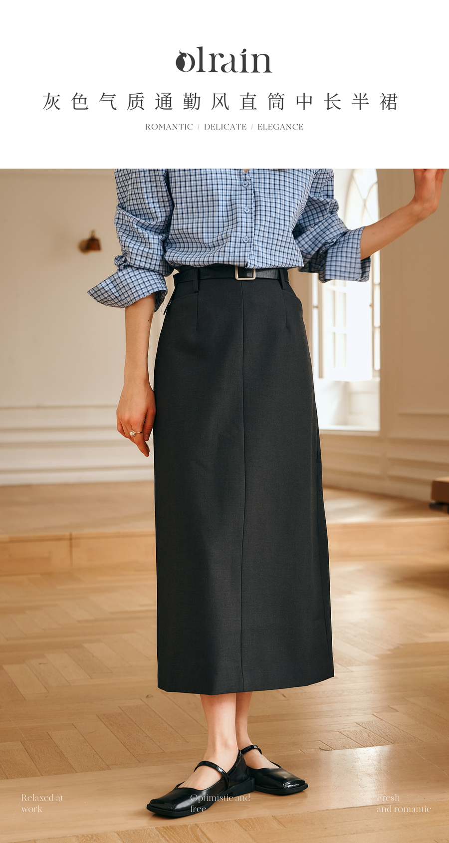 OLrain欧芮儿灰色半身裙女冬季2024年新款气质通勤中长款直筒裙