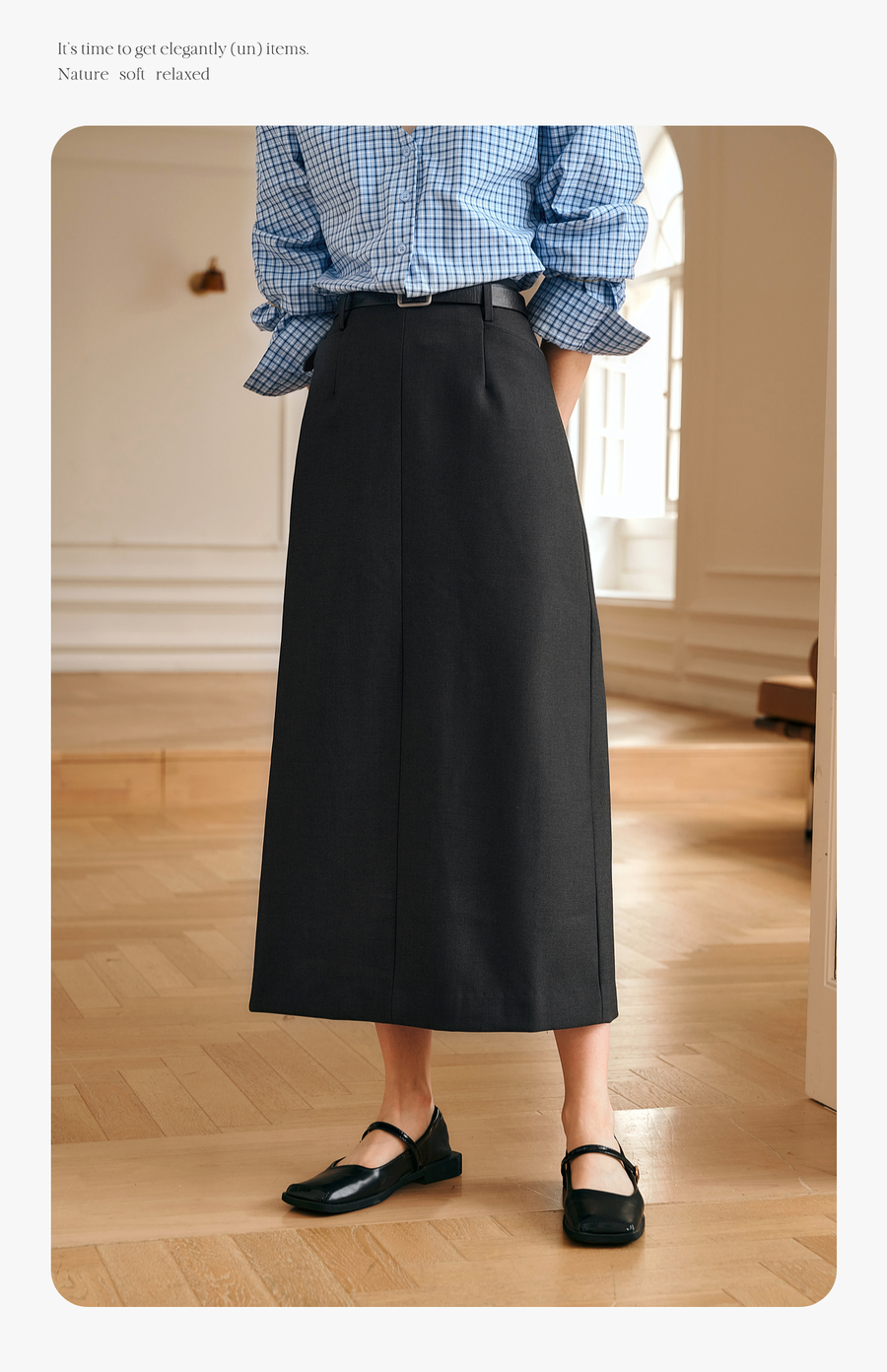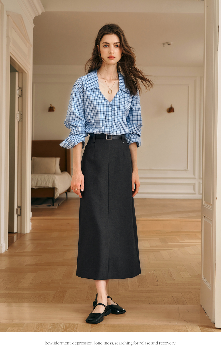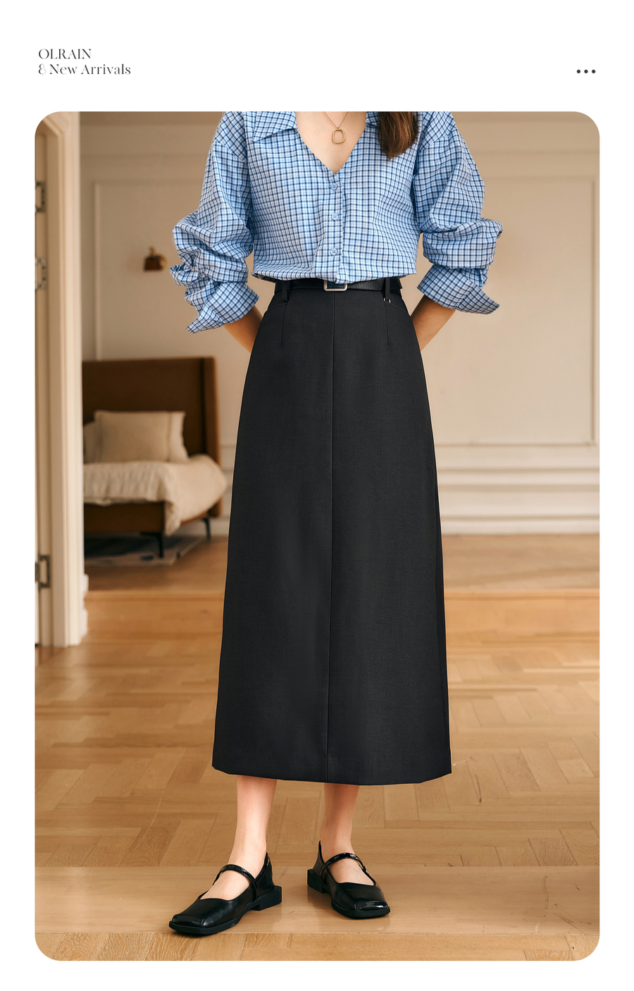 OLrain欧芮儿灰色半身裙女冬季2024年新款气质通勤中长款直筒裙